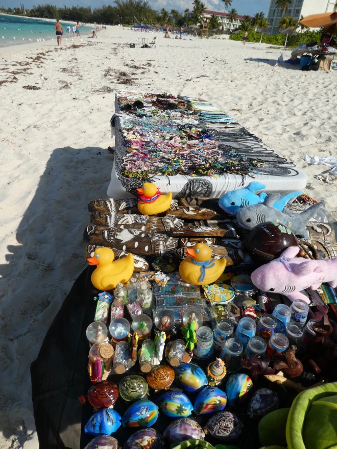 Even if we don’t buy, we enjoy talking to the venders and looking at all the interesting things available. From our resort, Melia Nassau Beach Resort, we like to walk along the beach, passing a few other resorts. A very nice lady was selling items here. We liked the masks and she let us sit by the masks while mom took our photo.