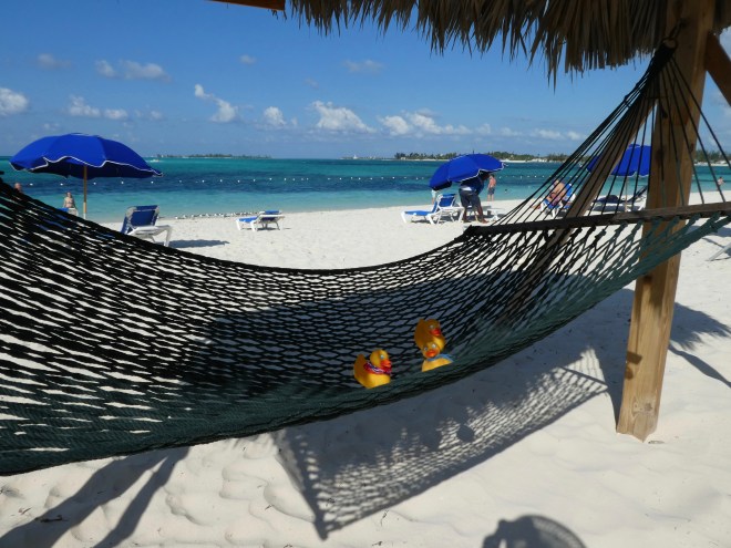 We three ducks, love hammocks. Of course with so many humans on the beach and in the ocean, they needed the help of the Colorado Traveling Ducks.