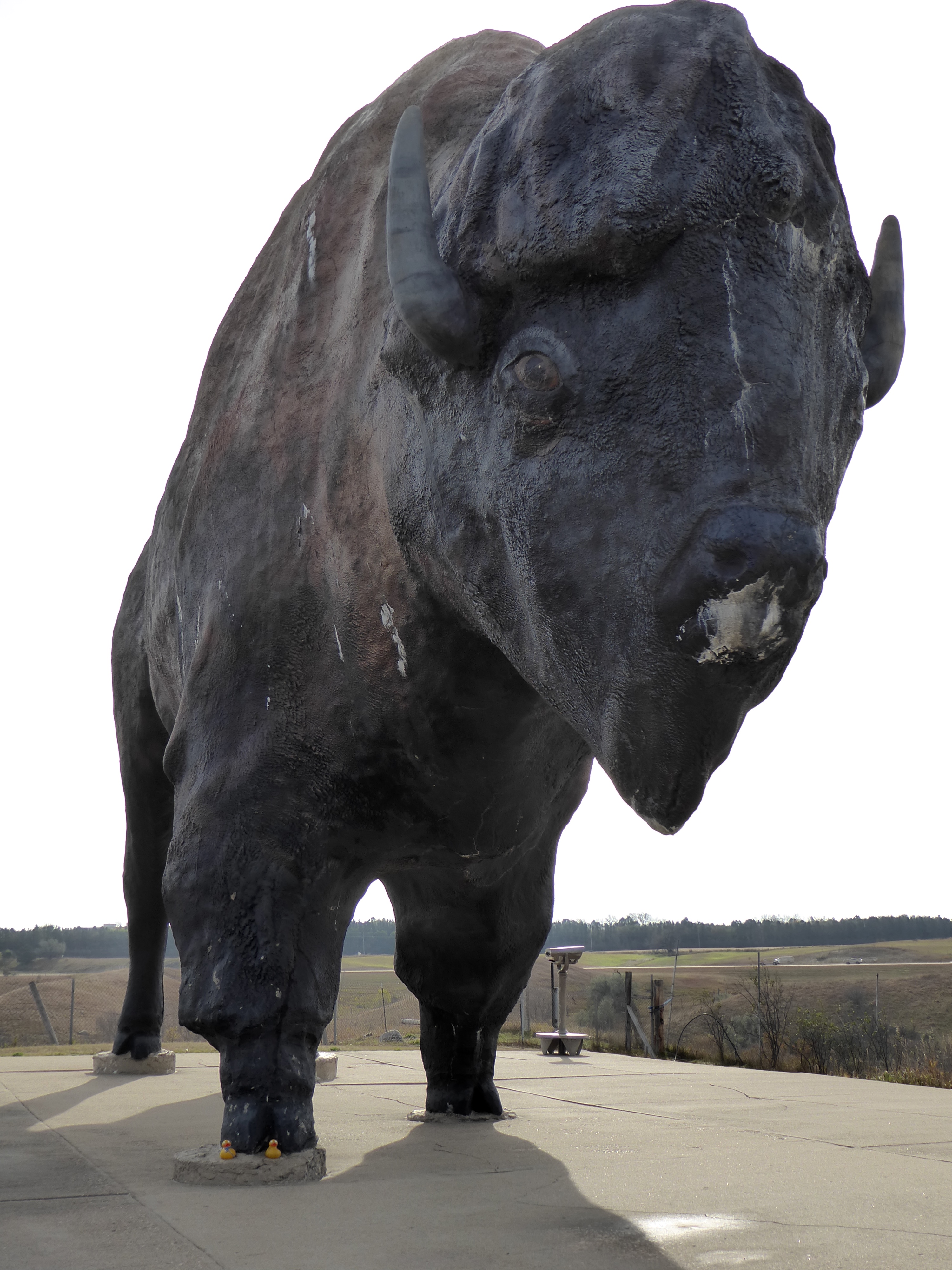 We like the open lands also. The minerals in the soil effect the color of rocks. This lone buffalo stood on a hill surveying his land.