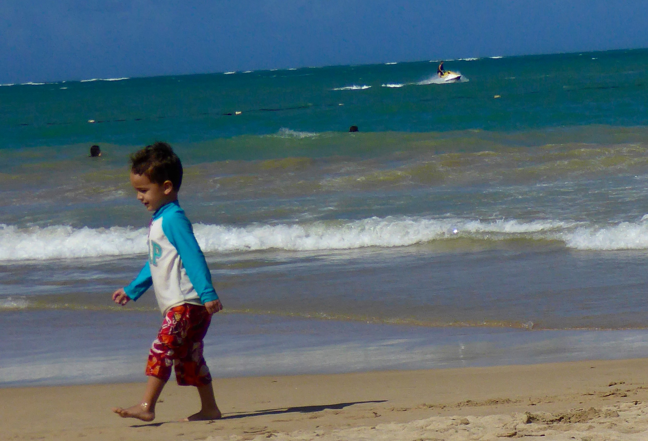 The kites are so colorful and look great sailing above the water. We did not try them today. Maybe another time. You can see there are many people enjoying Isla Verde Beach today, but it really is not crowded.