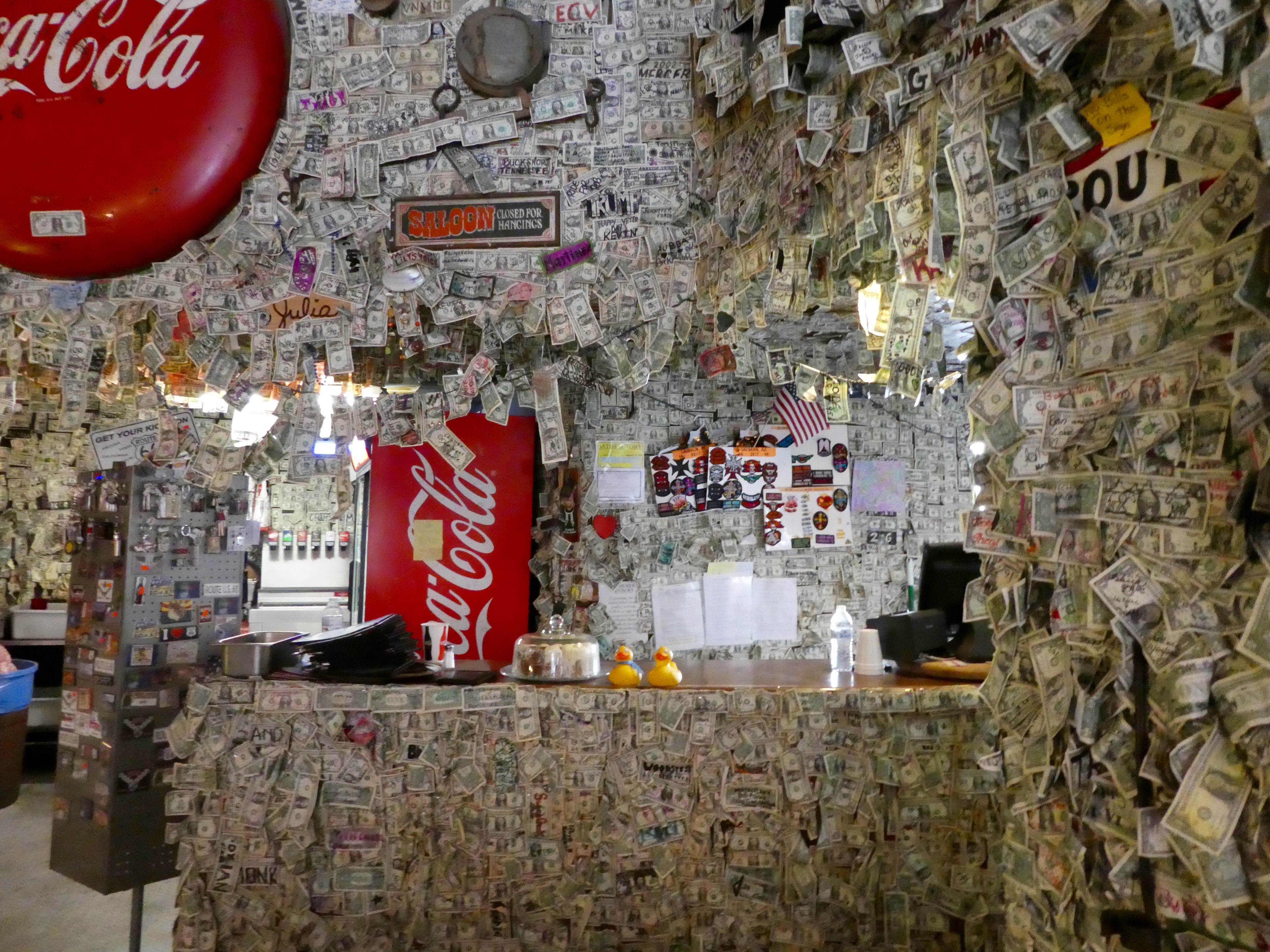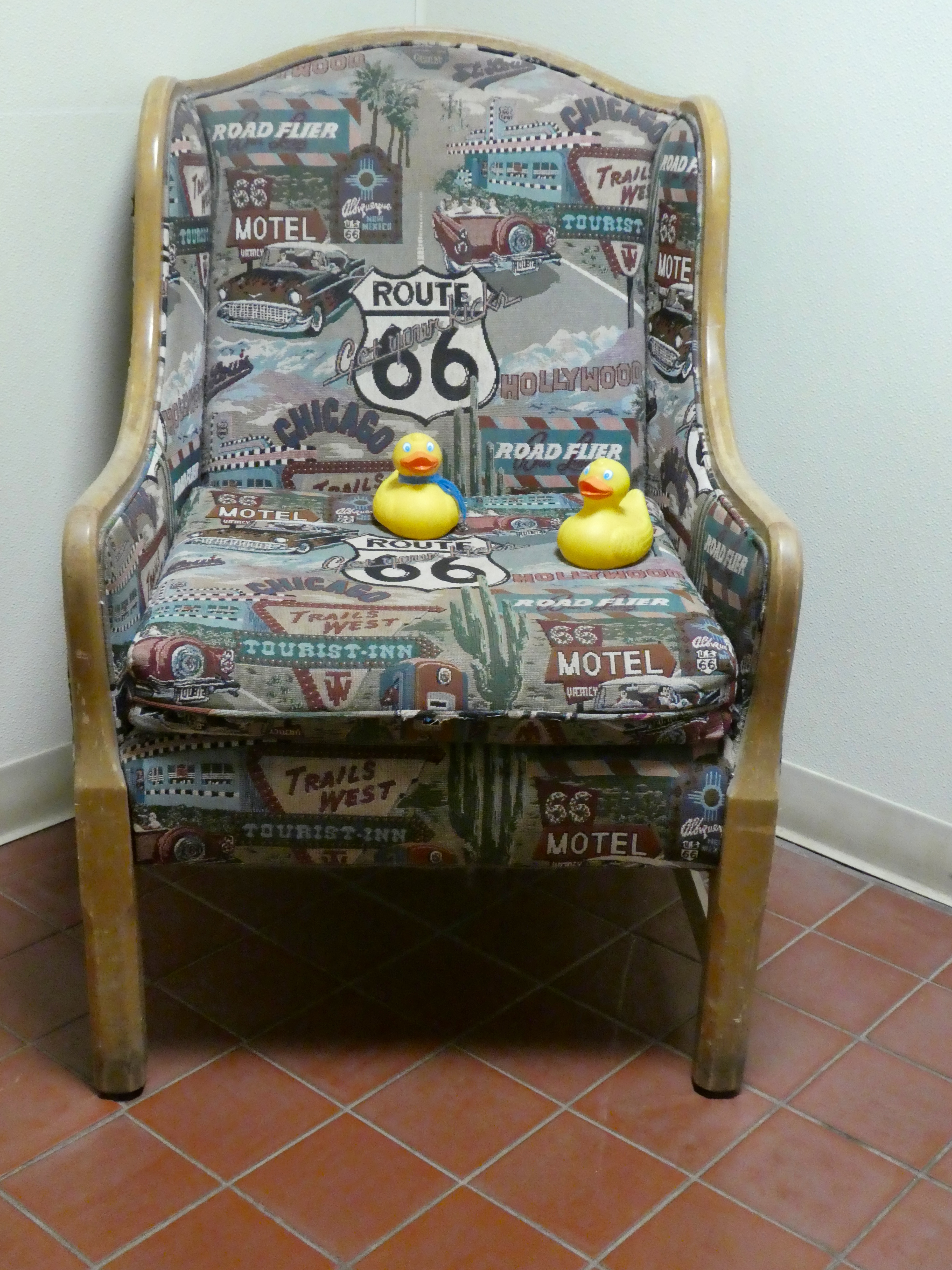 These are our poker chips, our tickets for tonight’s ghost tour. There is a cavern suite which can be rented for about $850 US dollars per night. The room, 220 feet below ground, is 200 feet wide, 400 feet long and has a 70 foot ceiling. It was rented last night, again tonight and also reserved for tomorrow night. All by different people. Several weddings have been performed here in the caverns. The first was April 15, 1977. Some brides left their bouquets and the dry, cool air keeps them preserved underground. These Grand Canyon Caverns are located in Peach Springs, Arizona, on historic Route 66. We just had to include this photo of a chair, reminding us of the iconic Route 66 connection.