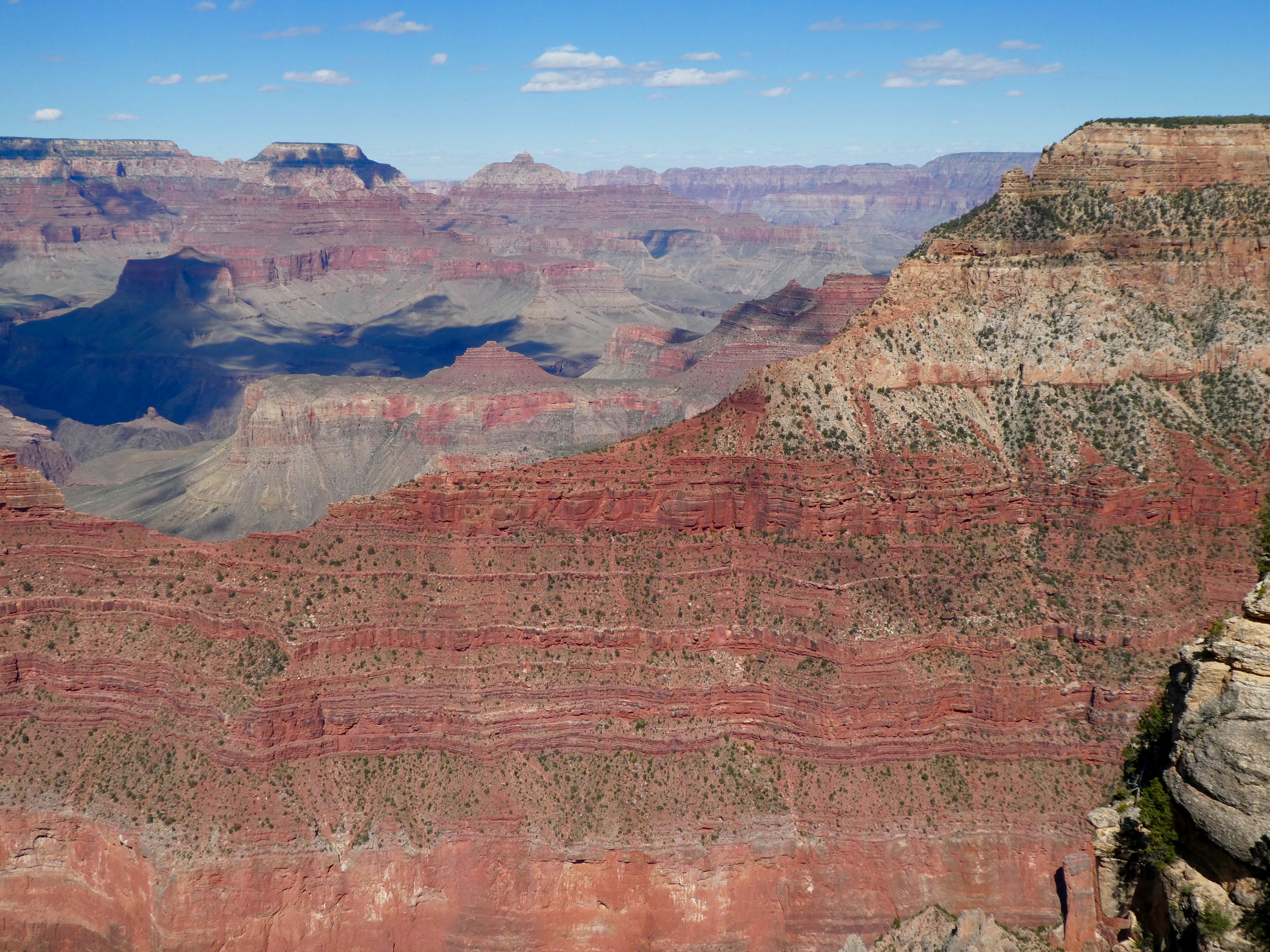 A petrified log, a place for us to rest and look at the desert scenery. We are not very far from the Petrified Forest National Park, also in northern Arizona. Remember, this was once a tropical rain forest, now a desert climate. Inside, our moms purchased tickets for the one hour tour. When is time, we get inside an elevator and descend 210 feet (64 meters) below the earth’s surface to enter the caves. We are the only tourists on this tour. This cavern has been dry for thousands of years, so nothing new has formed. This is called the Cathedral Dome, which is really an ancient waterfall, 90 feet above our heads.