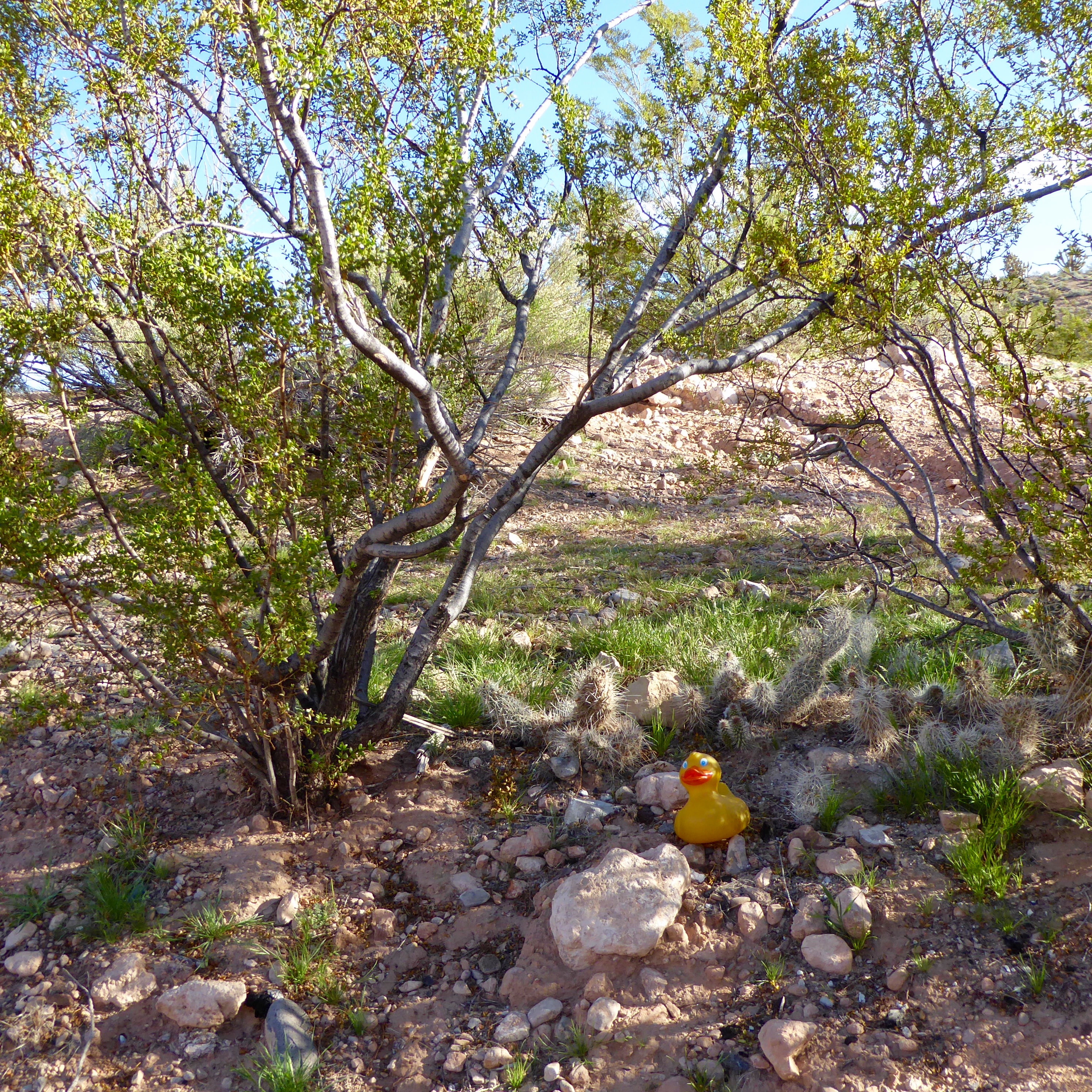 We ducks were outside, but we had to sit by this trash can so we didn’t blow away.