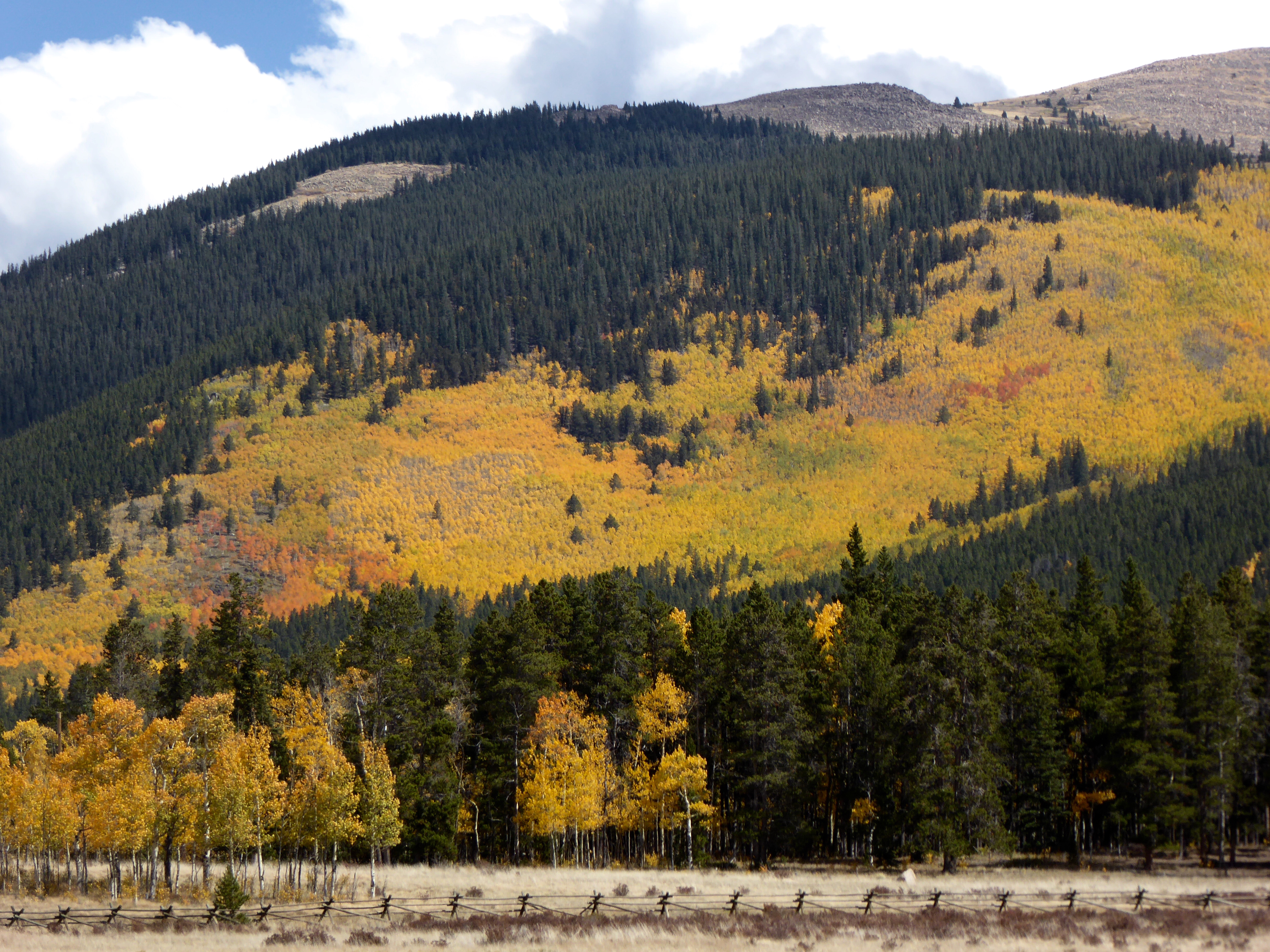 The mountain and changing aspen are also beautiful. This greeted us as we neared the summit of Kenosha Pass.