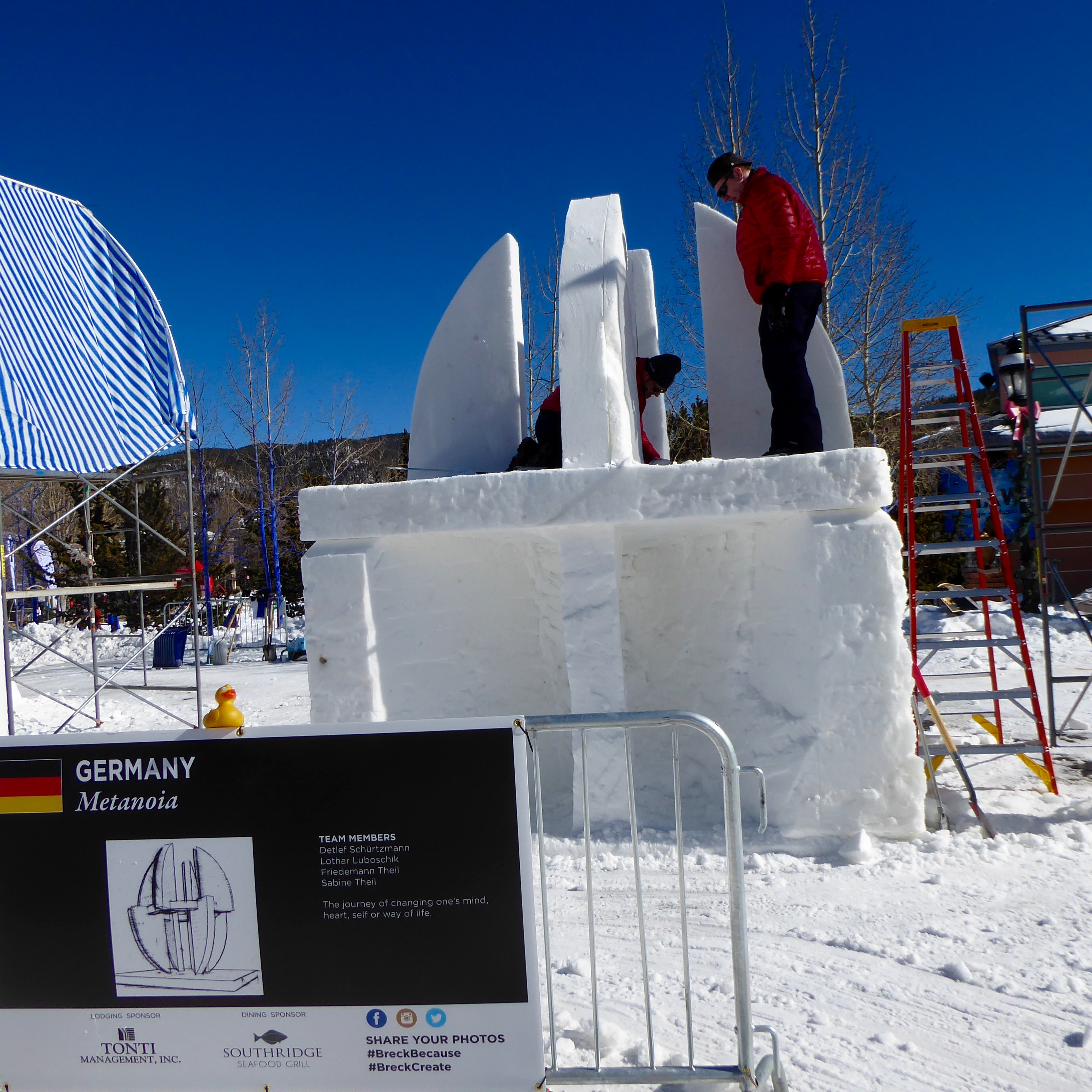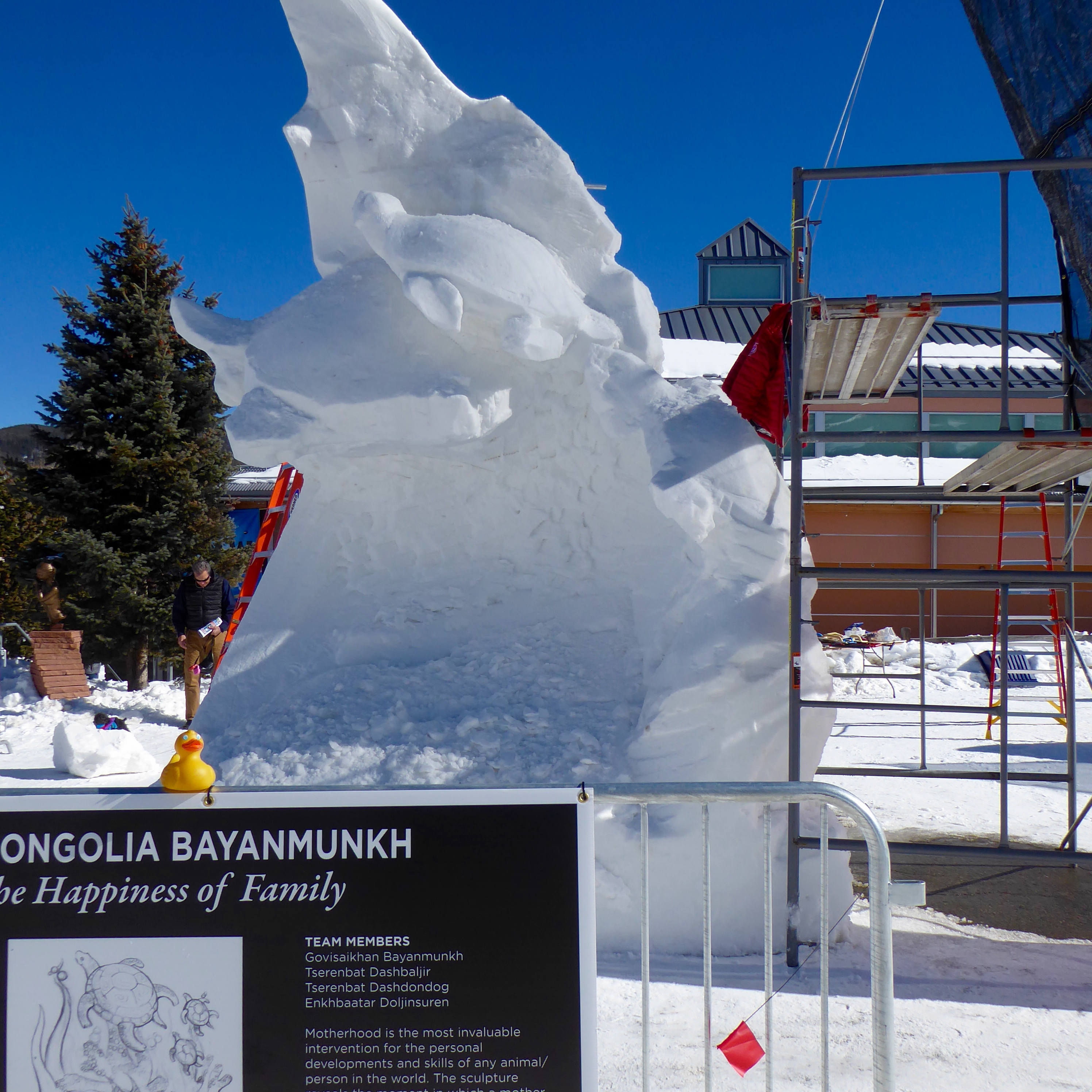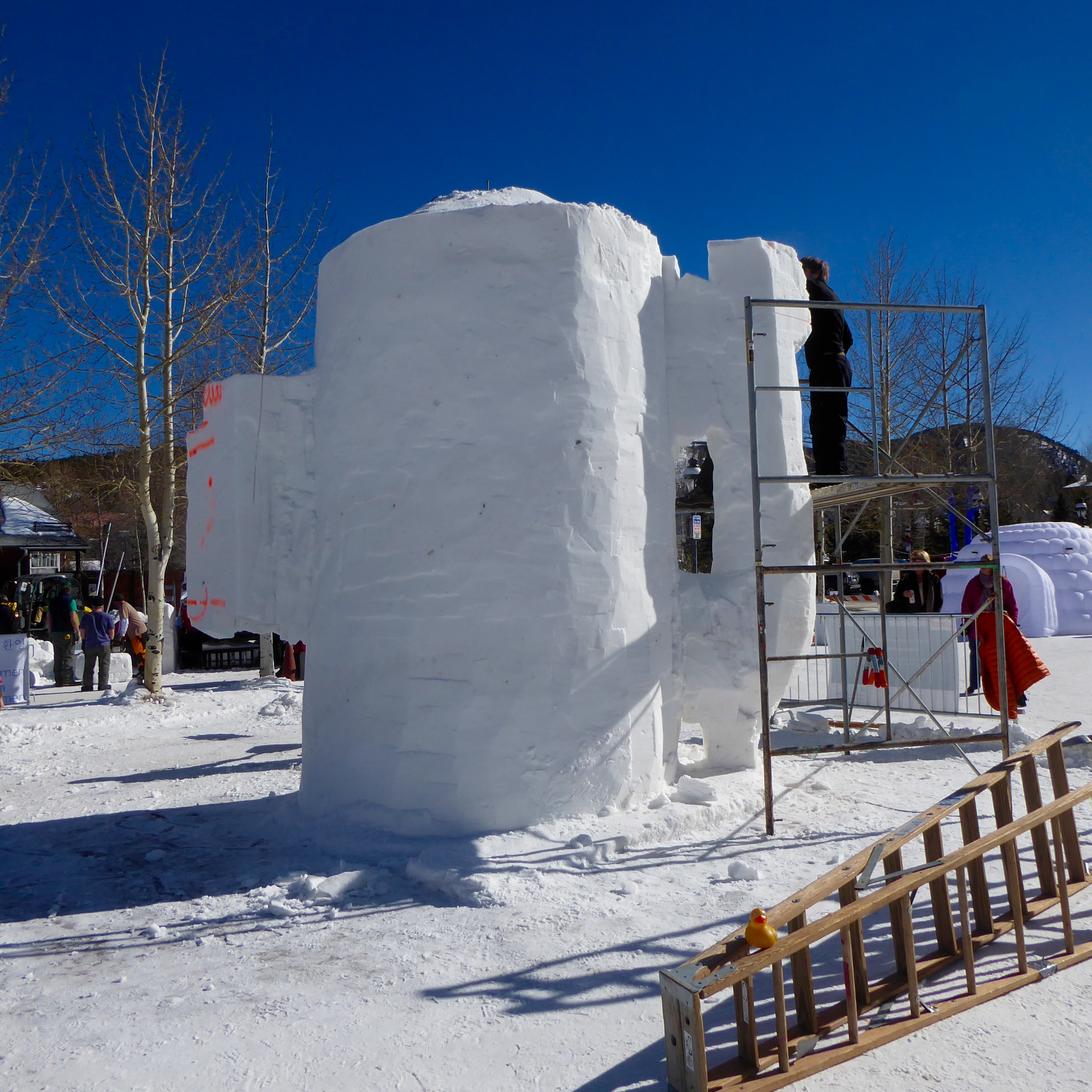This winter there has been a lot of snowfall in the Colorado Mountains. Everything is white and beautiful. However, for the international snow sculpture competition, snow made at Breckenridge Ski Resort is used. The snow is made with a specific ratio of snow to water, some of the best for sculpting. This January was the 30th Anniversary of Snow Sculpture Champions. Here we are in Breckenridge, Colorado.