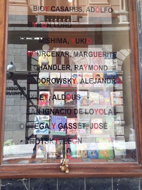 This is Sancho Panza from the famous story of Don Quixote. We like this statue and Channel just makes the photos great. Here my friend, Channel, is sitting on a window ledge.