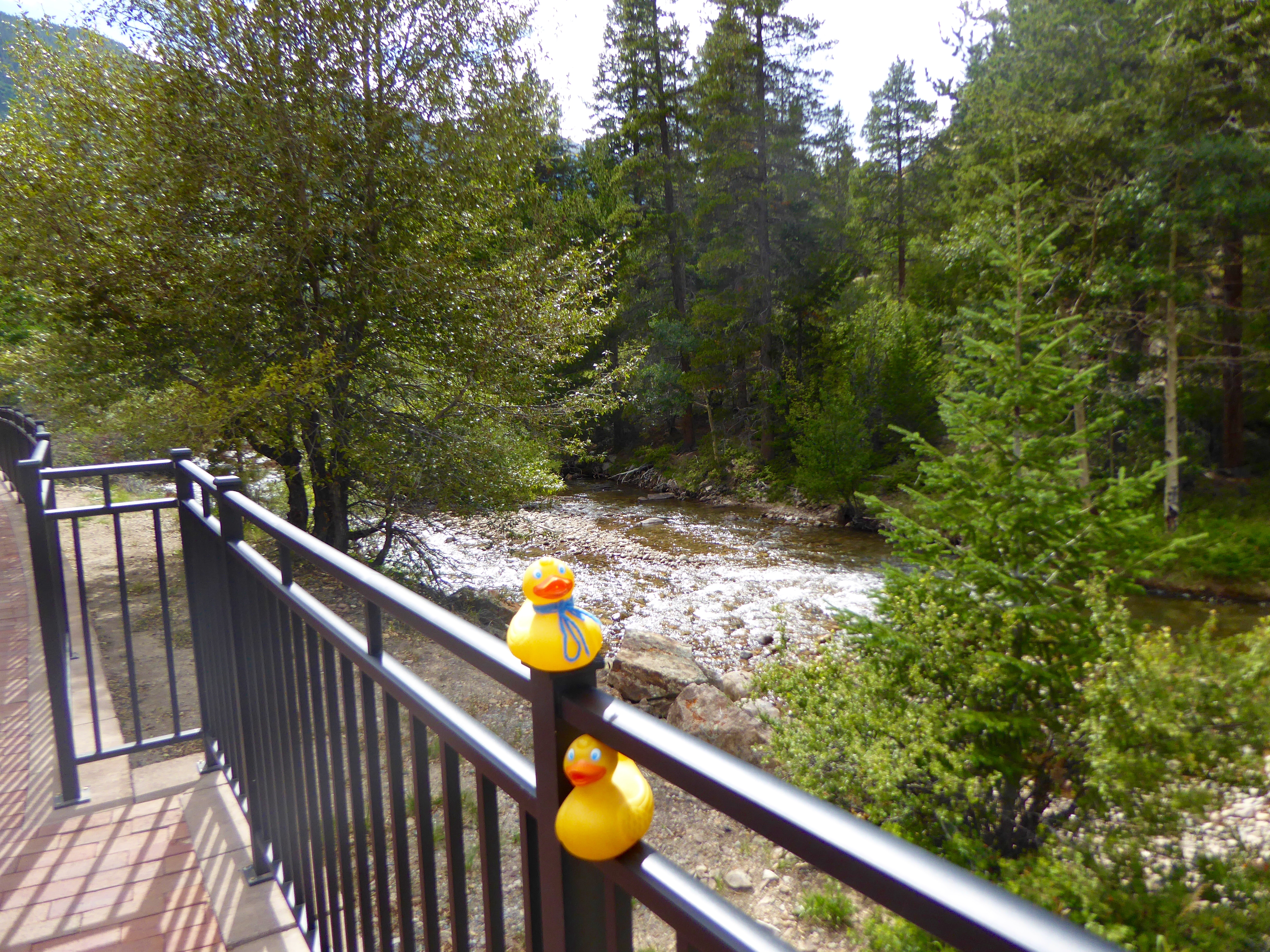 From the bridge over Clear Creek, we admire the canoe and tepee. And we see a small native Colorado animal.
