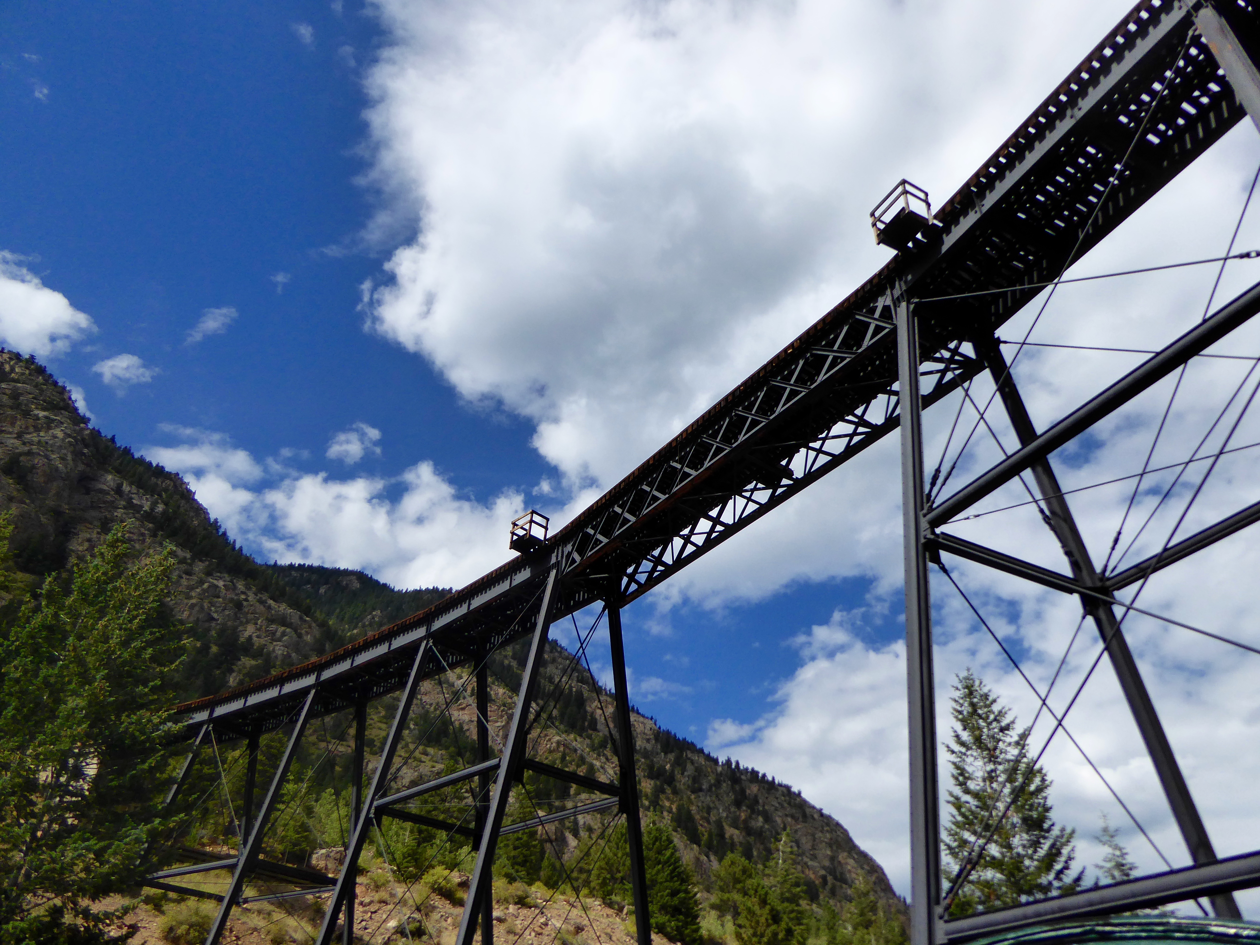 From the lower track we look up to view Devil’s Gate High Bridge. Winding around the station, we are now going on Devil’s Gate High Bridge.