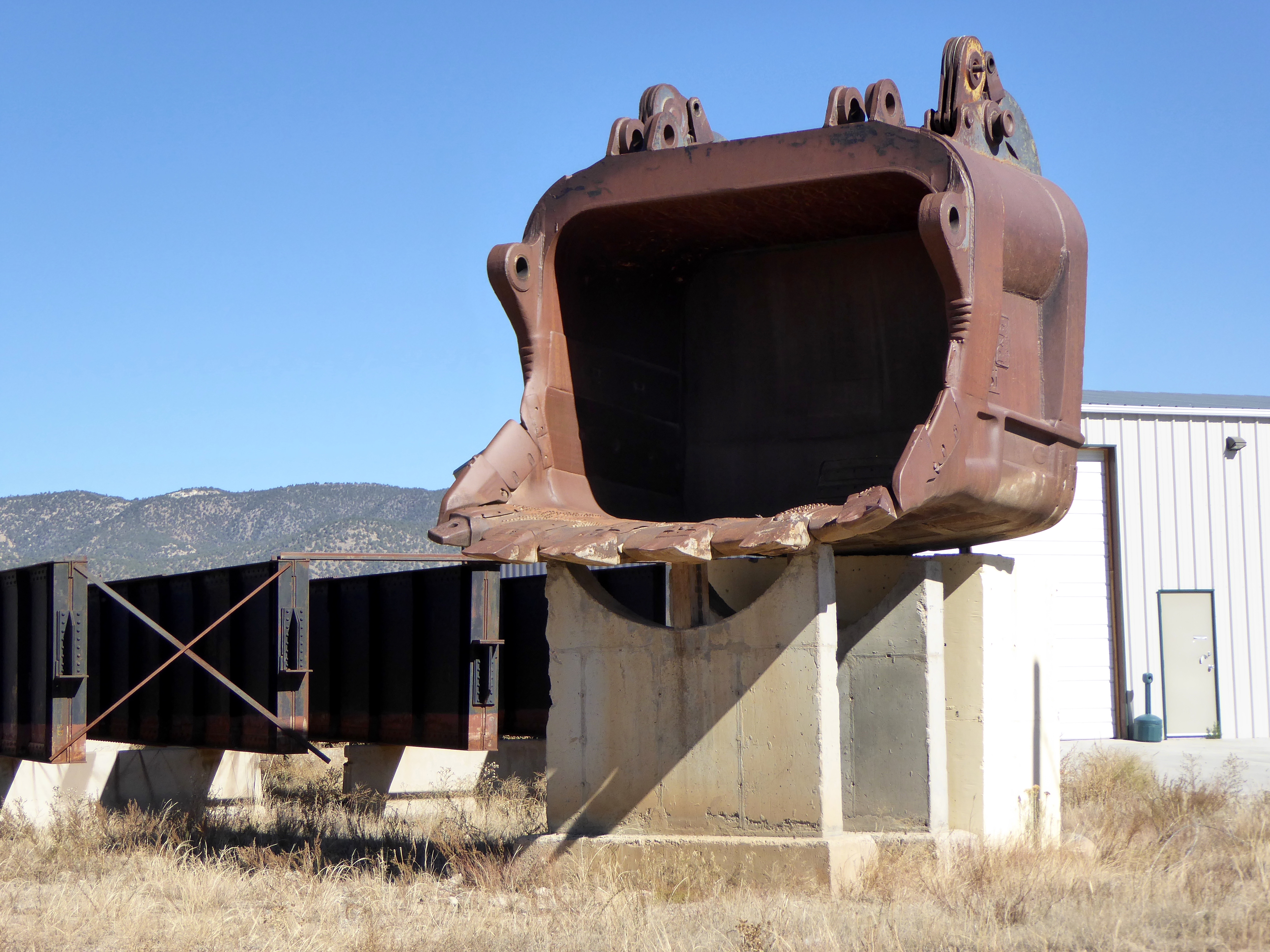 Smelting is a way to separate metal from its native ore, using heat. This smelter smokestack is 365 feet tall. The famous Leaning Tower of Pisa in Italy is 179 feet tall. The Colorado State Capitol Building is 272 feet tall. This smokestack is taller, but shorter than the Washington Monument which is 555 feet tall. This smokestack was placed on the National Register of Historic Places January 11, 1976. This shovel is from the mining days also.