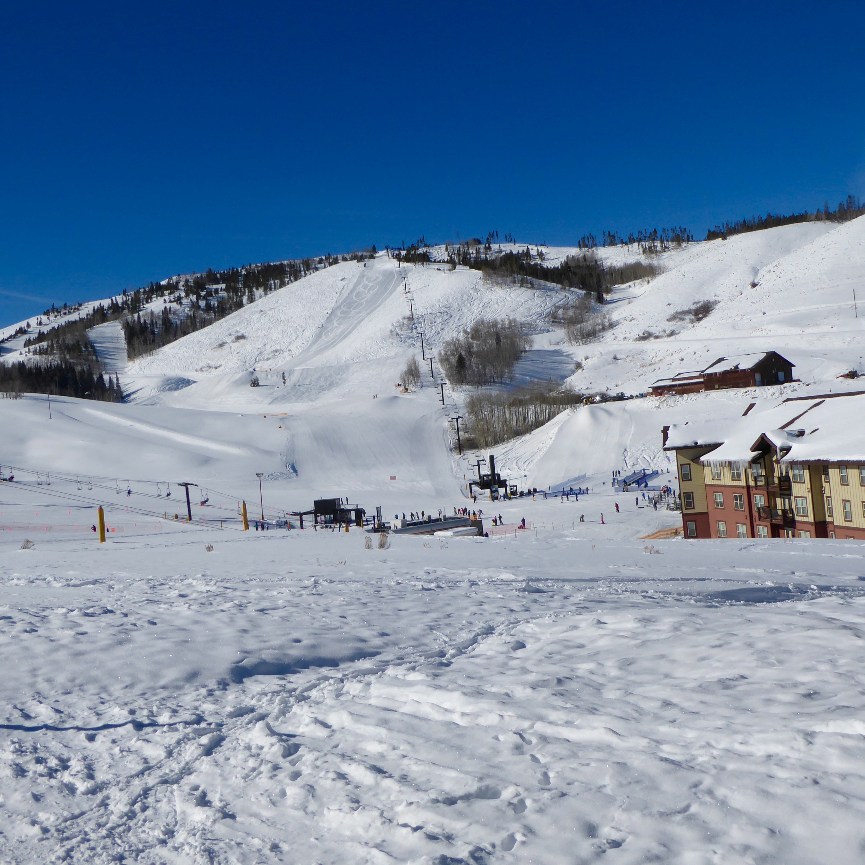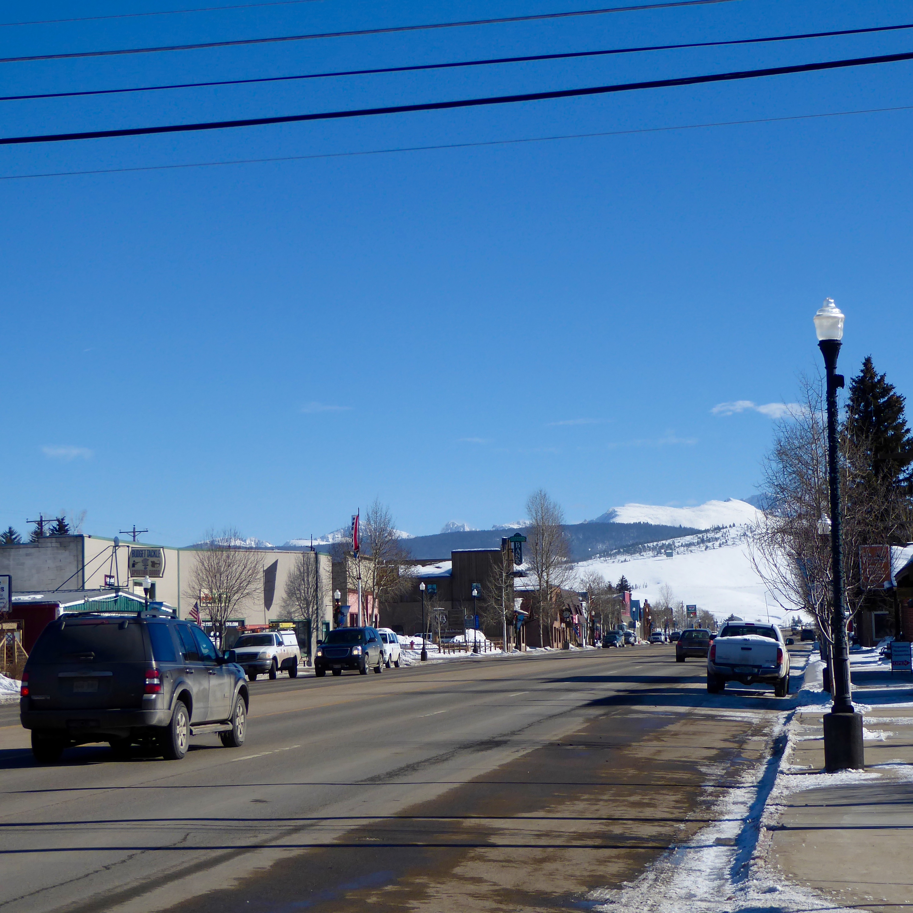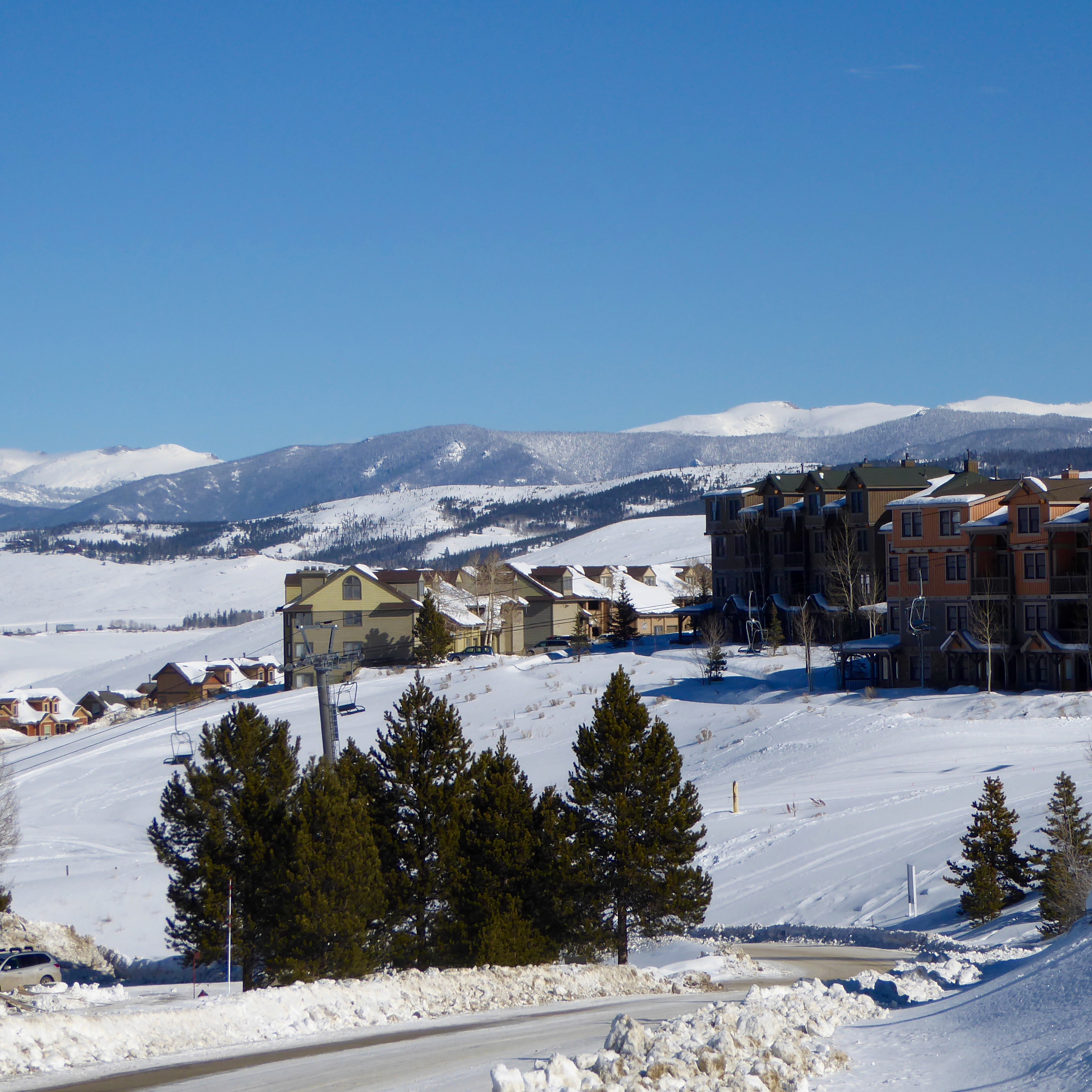 We went into Copper Mountain resort, but from I-70 you can see many trails with skiers. Copper Mountain resort consists of three villages, each with hotels, restaurants, ski lifts and several trails. This is looking through the entrance to Center Village.