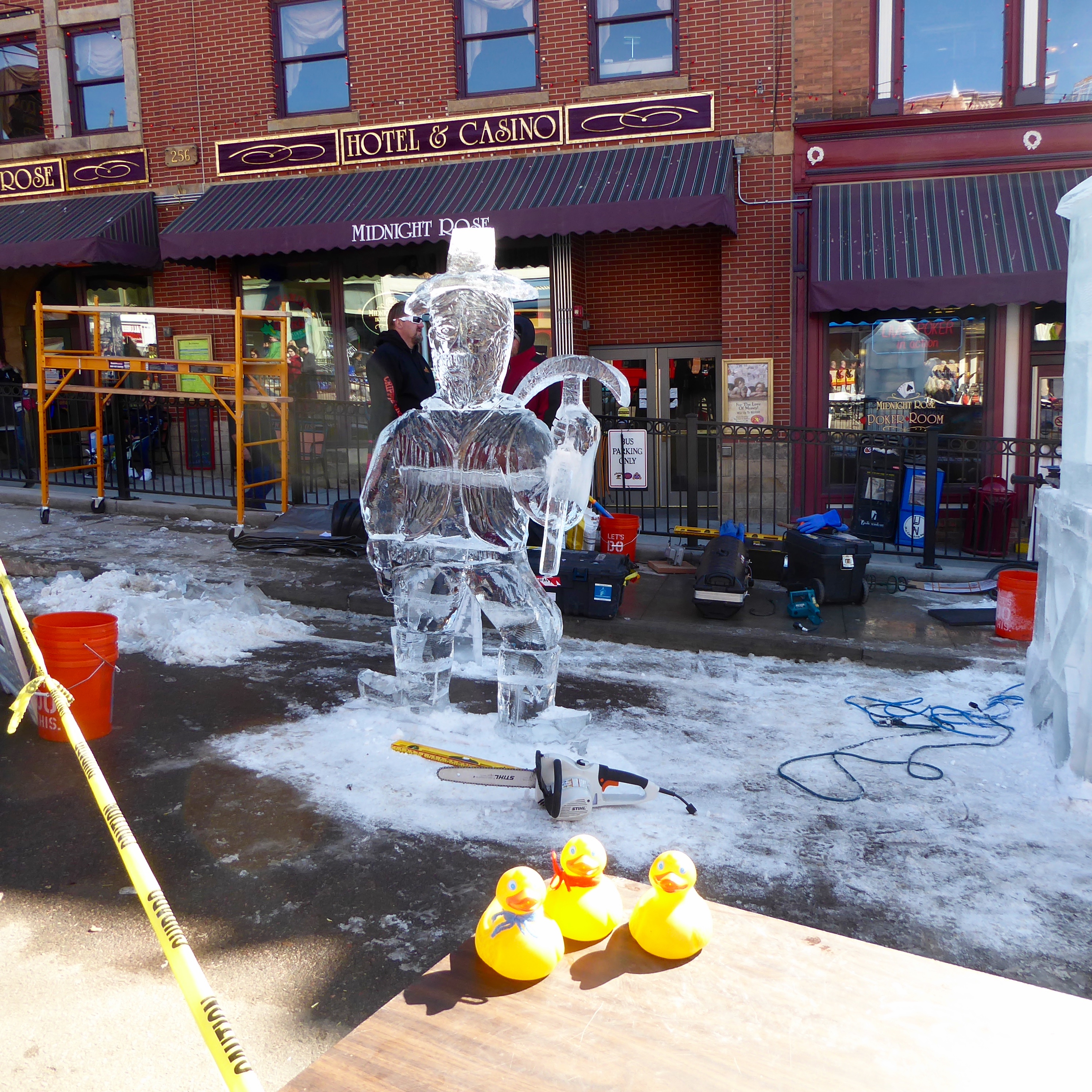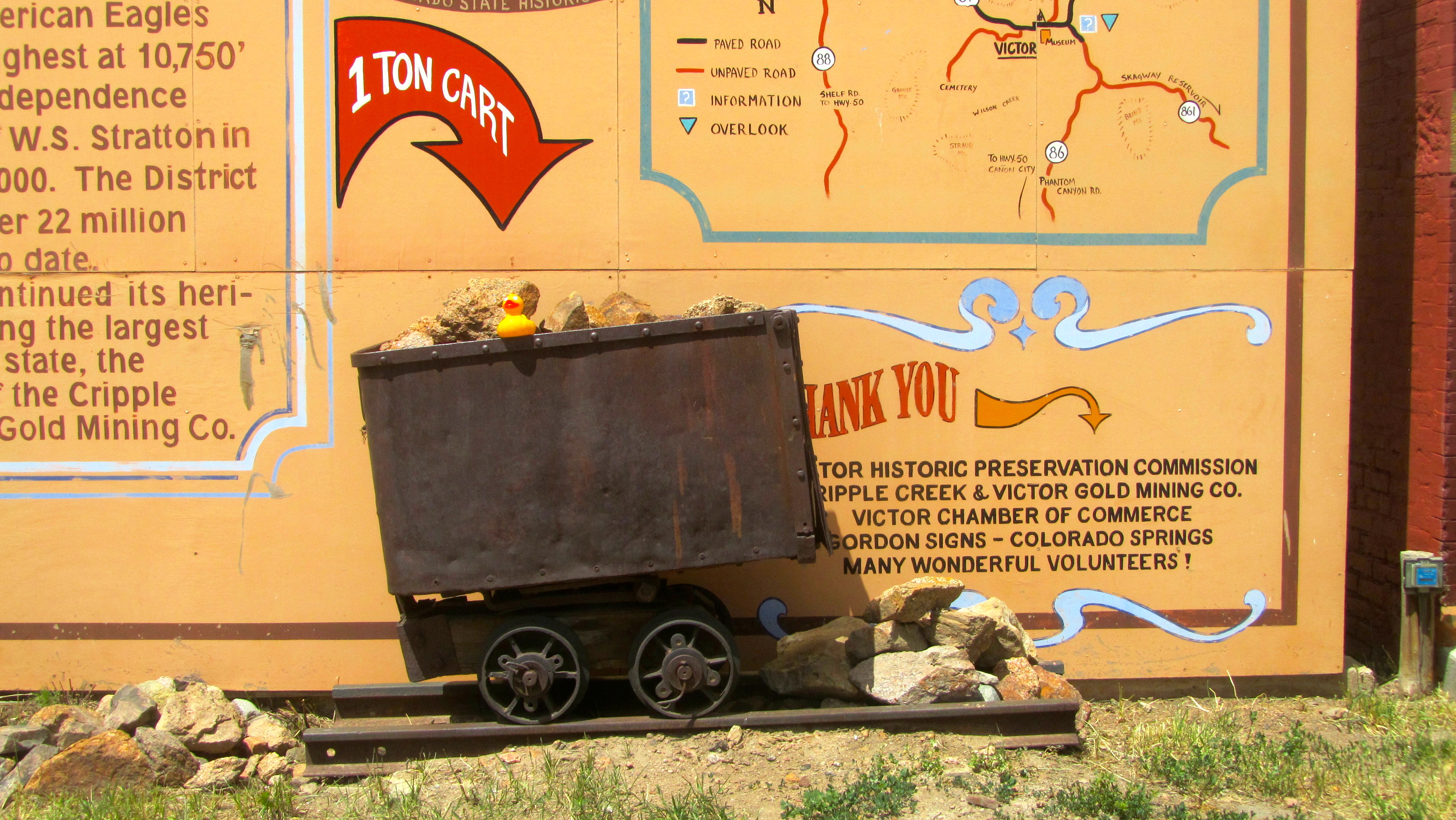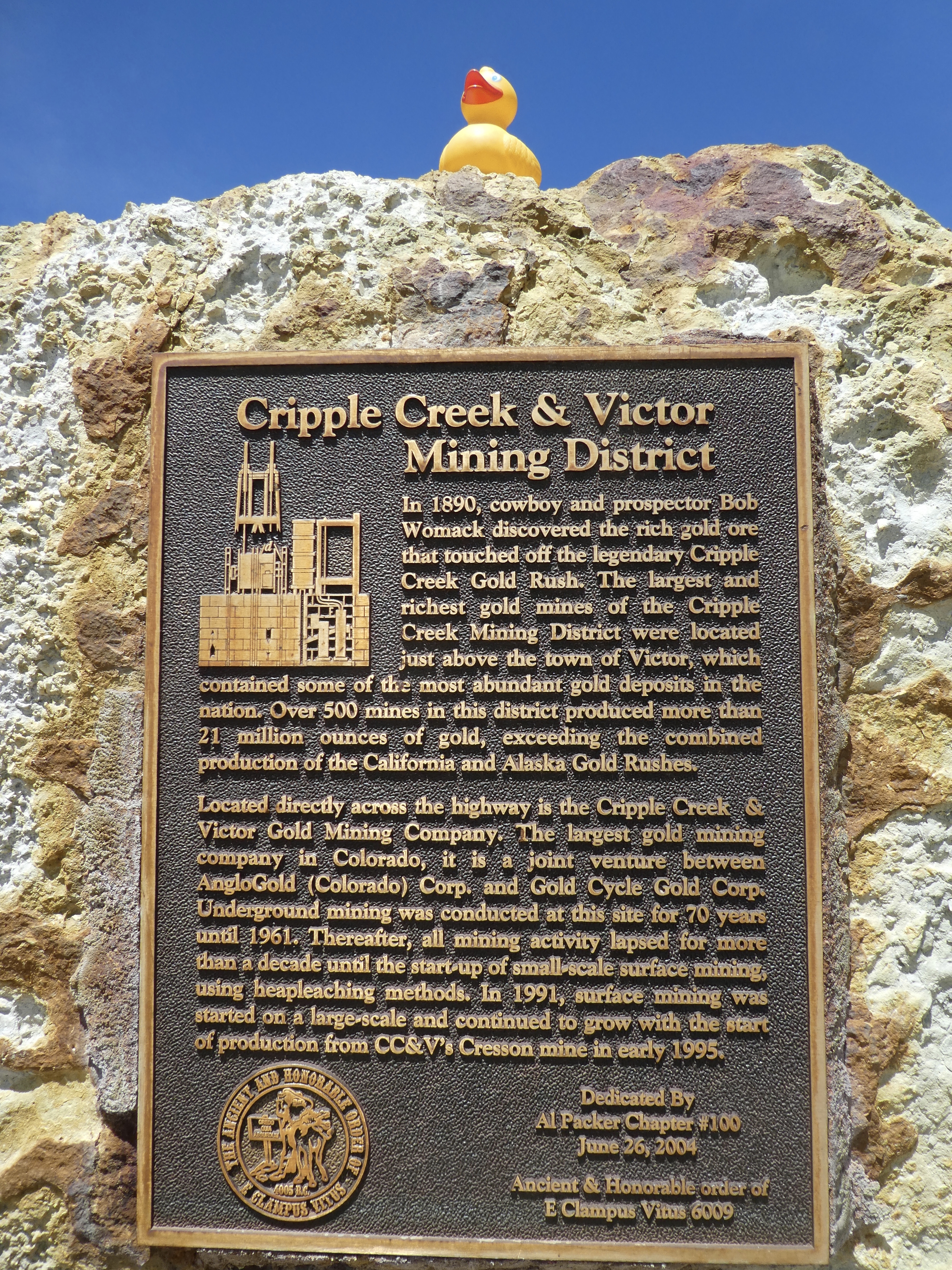 The Gold Camp Victorian Society of Cripple Creek, Colorado held their annual cemetery tour, with Zeb and Soapy Smith Duck proudly in attendance. This great tour features pioneers of the Cripple Creek area, portrayed by members of the Gold Camp Victorian Society. We are ready to board the Trolly to Mt. Pisgah Cemetery.