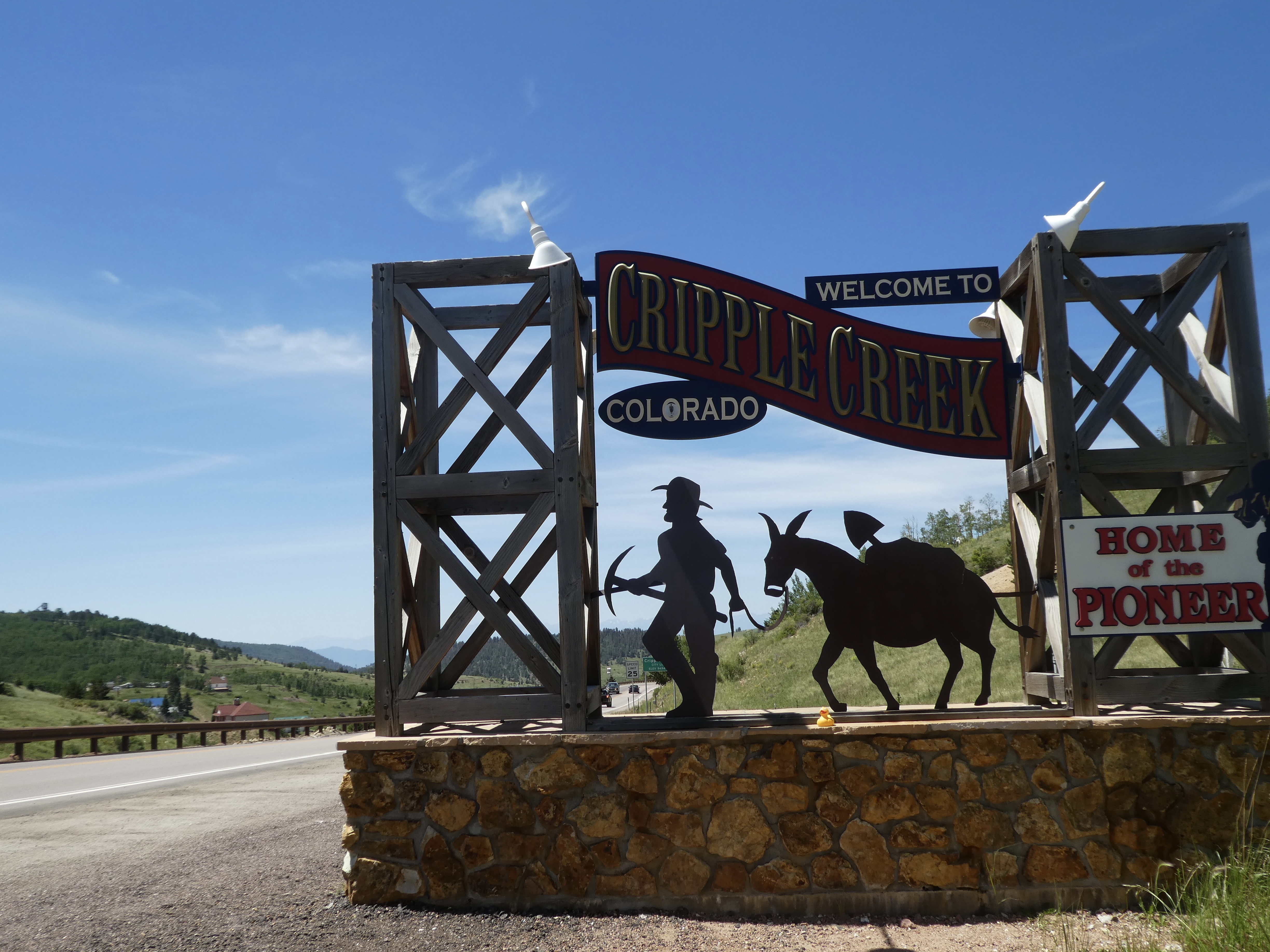 It was informative and a lot of fun. We, Zeb and Soapy, never knew dead humans could be so much fun! After leaving the cemetery, we saw another famous resident, a left over from the mining days. When miners left town, they often just released the donkeys. Now there are wild donkeys roaming the streets of Cripple Creek.