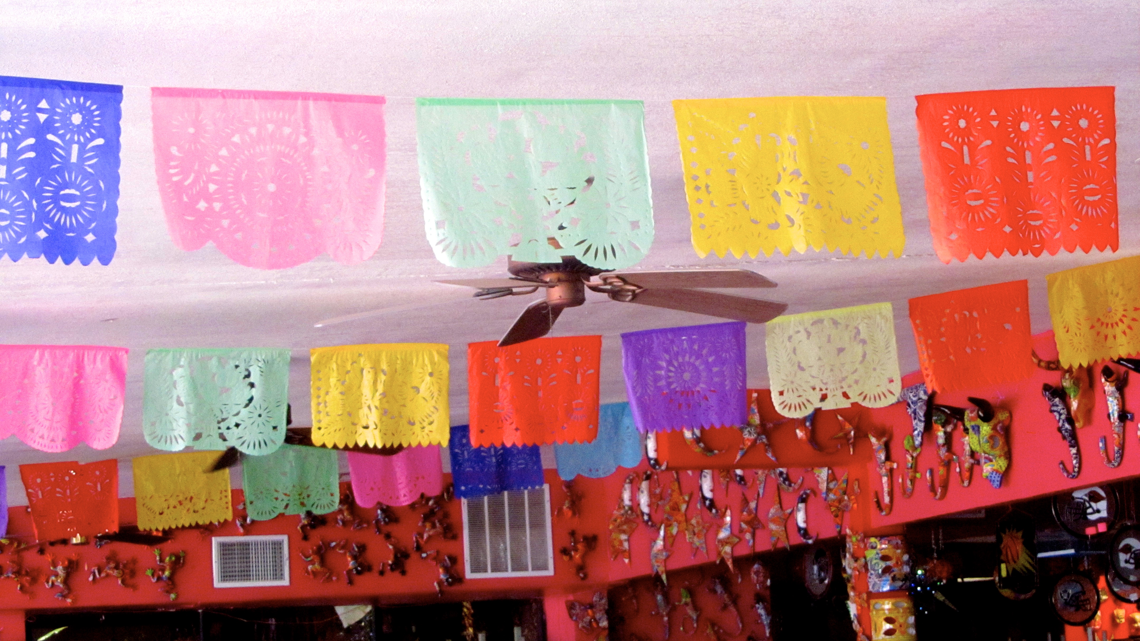 Too bad we don’t have lots of empty shelves at home. The sheets of papel picado, or cut paper, are really nice, with so much detail.