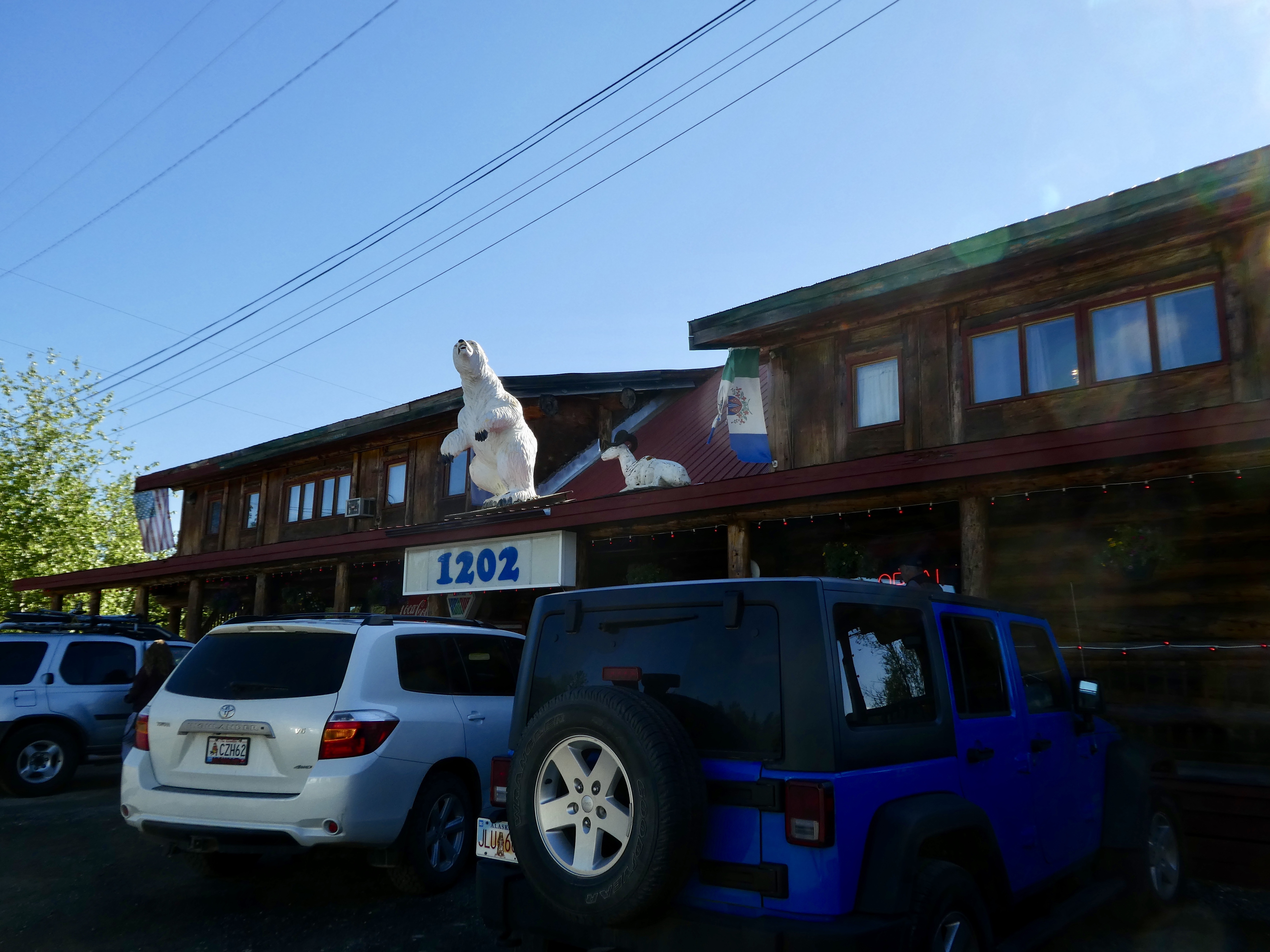 Isn’t this a great dog sled at the store entrance? More shopping. Souvenirs, gifts and treats for Chloe. Next stop in Tok was Fast Eddies.