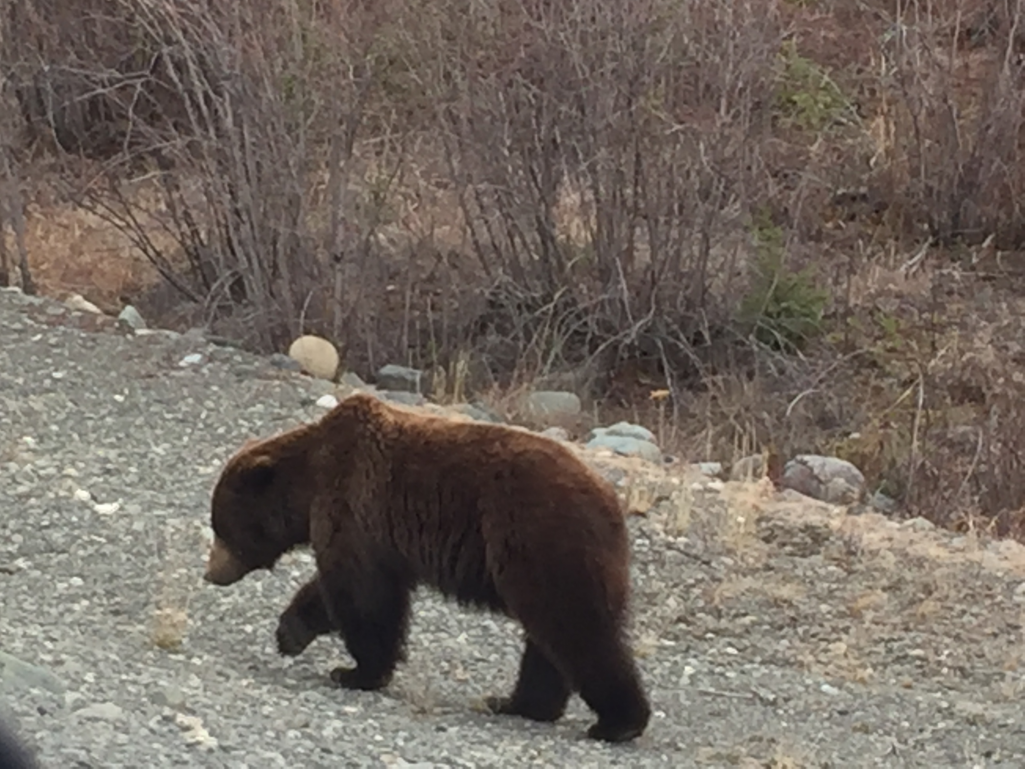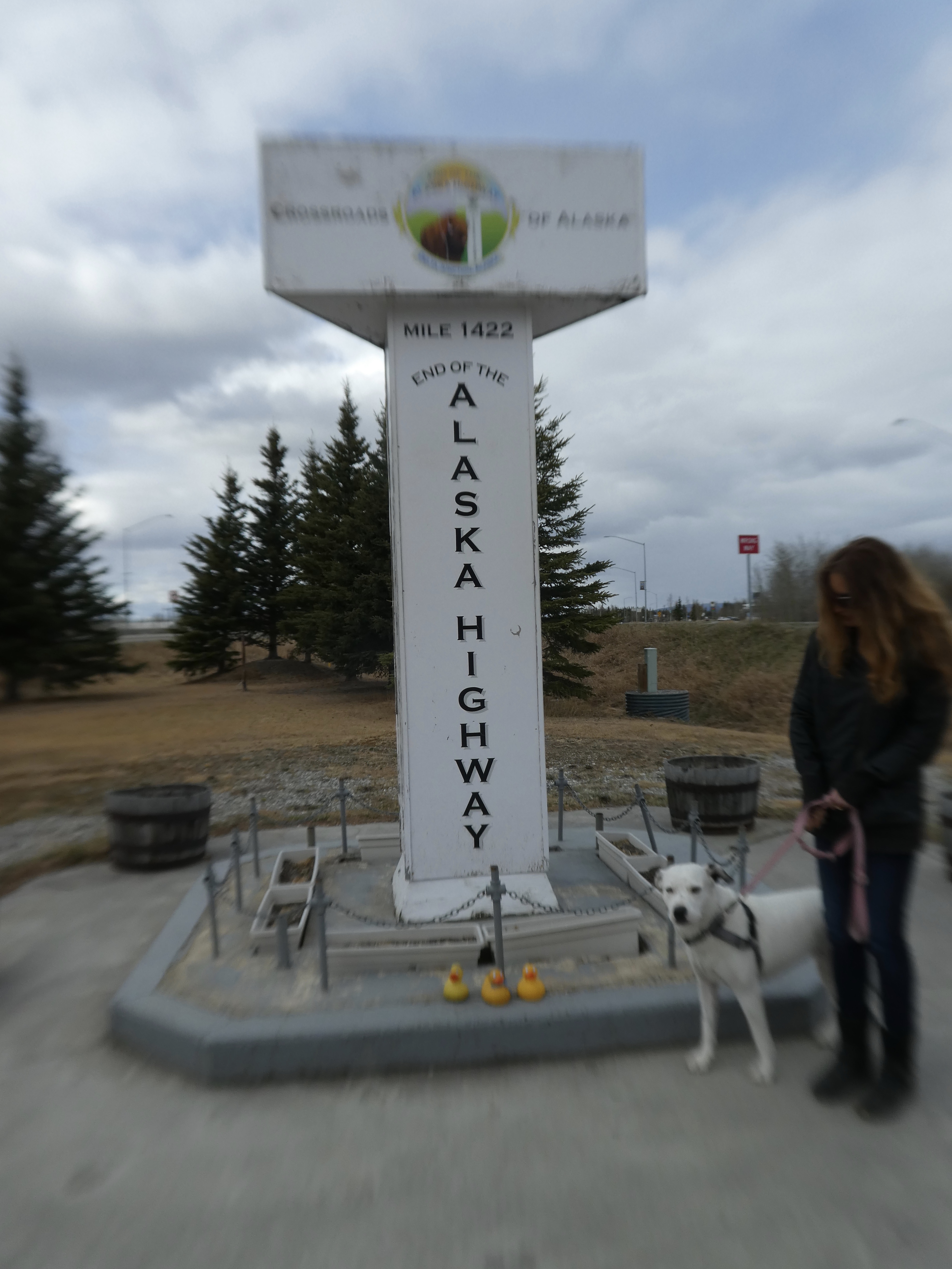 Stopped to appreciate the breathtaking views. Also, Chloe likes to get out of the car and do a little exploring. So do the humans. While driving, as we completed a curve in the road we startled a black bear and he ran down a path into the woods. He was so cute to watch. Of course, too fast to get a photo. We arrived in Tok, Alaska, the last Alaskan town on the Alaska Highway.