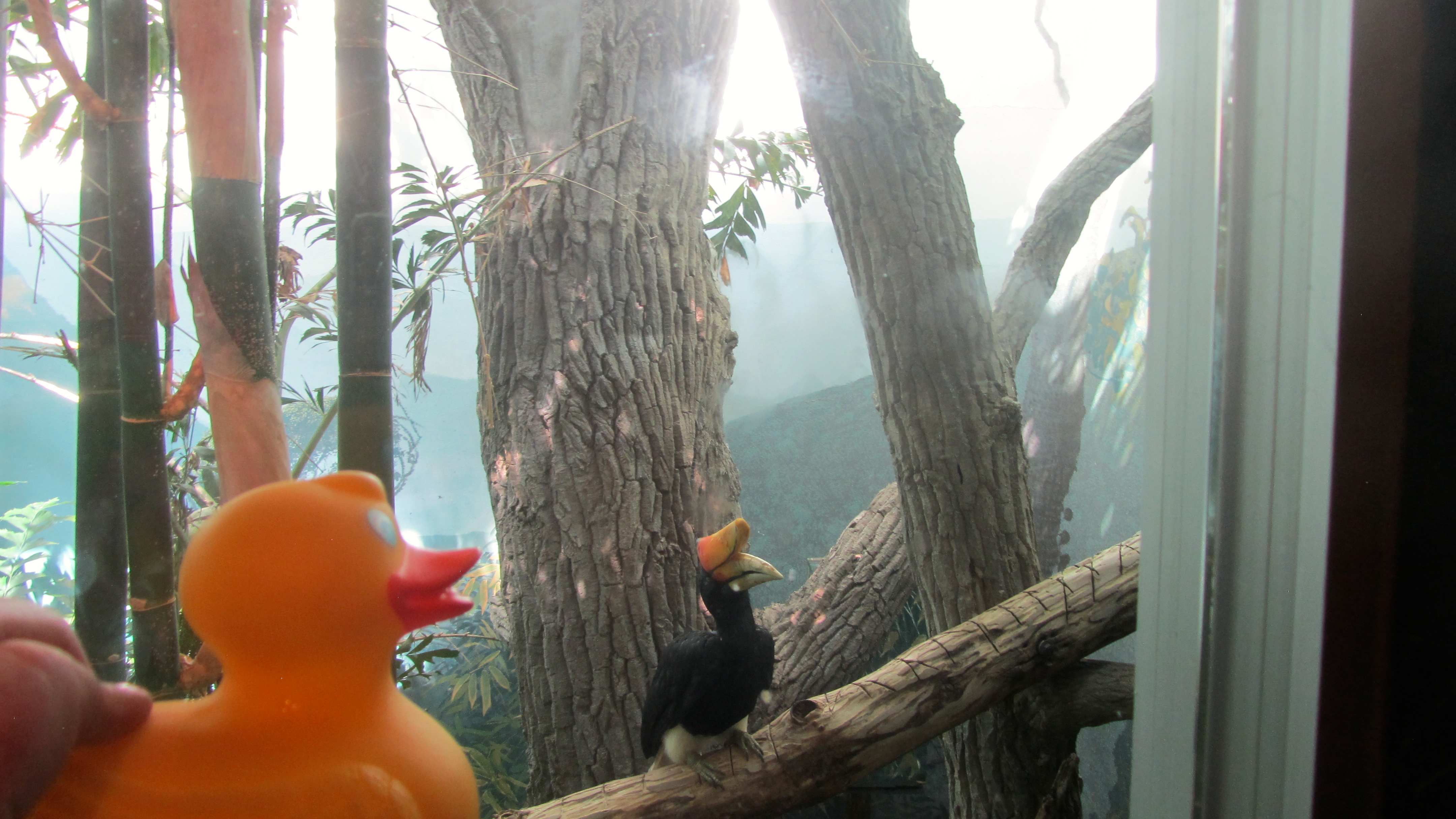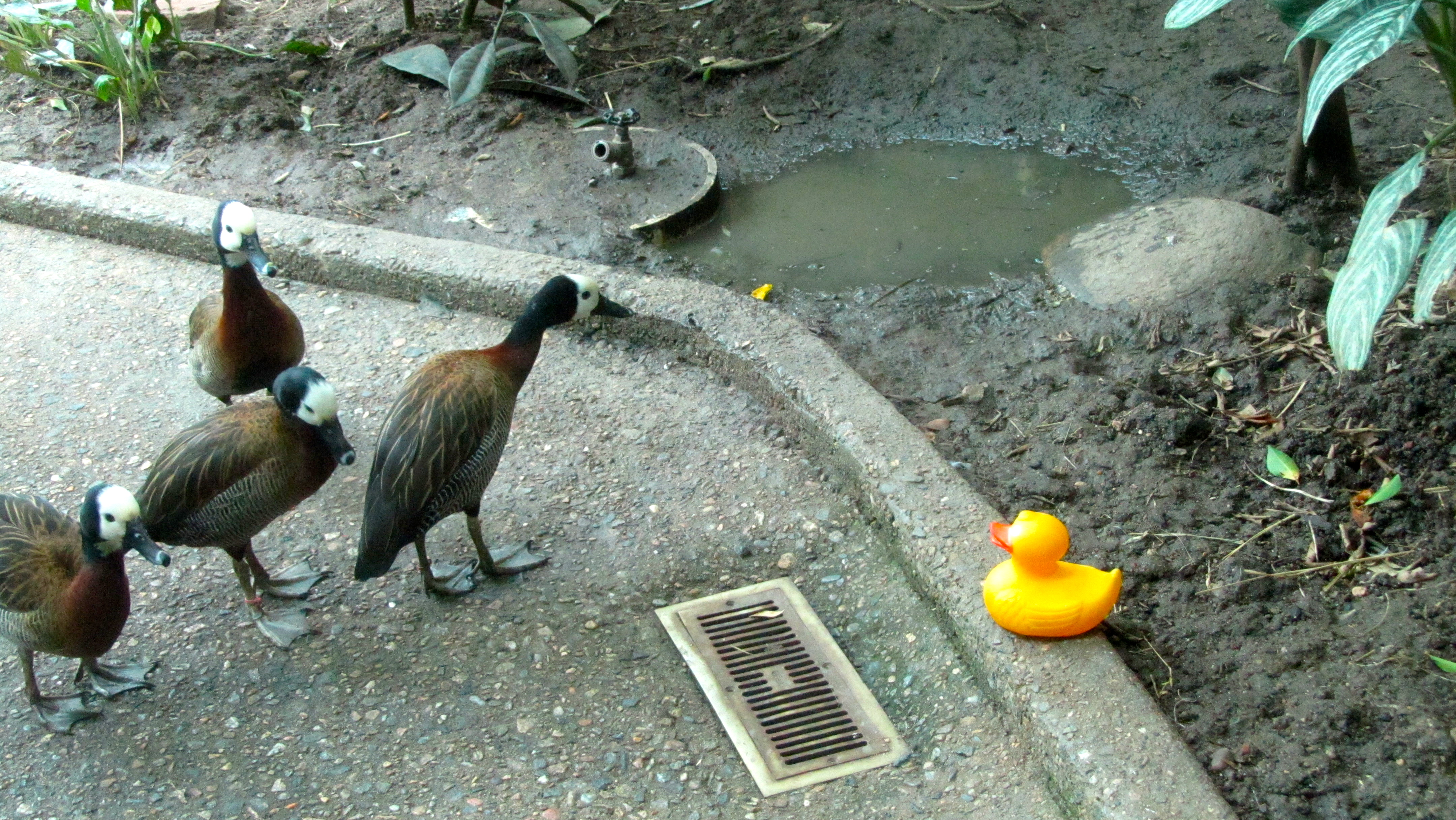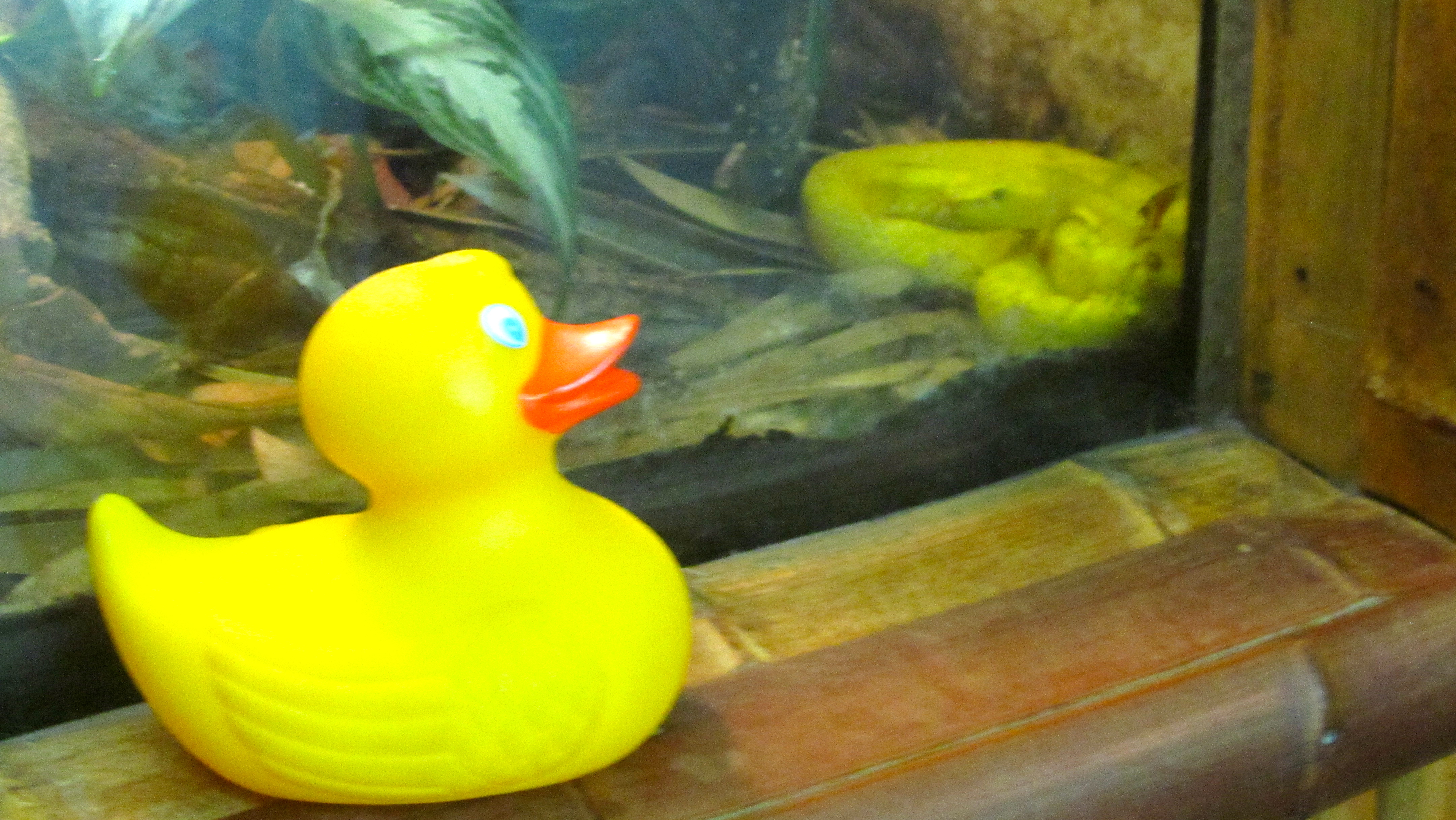 Ducks, let’s go to the zoo! Some of our favorite words. But what is this? Dinosaurs at the zoo? Aren’t they extinct? Let’s look around here. This is Coelophysis.