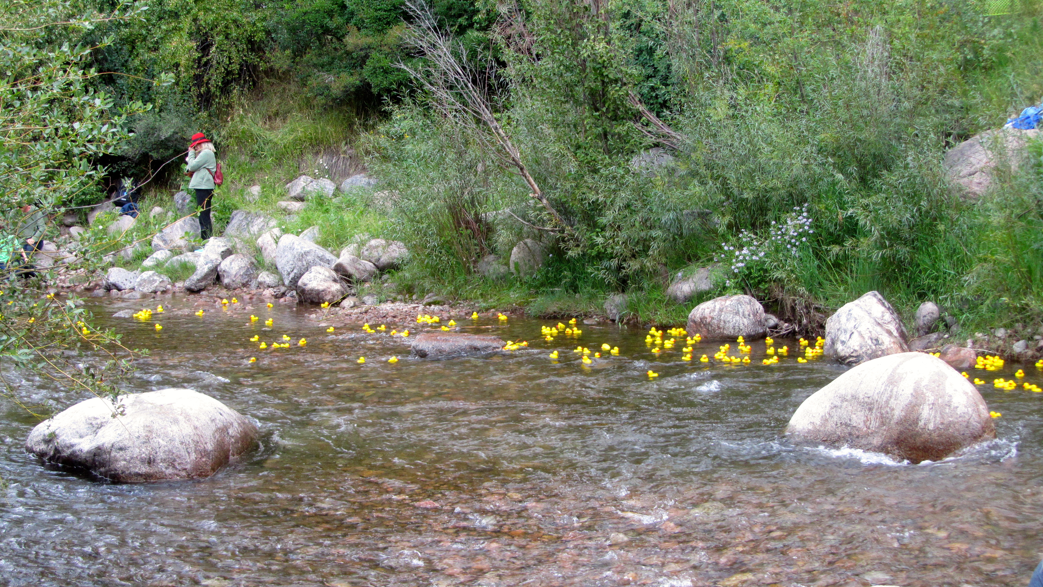 But that is not all for this festival . On Monday, the duck races occur. Of course, we love duck races. Duck races are to raise money for a good cause. The organizers of the duck races have hundreds or thousands of ducks that look almost like us. People or businesses buy (really rent) a duck or ducks. But they are not allowed to touch the duck. Each duck has a number, so humans know which is their duck. All ducks are dropped in Boulder Creek. And the races begin.