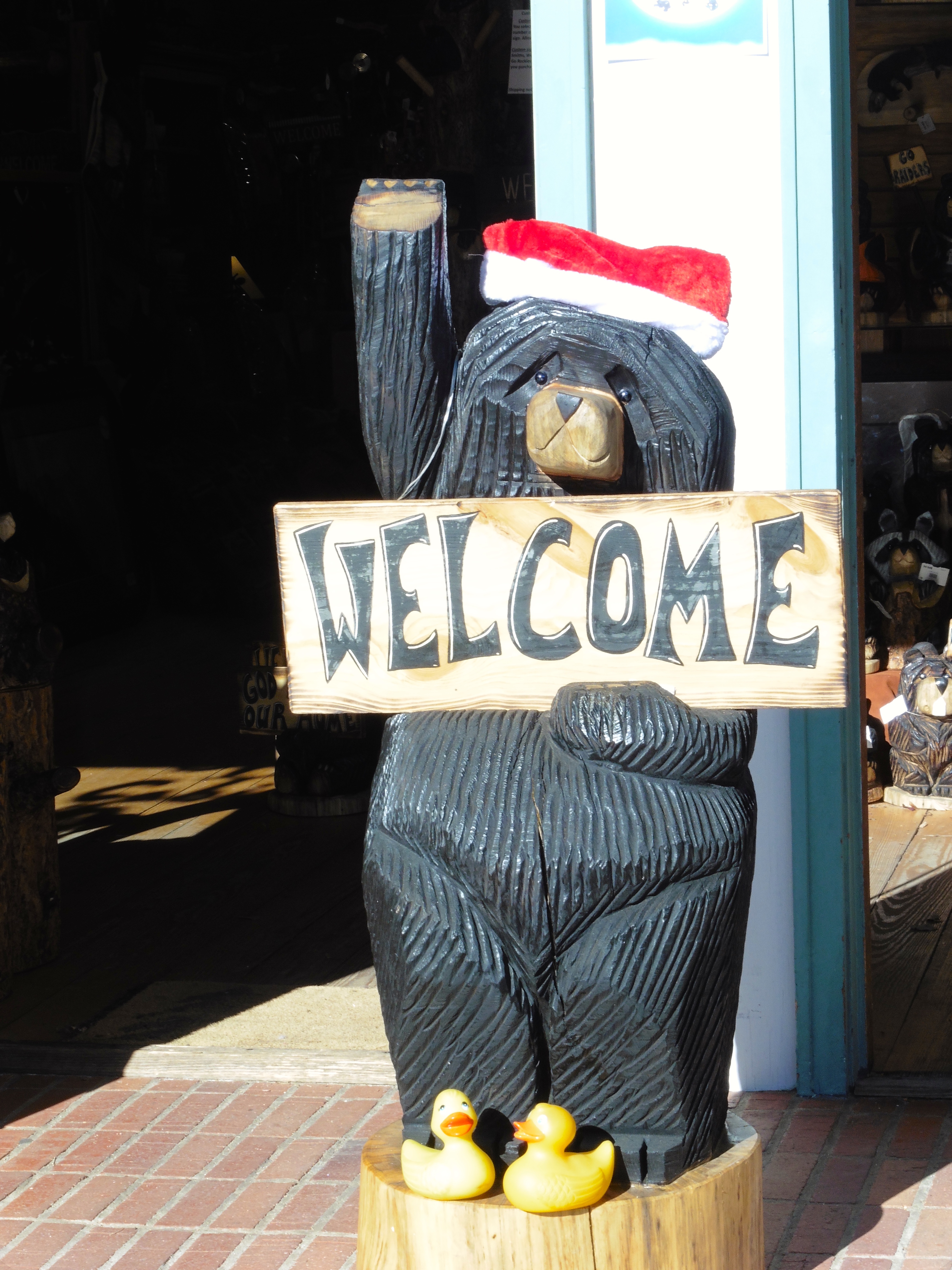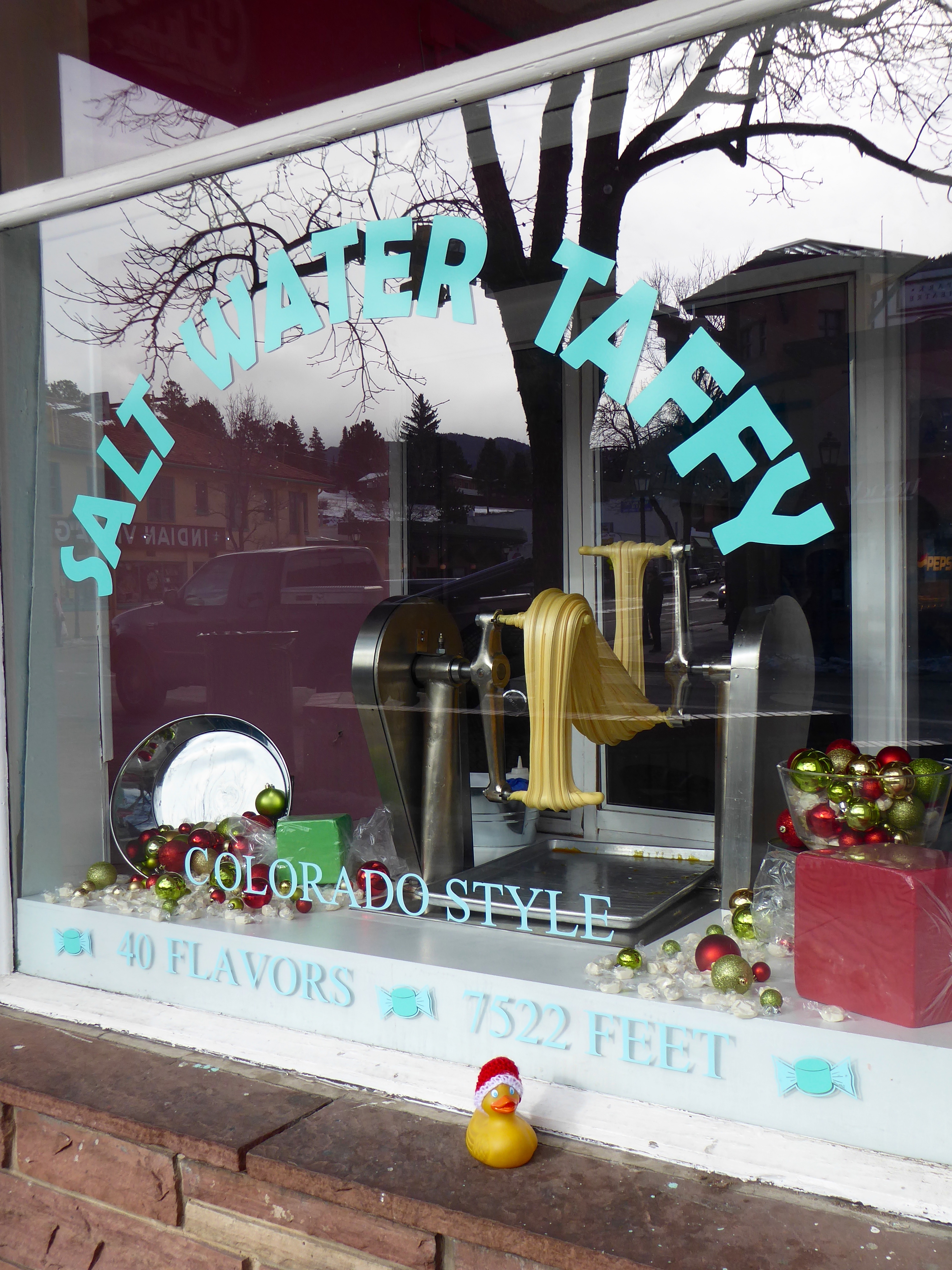 And the shops beside it. Last year we purchased singing bowls from the Himalayan store. That is the last store by the water wheel. They still sing and we still smile when we listen. Walking along Elkhorn Boulevard, we purchased a couple pair of very soft slippers. Then our normal stops at Laura’s Fudge Shop. The sign says they have been spoiling dinner since 1970. Moms have been coming here since the early 1970’s. So, it really is delicious. Fudge, toffee, candy, caramel apples, popcorn, ice cream and more. Yum. Then to The Taffy Shop. Moms have been coming here just as long. But, let’s find the real stars of today’s trip. Often we see many elk on the lawn of The Stanley Hotel.
