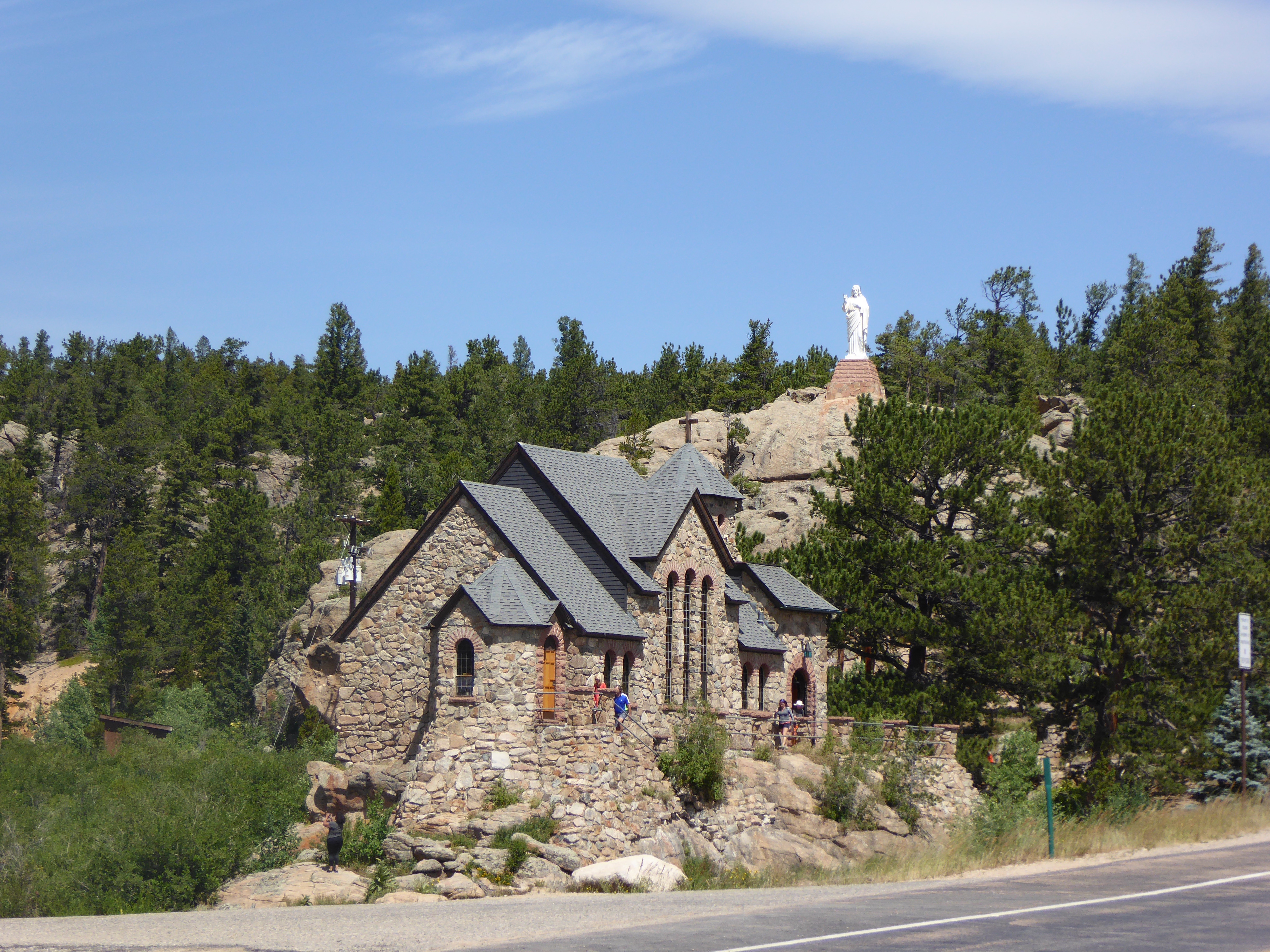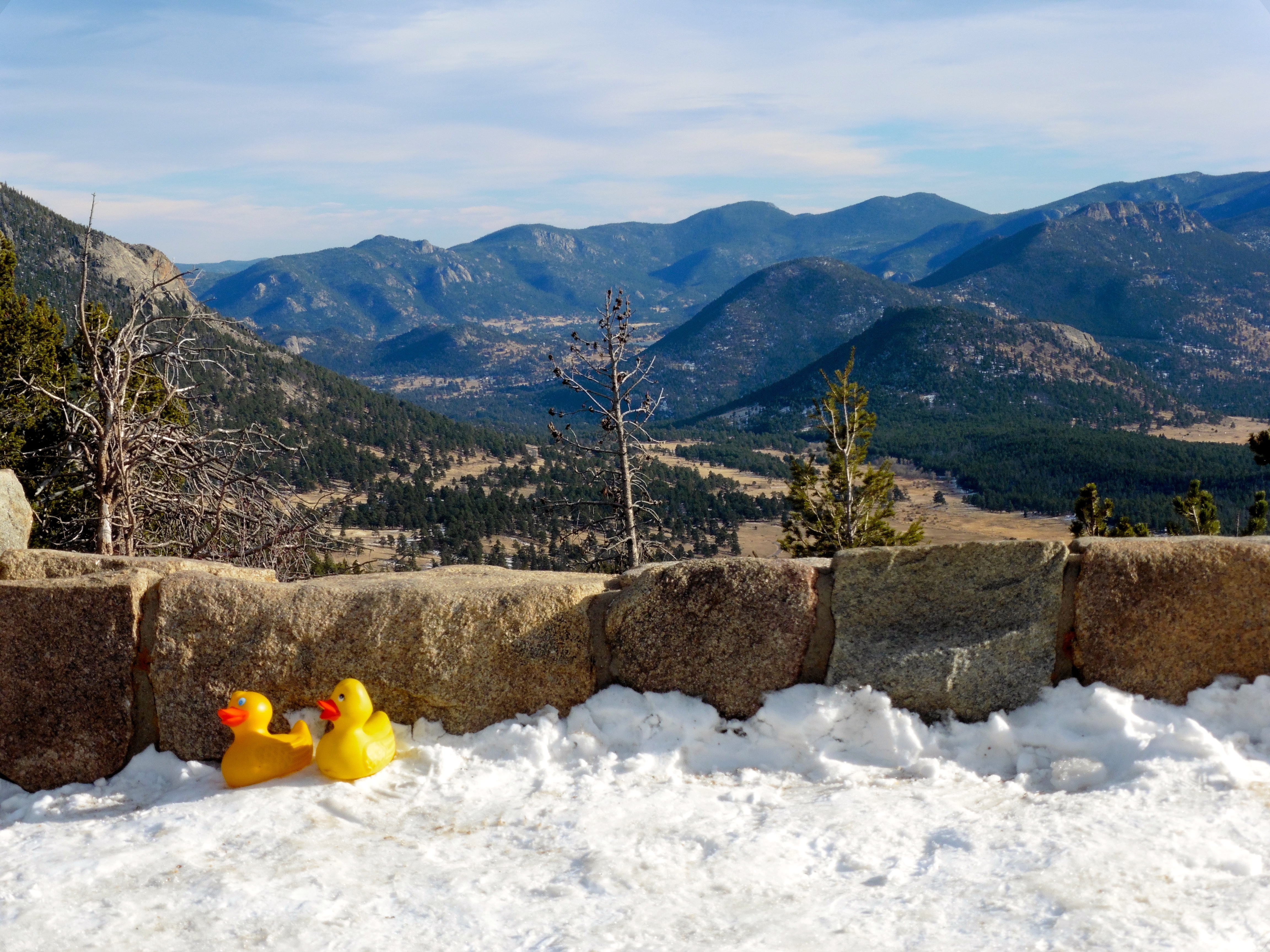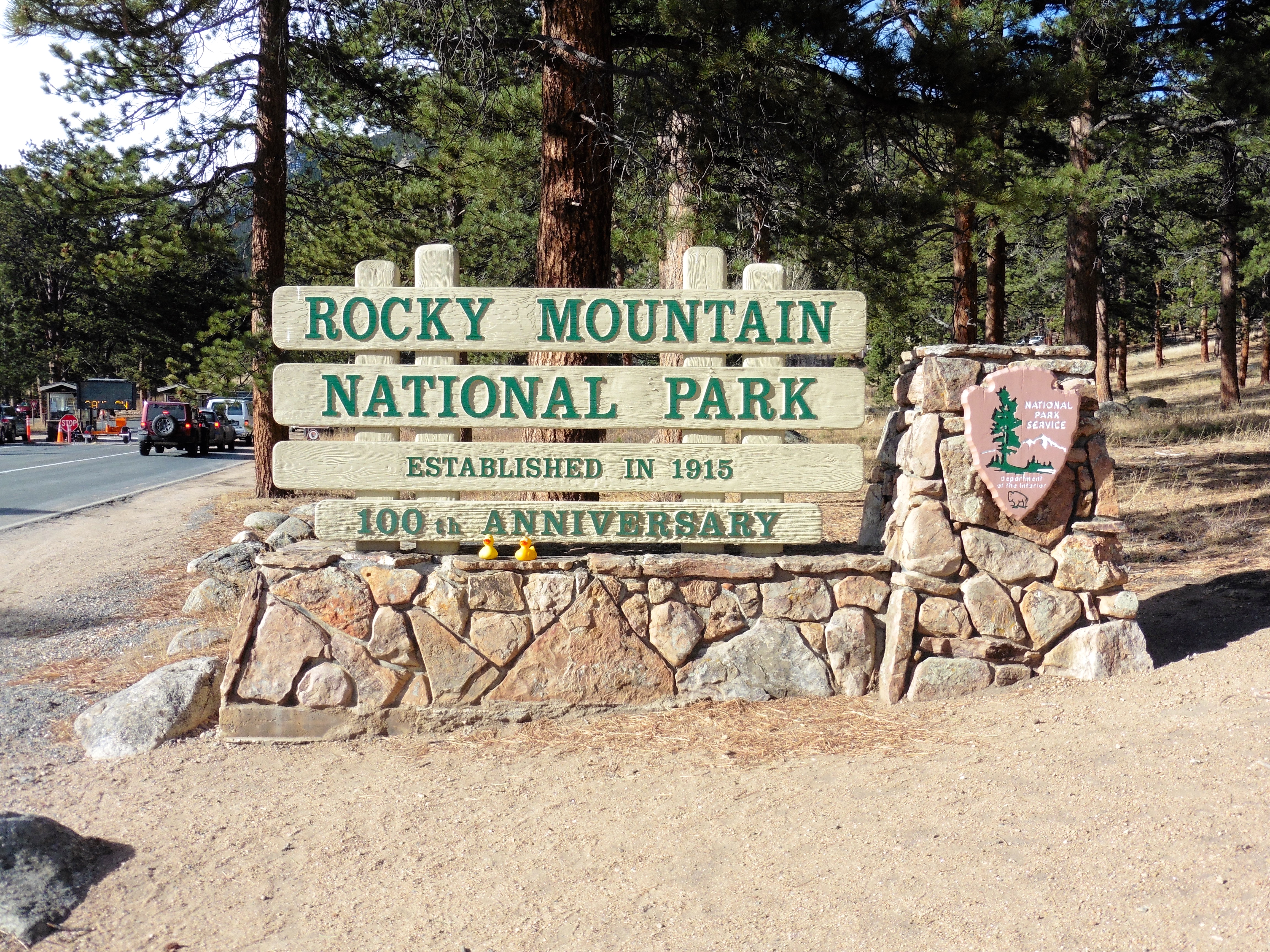 Estes Park is the eastern entrance to Rocky Mountain National Park. There are a lot of elk in the park, and all over this area of Colorado. In the fall, mating season brings the elk out of the mountains, and many spend time in the parks and golf courses of Estes Park. We love to see them. As we enter Estes Park we stop for a photo by the city sign. The mountain views from this lookout are beautiful.