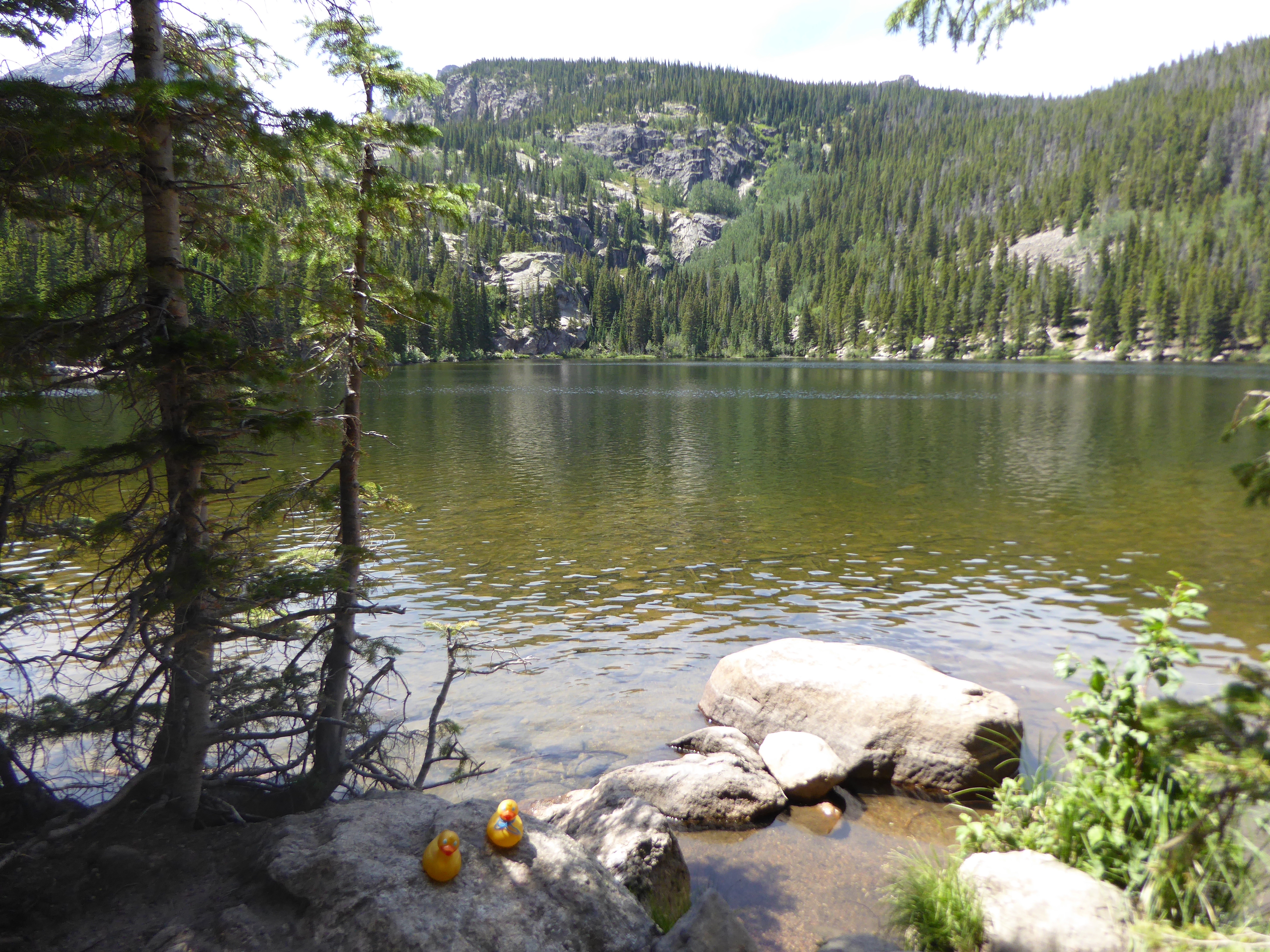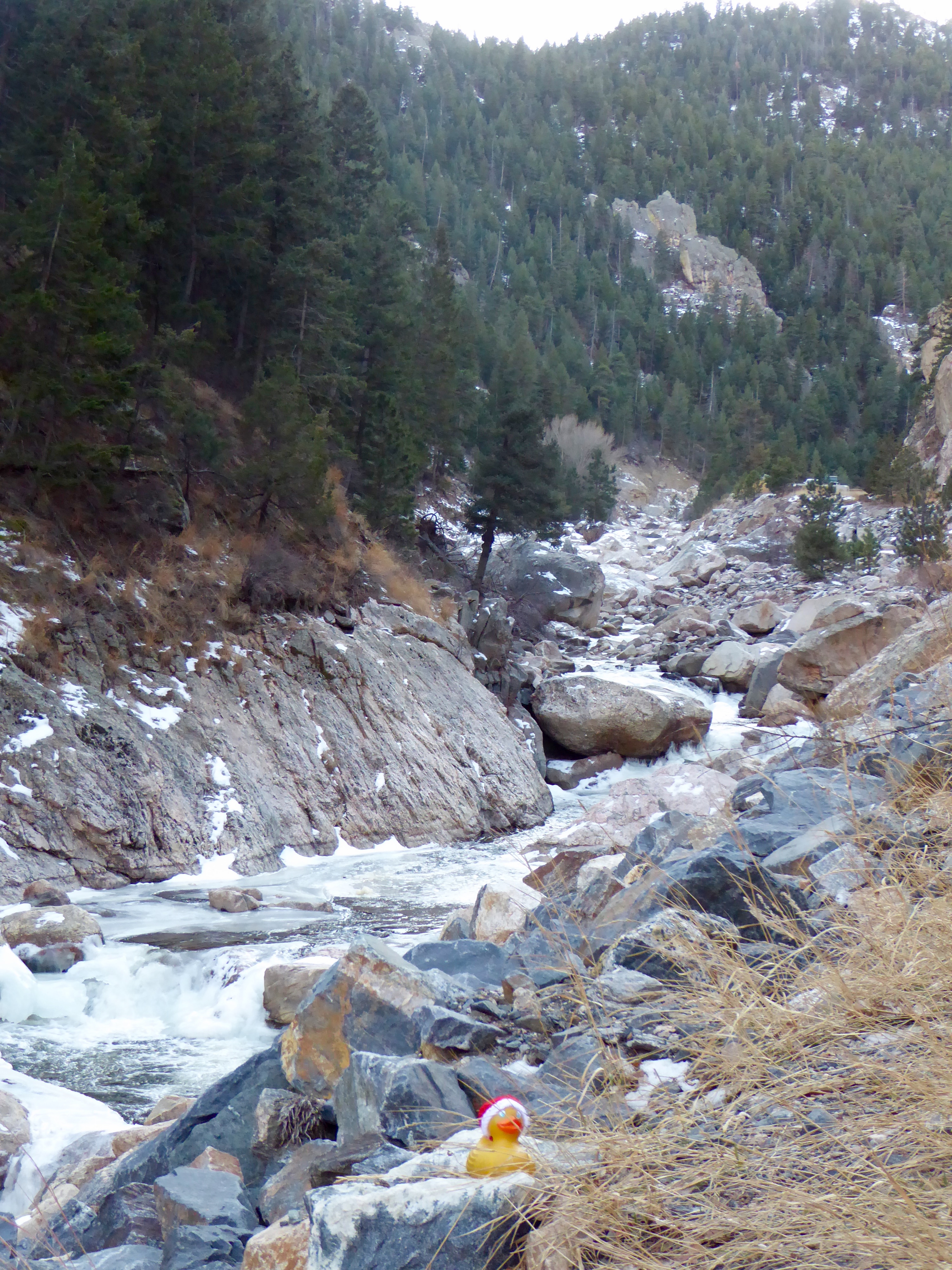 These elk are wild and very large, but they are rather accustomed to humans. However, we do not get too close. They are wild animals, it is mating season, and they can be startled. So humans and ducks watch and admire the elk, but do give them a lot of space. Today we are going home through Big Thompson Canyon. This is a beautiful canyon with many private cabins, many rental cabins, bed and breakfast, lodge, shops and year round residents. Parts of the canyon are rather wide to accommodate small settlements, and parts are rather narrow with steep mountain sides. Often mountain goats are on the side of the mountains. But today we stop for cherry treats.