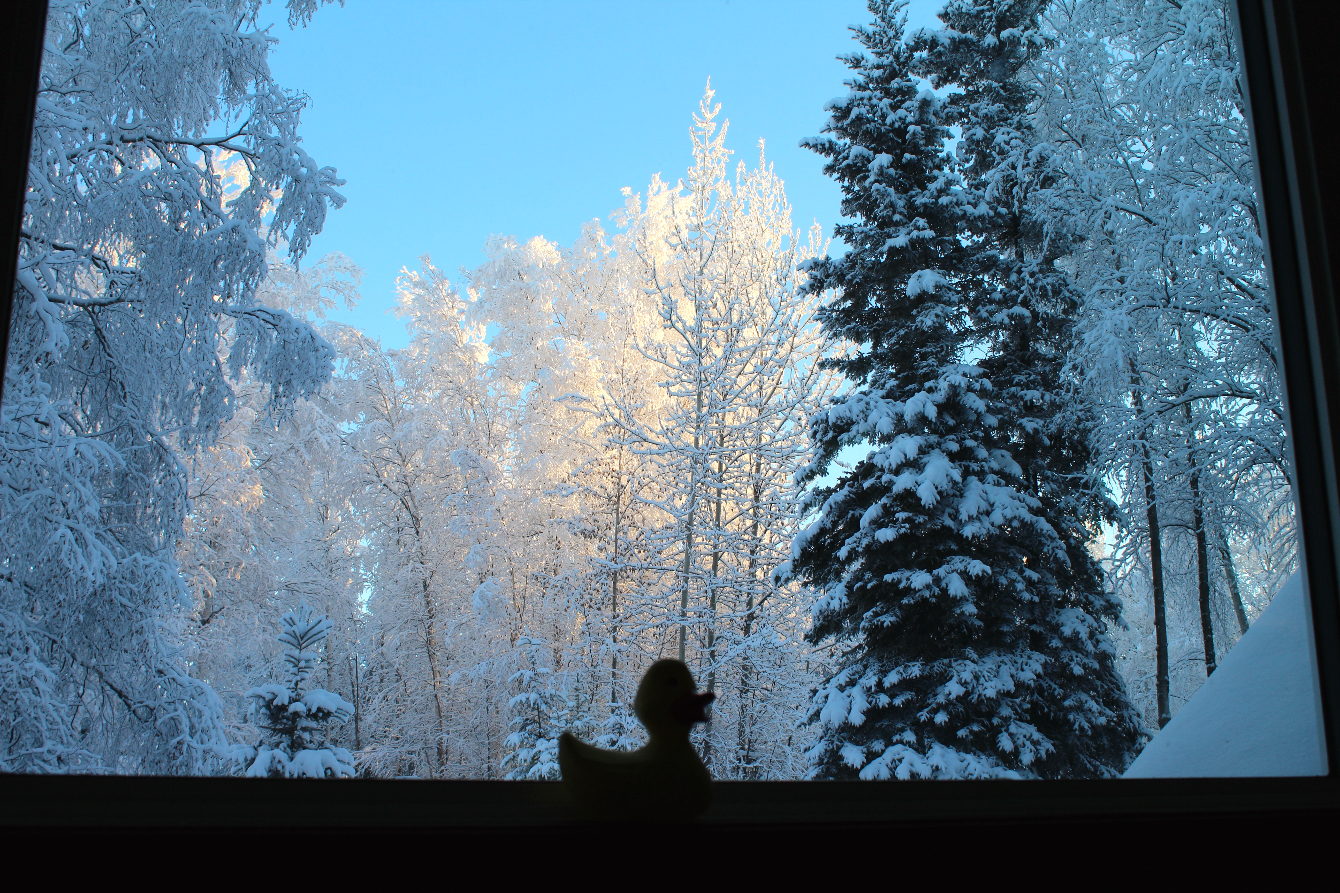 Aren’t these trees tall? From our cabin window we could see a wild, wooded area.