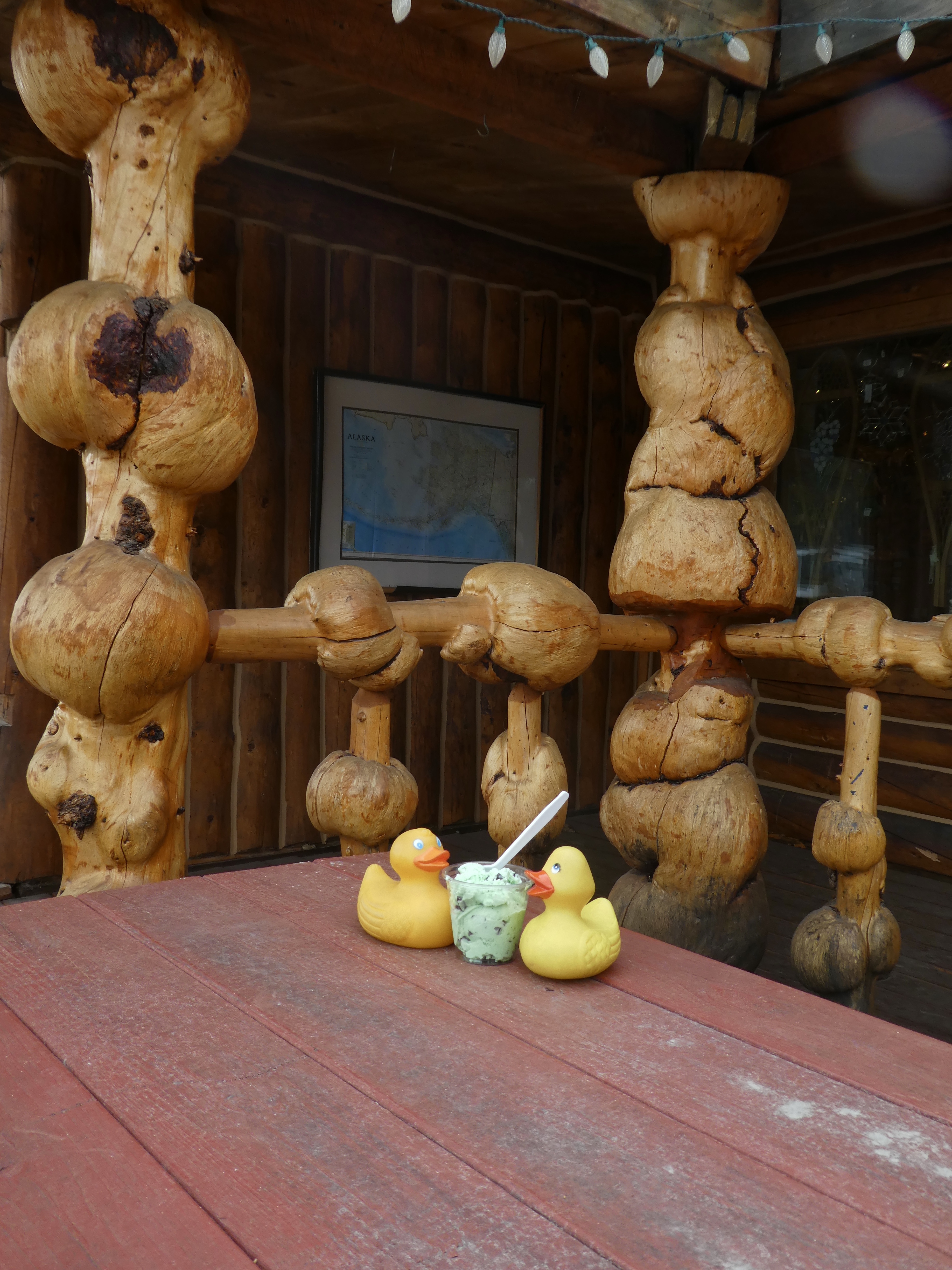 Some of these benches are very ornate. We love the carved wooden benches. In the winter, this is a great area to view the Aurora, or the Northern Lights. Also fun to ride on a dog sled through the snow and wooded areas. Chena Hot Springs is a great year round resort.
