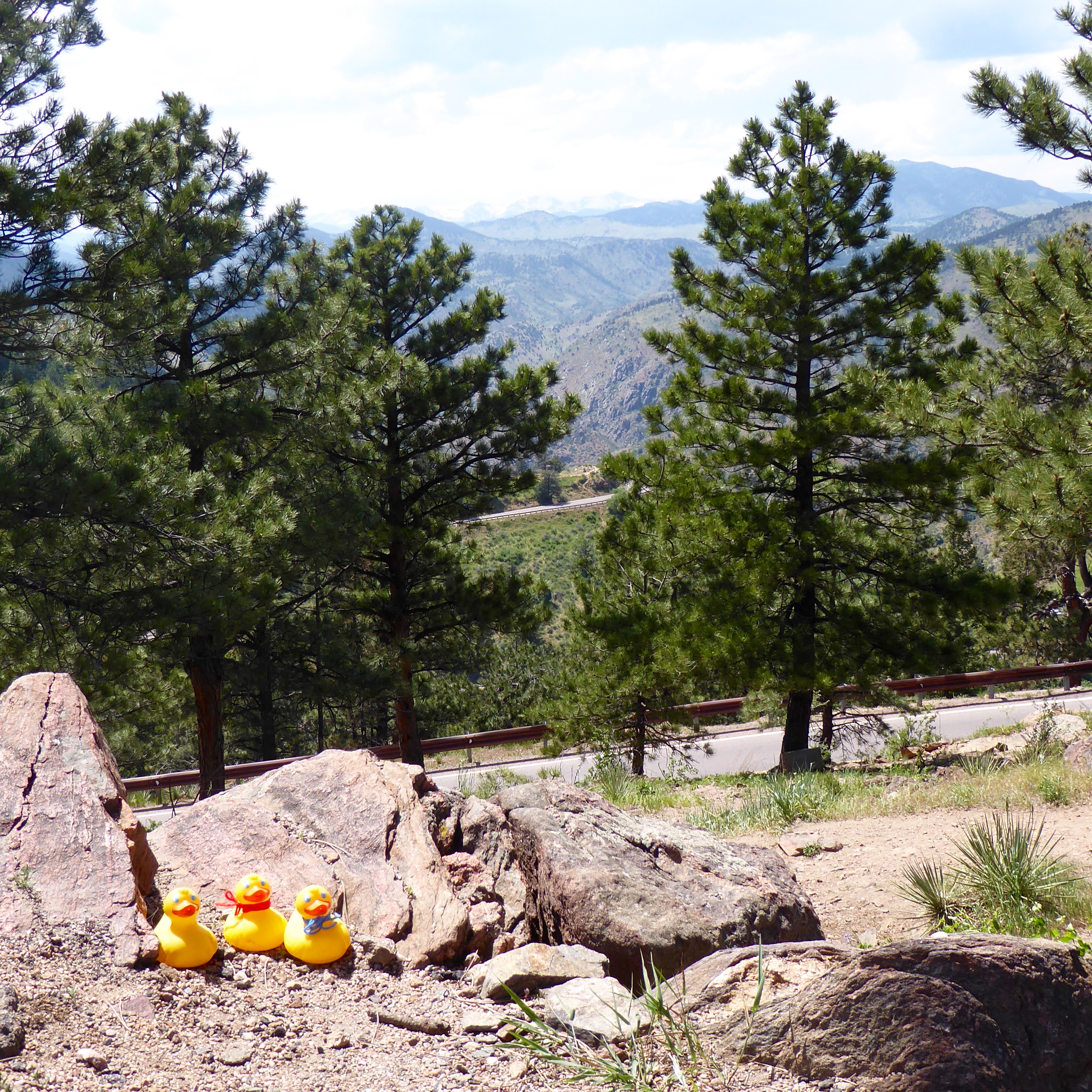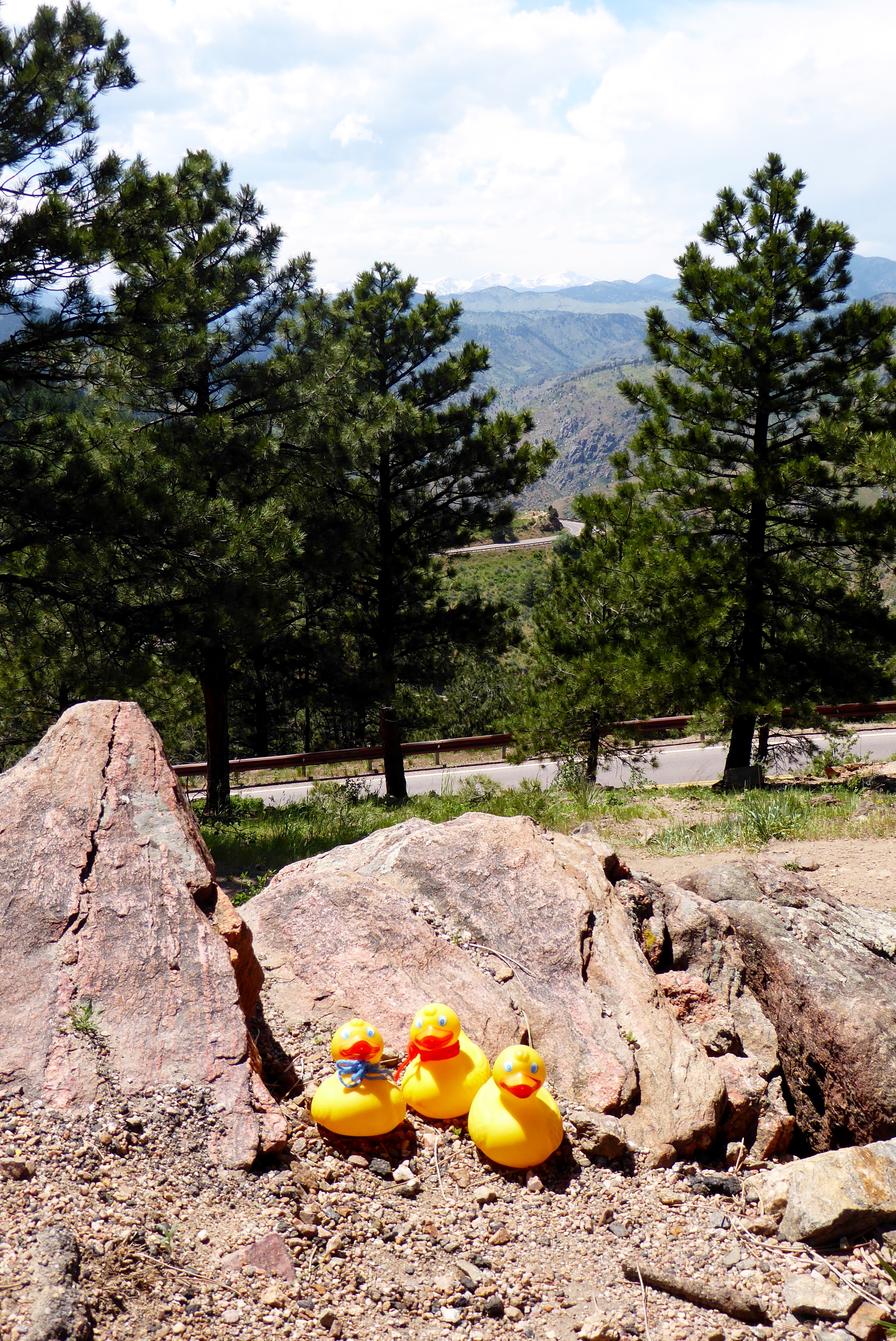 Mom said we were not renting them today, but we had to try them for size. These are big. The employees at Spirit Lake Lodge rent these machines. They were very nice to us, the Colorado Traveling Ducks. A drive into Rocky Mountain National Park was next.