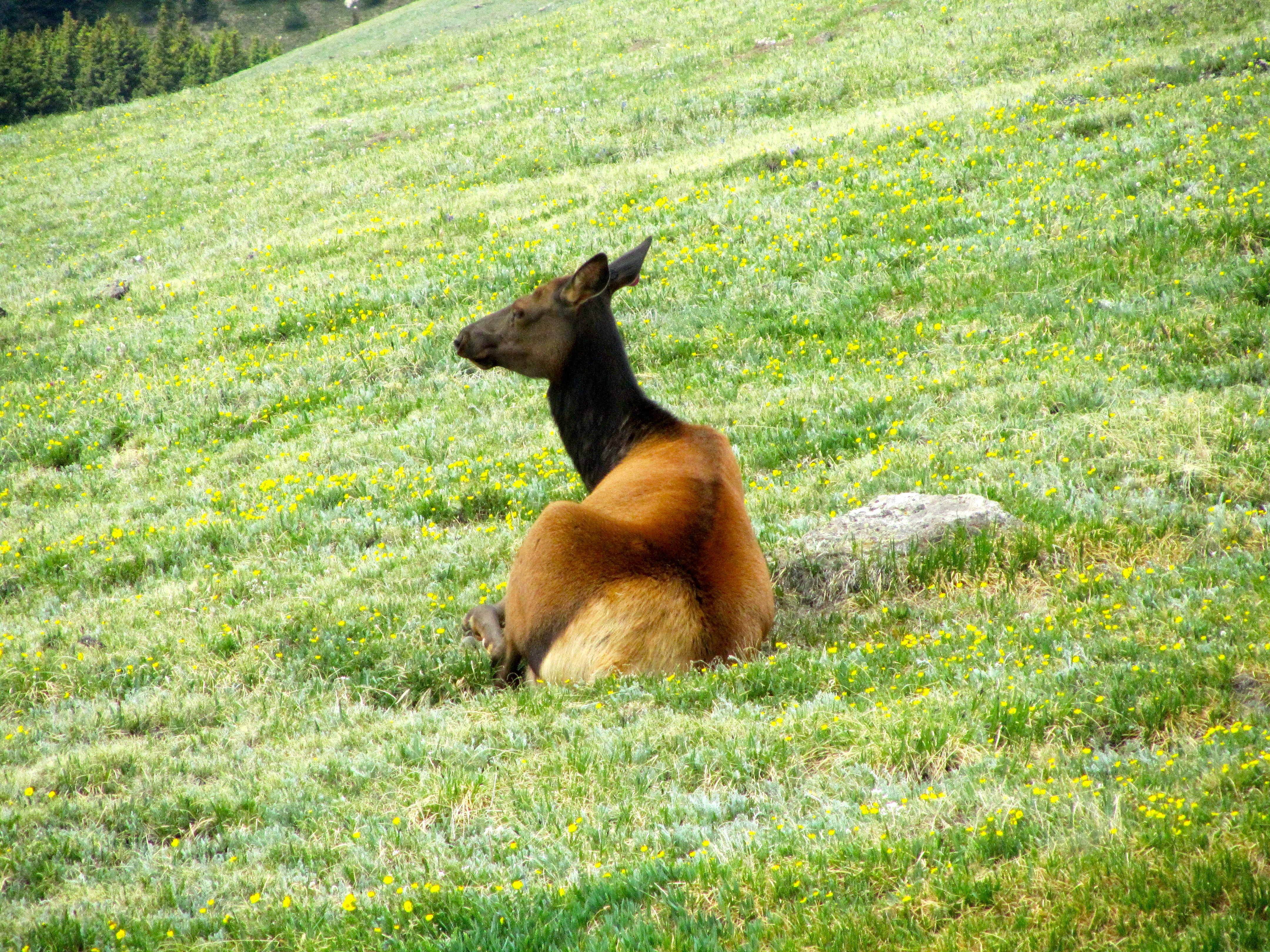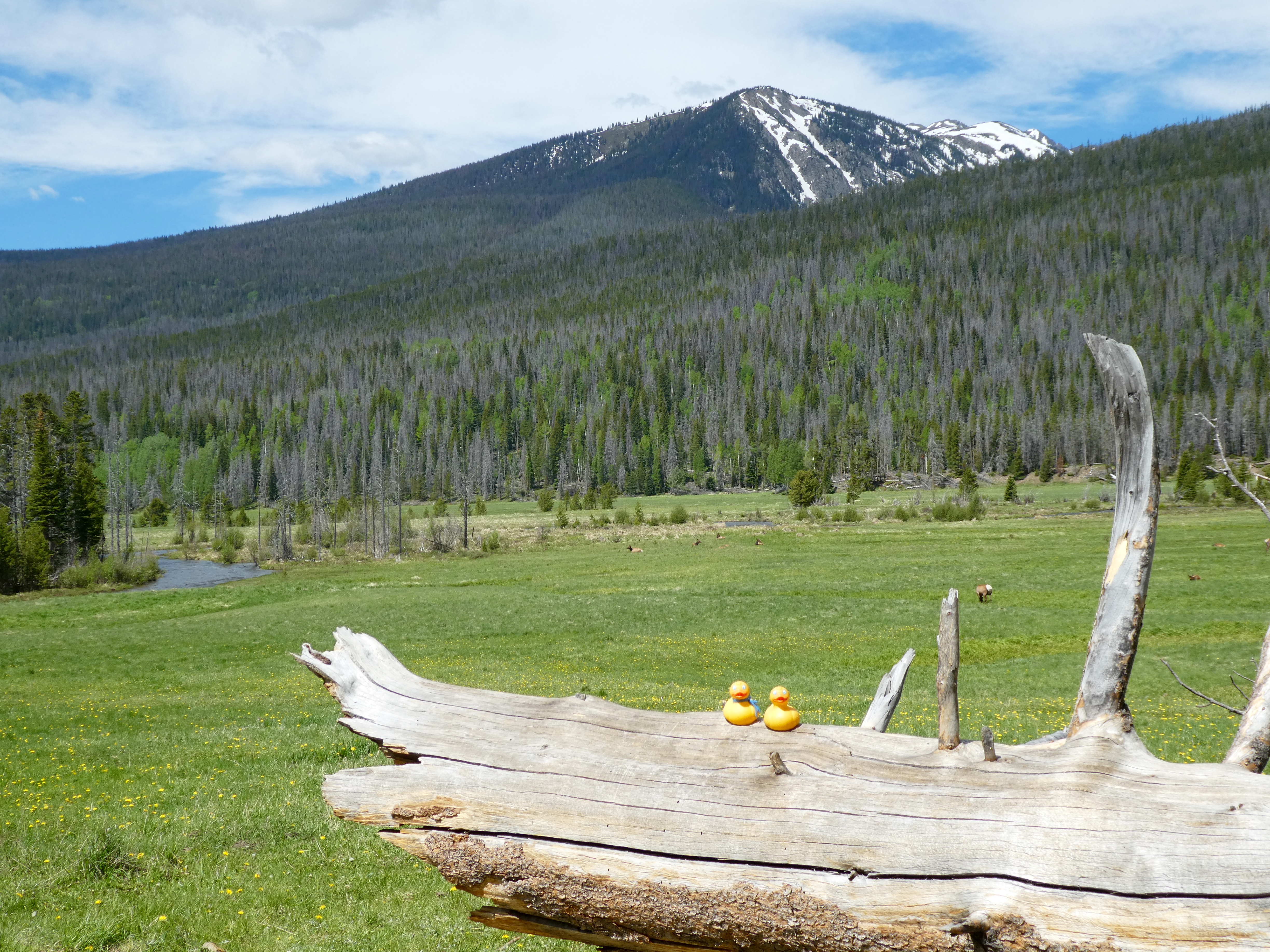Mom said we were not renting them today, but we had to try them for size. These are big. The employees at Spirit Lake Lodge rent these machines. They were very nice to us, the Colorado Traveling Ducks. A drive into Rocky Mountain National Park was next.