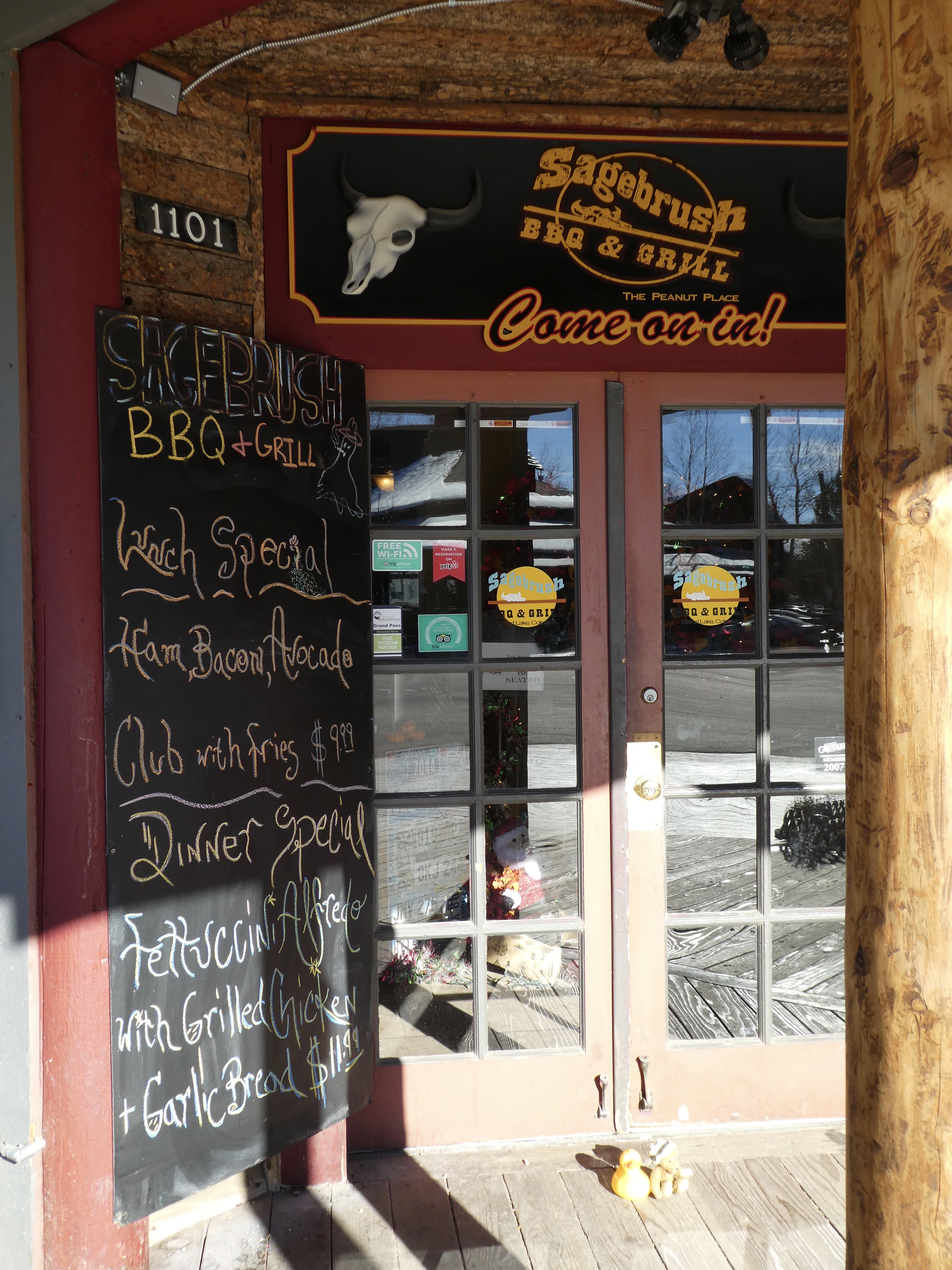 We are to toss the peanut shells on the floor. That is the sign of a fun place to eat. Notice the cow pattern table cover? Our lunch was delicious and the portions were large. A good place to eat when you are in Grand Lake. Now to the adjoining bar.