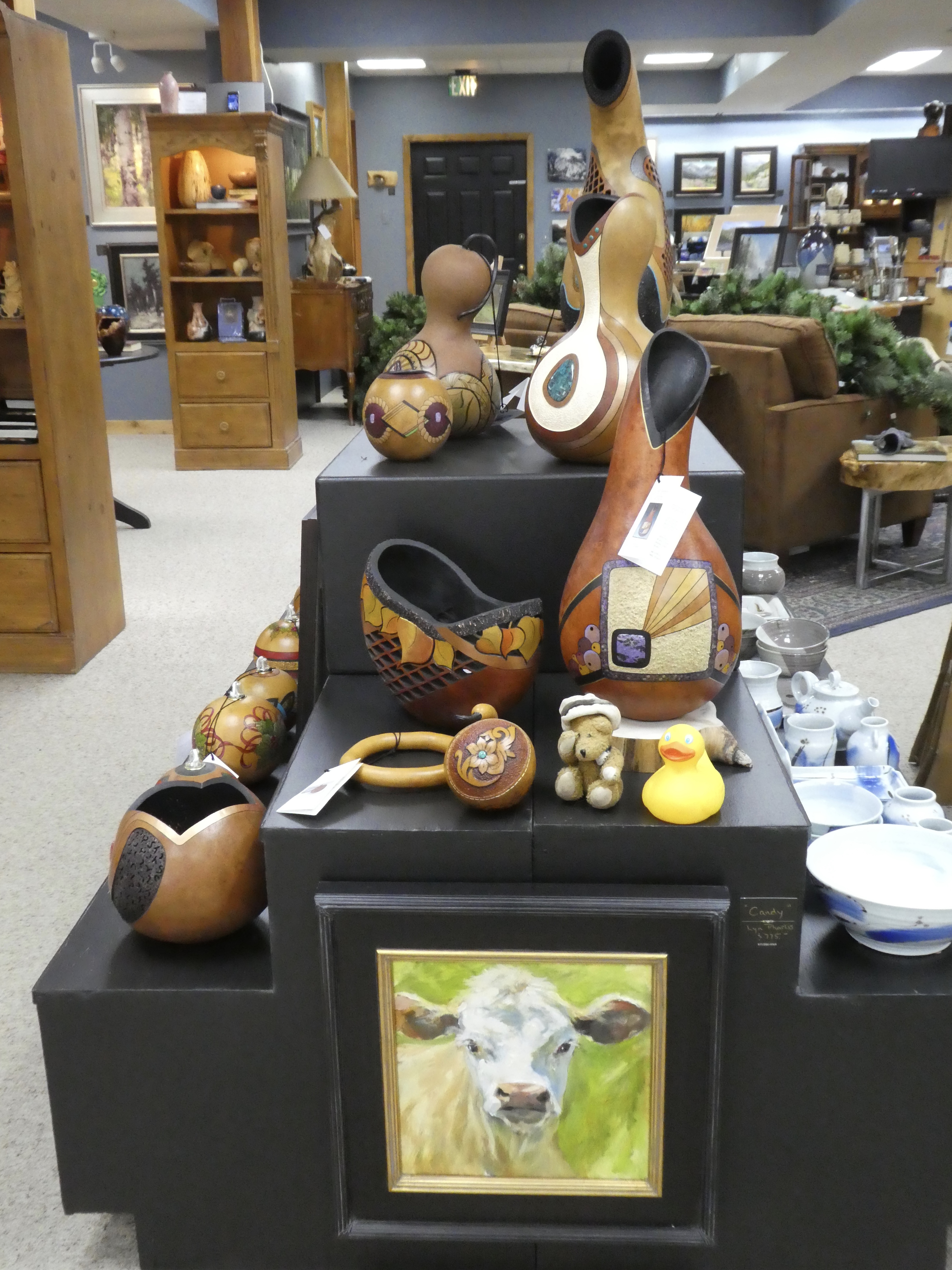 The 8369 refers to the elevation of the town of Grand Lake. That is about 2550 meters above sea level. The Rocky Mountains in Colorado are rather high. Inside Studio 8369 we admire the Gourd Art.