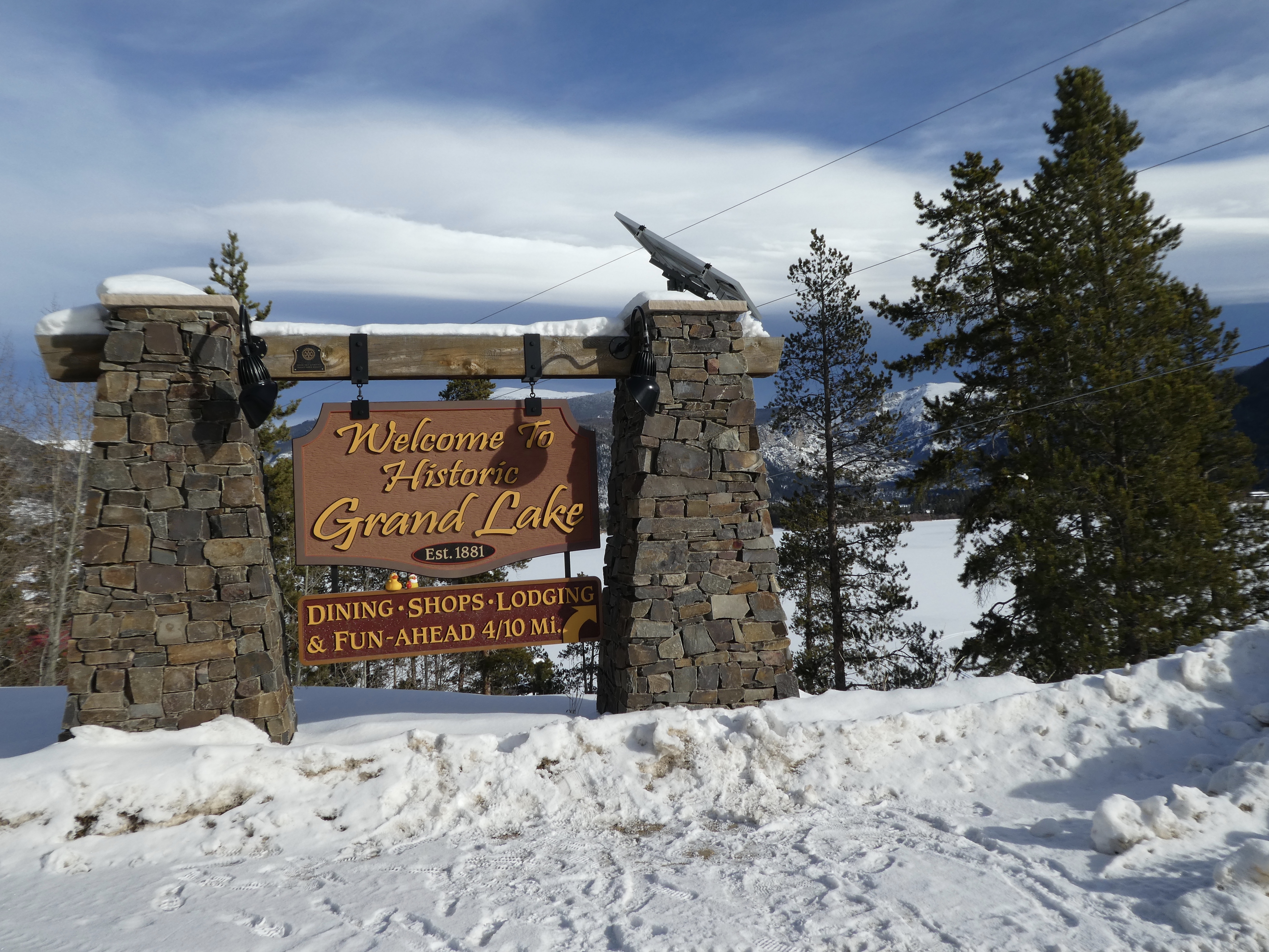 We loved the partially frozen lake and the low clouds. Driving through town, past Quackers, we went to Grand Lake. Grand Lake is the largest and deepest natural lake in Colorado. It is also part of the headwaters for the mighty Colorado River. Remember the Colorado River heads southwest and continues to carve the Grand Canyon.
