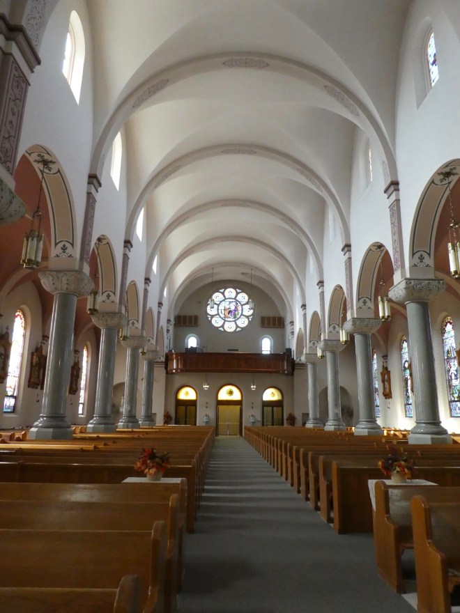 I love these big windows. The sun shines through the glass in a perfect way. From the altar, let’s look to the doors and the choir loft.