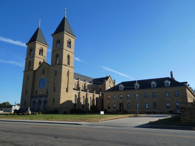 This church is beautiful, and big. This church is not a seat for a bishop, so it really is not a Cathedral. In February 2014, the church was declared a minor Basilica. The first Basilica in Kansas and the 78th Basicila in the United States. But it is still called Cathedral of the Plains by many people. We liked the carved Bible verses in front of the church.