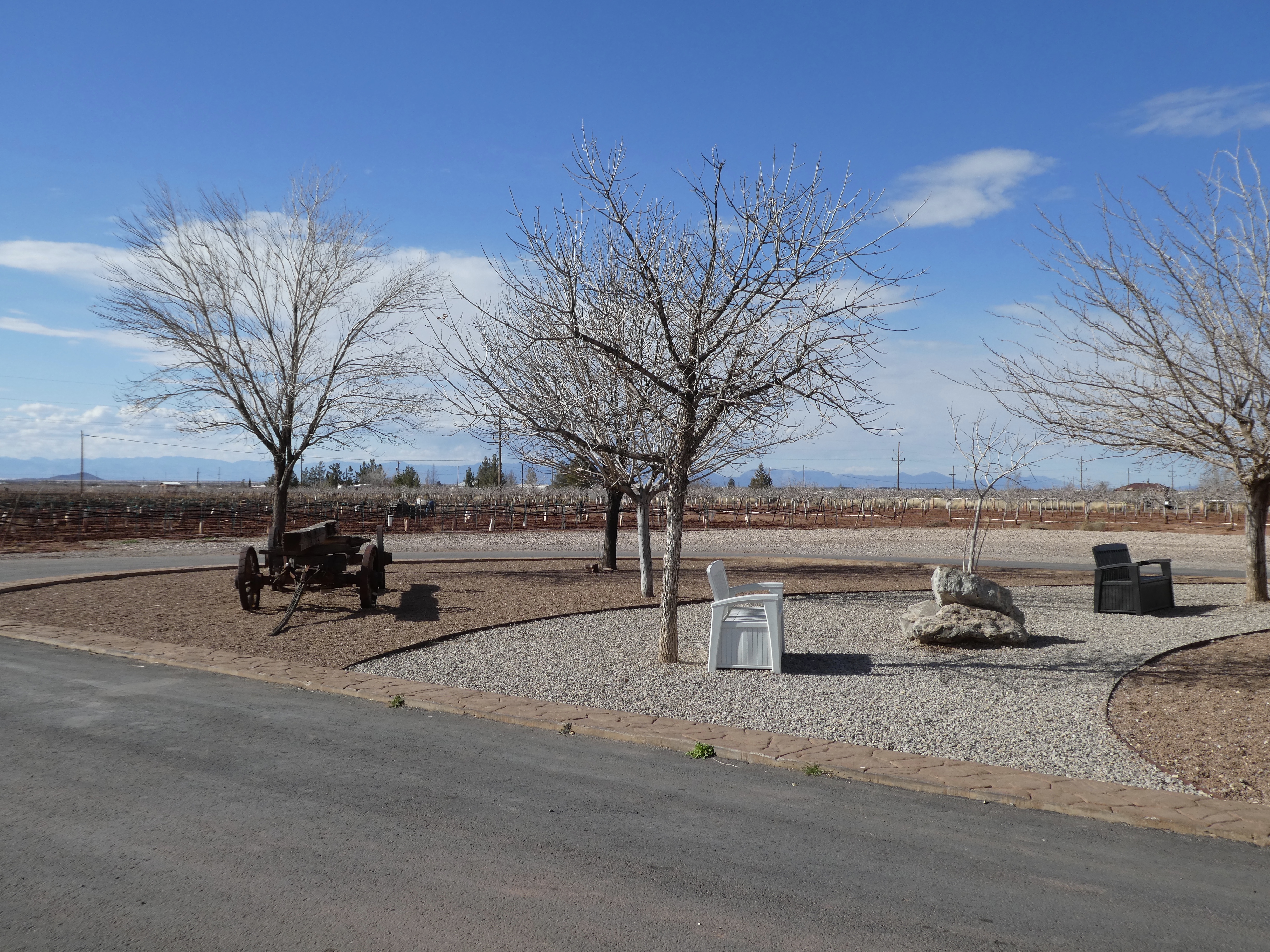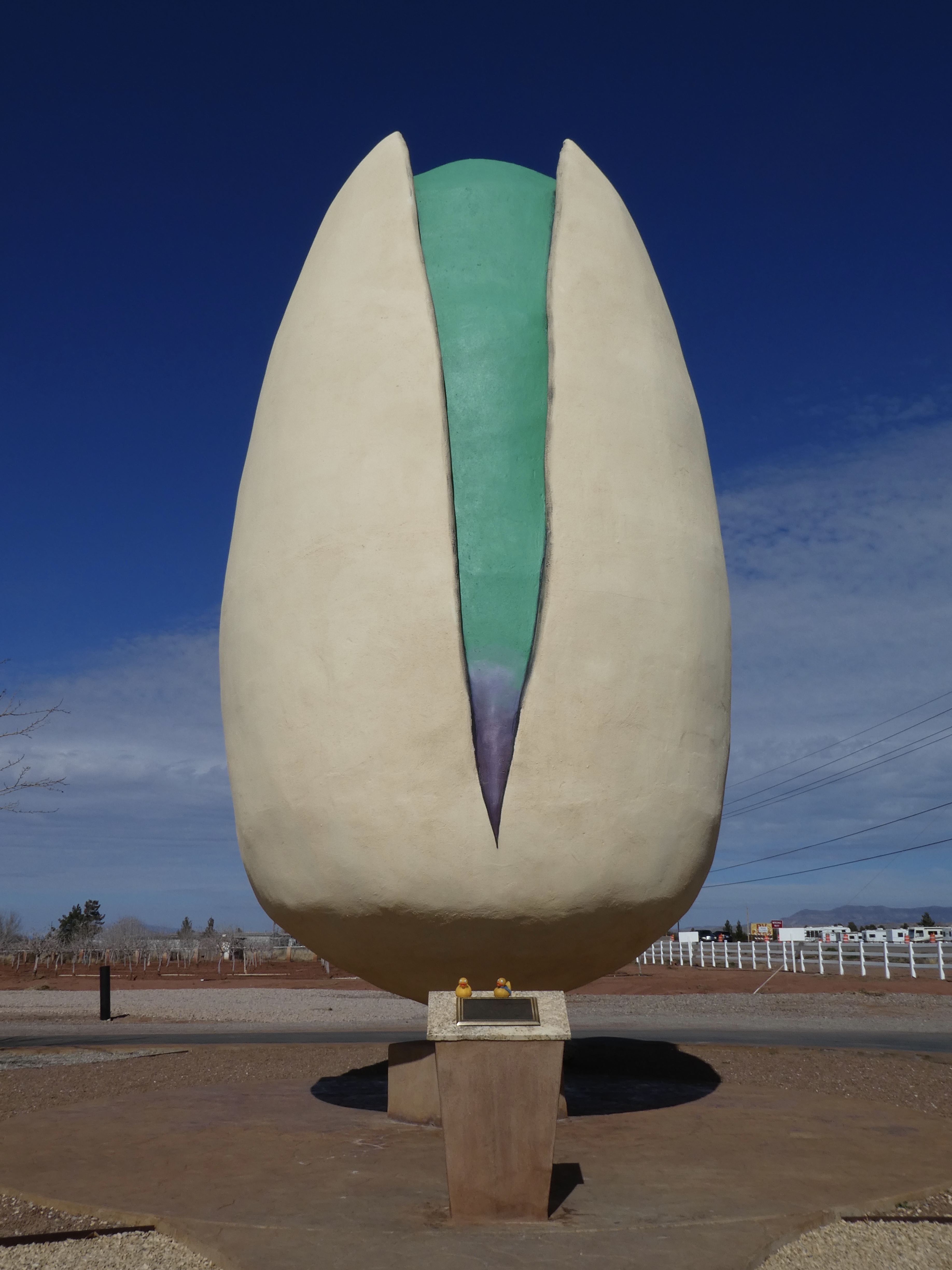 This is the world’s largest pistachio nut. It is 30 feet tall, made from 5 yards of concrete and then colored with 35 gallons of paint. When the founder, Mr McGinn, died, his heirs had this pistachio nut created. They remember as kids they would travel around the country with him, always stopping for these oversized, roadside attractions. We ducks have seen a lot of these attractions also, and we always are amazed by what we find. But, back to Alamogordo and this pistachio farm. The building is huge, housing equipment, gift shop, small cafe and lots of storage.