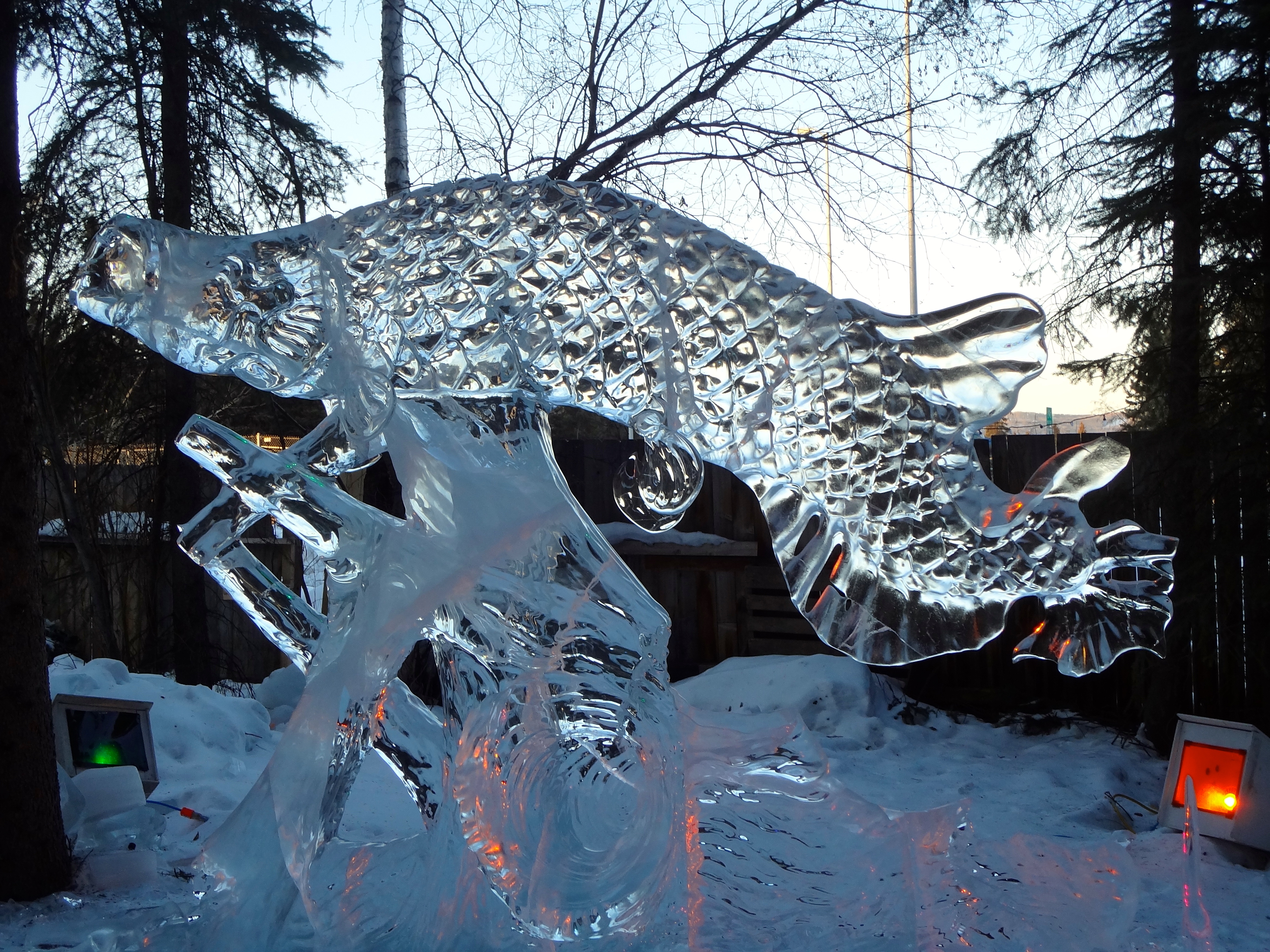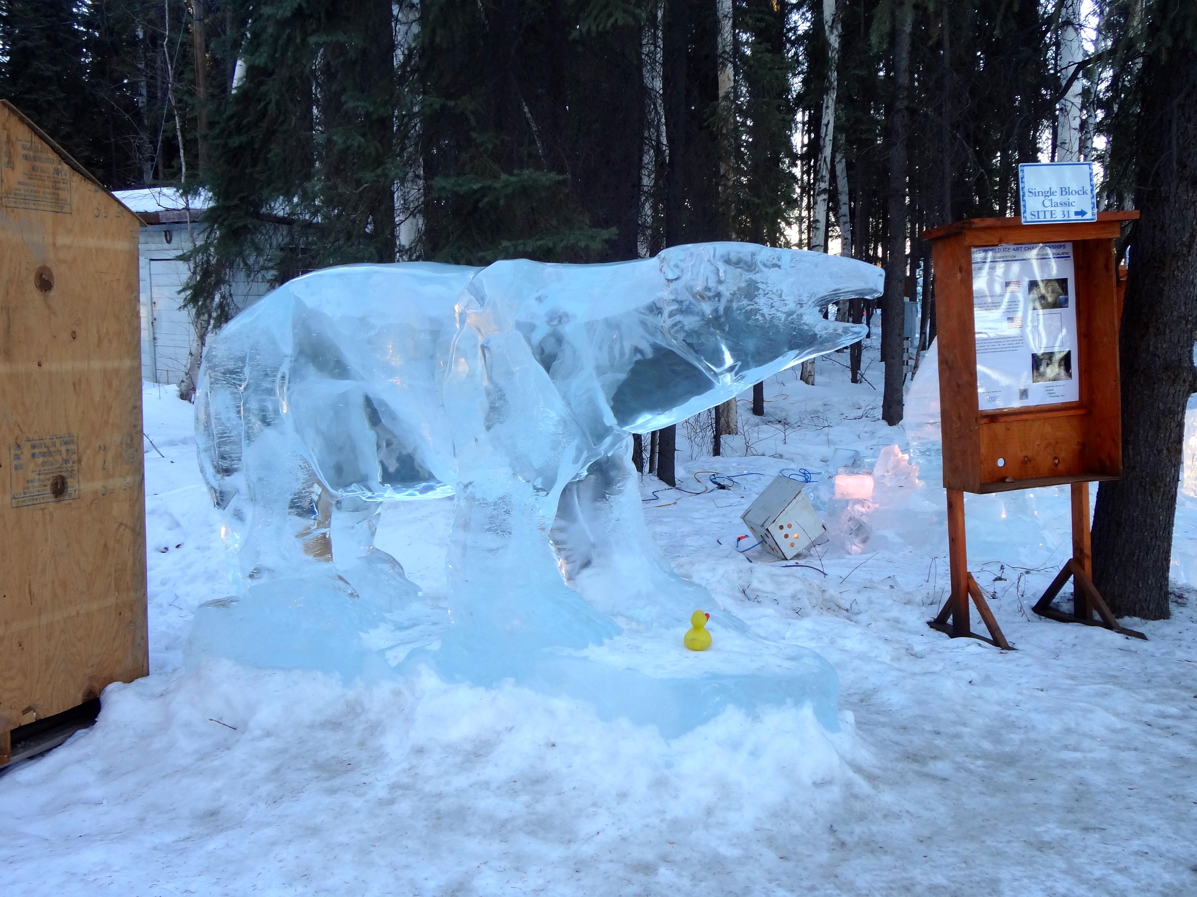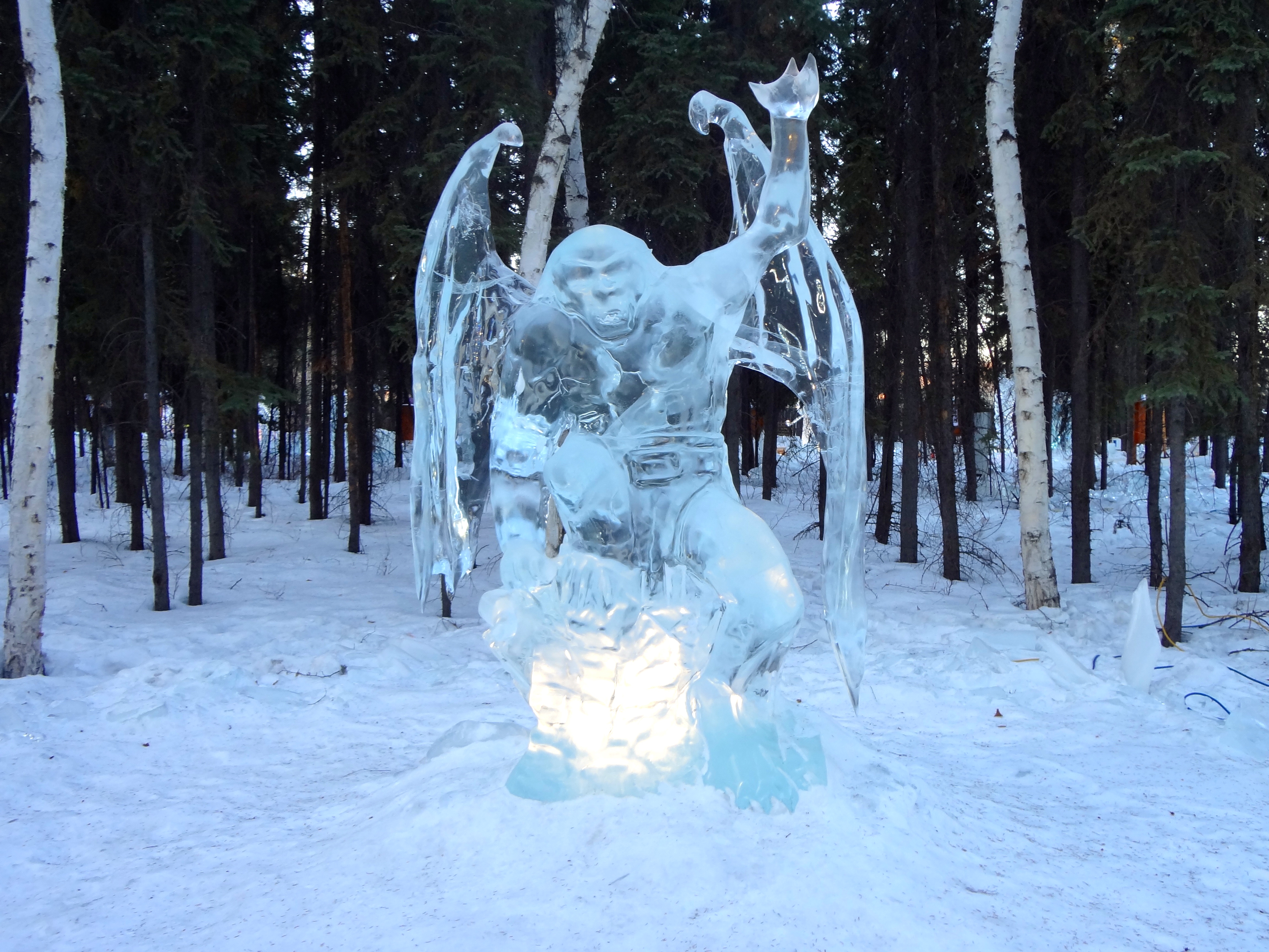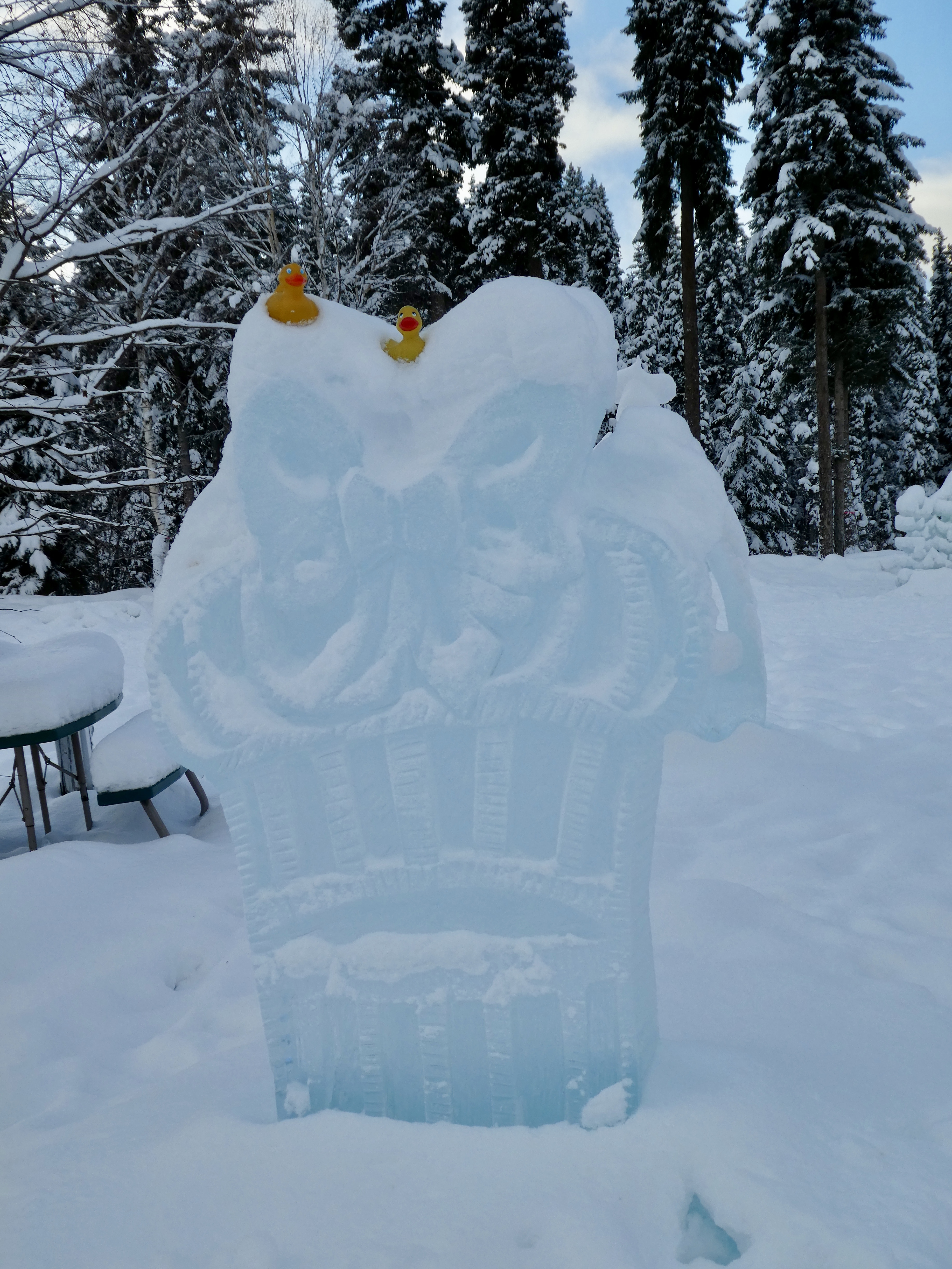 Sculpting ice starts with chain saws and ends with tiny tools for great details in the ice. Previous years a committee had a theme and all carvers followed the theme. This year it was Carver’s Choice. First we saw these carvings of Giant Insects in Ice by Snice Carvings.