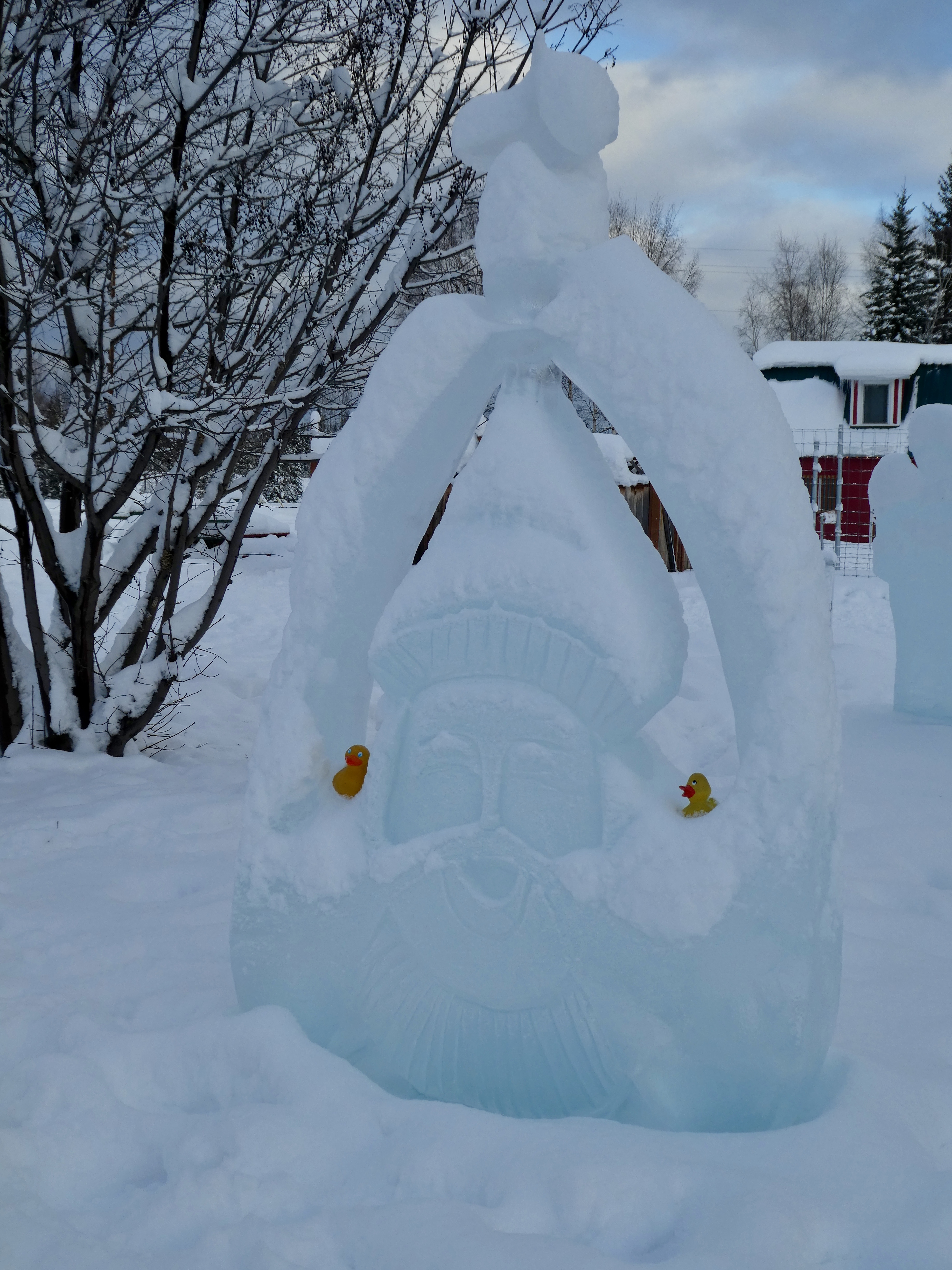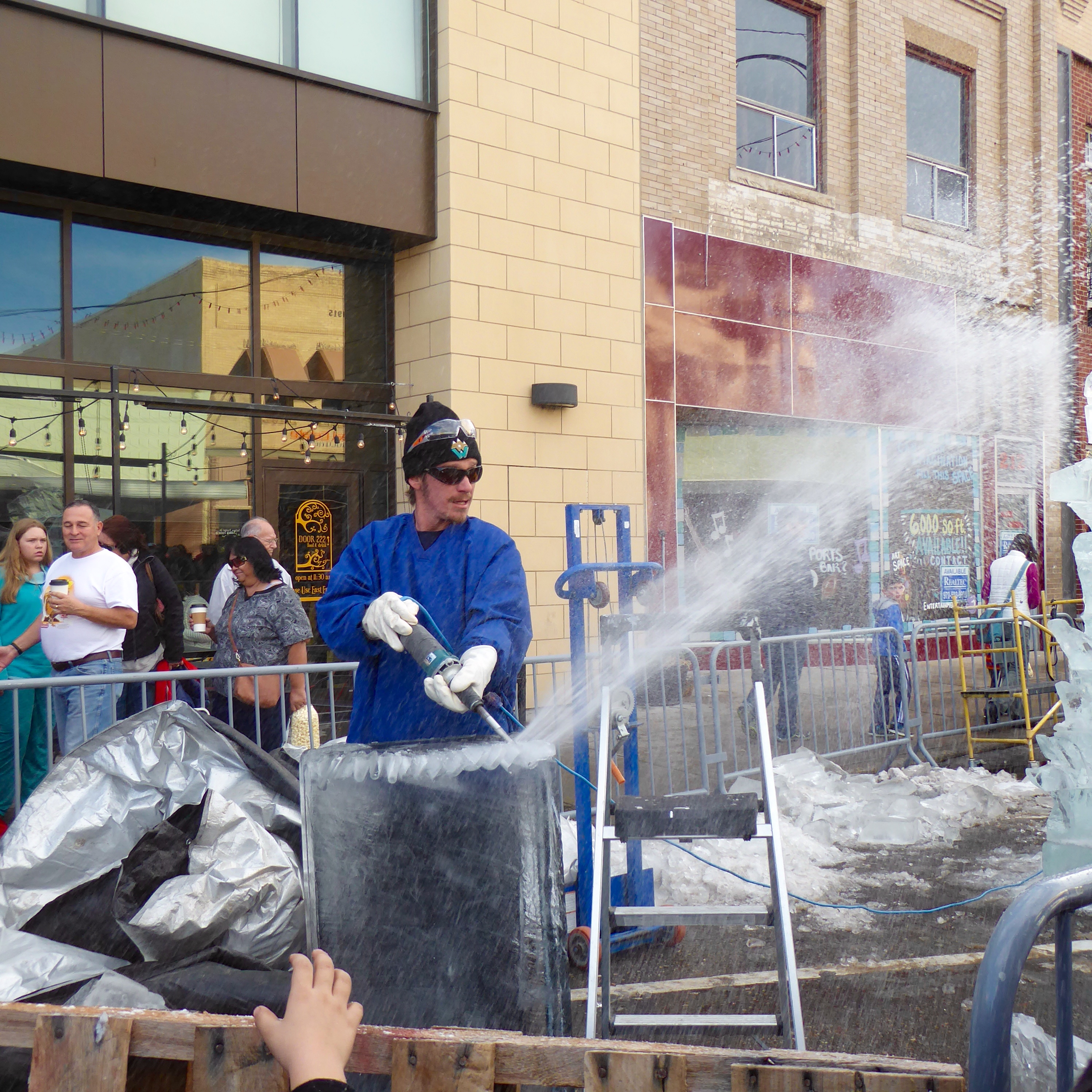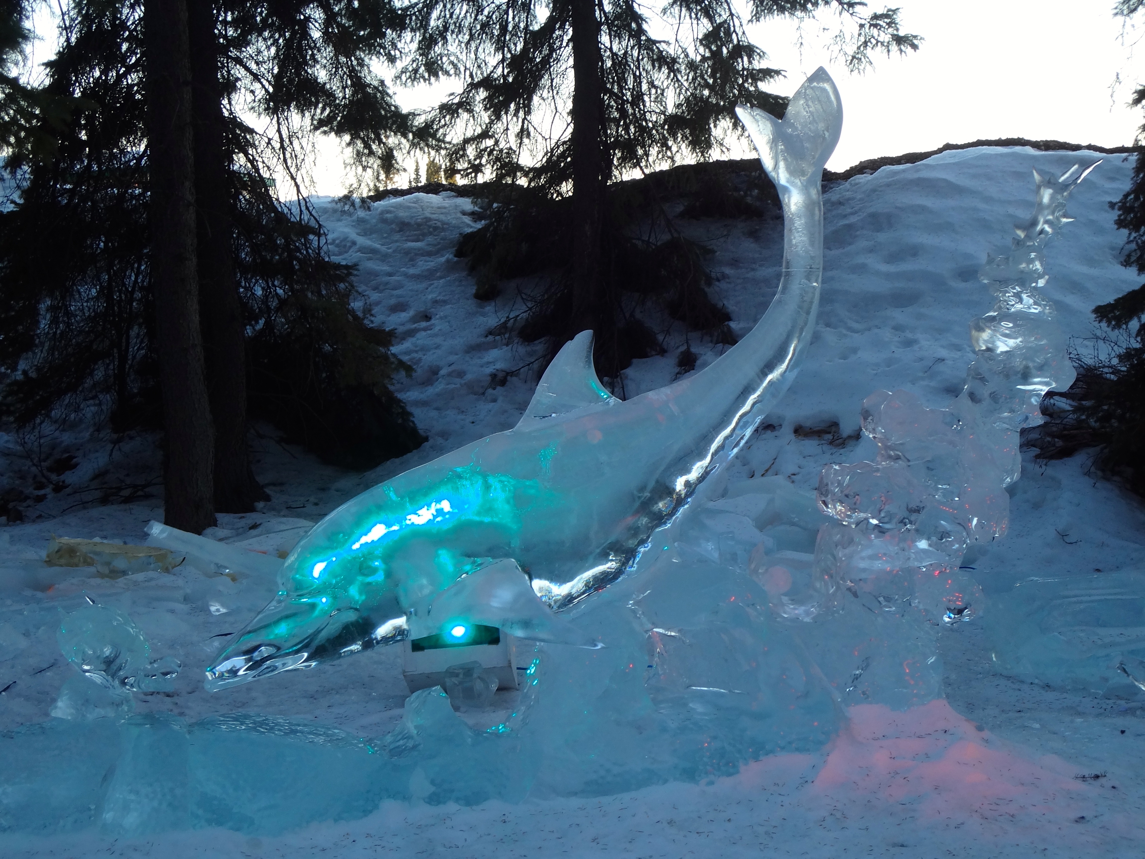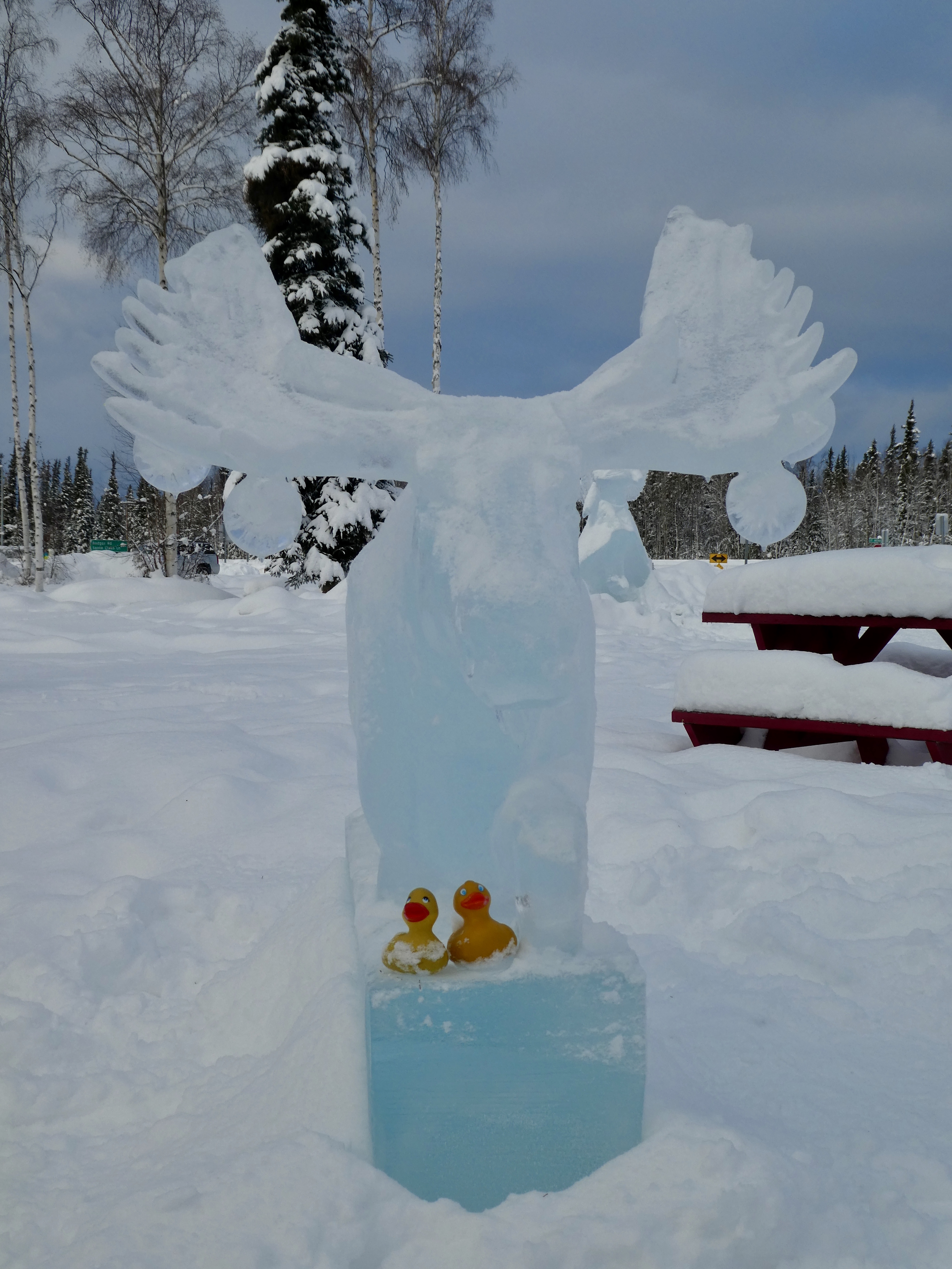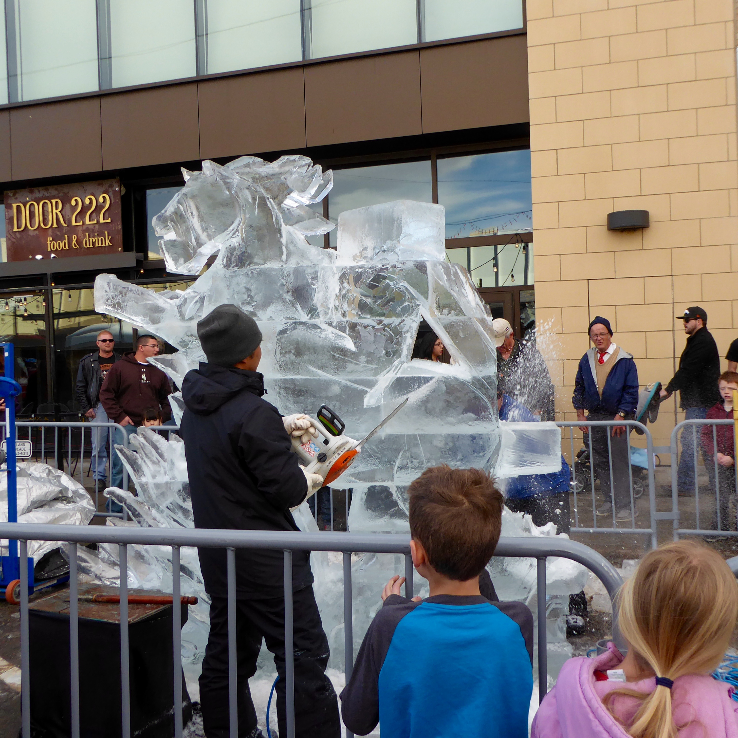 Sculpting ice starts with chain saws and ends with tiny tools for great details in the ice. Previous years a committee had a theme and all carvers followed the theme. This year it was Carver’s Choice. First we saw these carvings of Giant Insects in Ice by Snice Carvings.