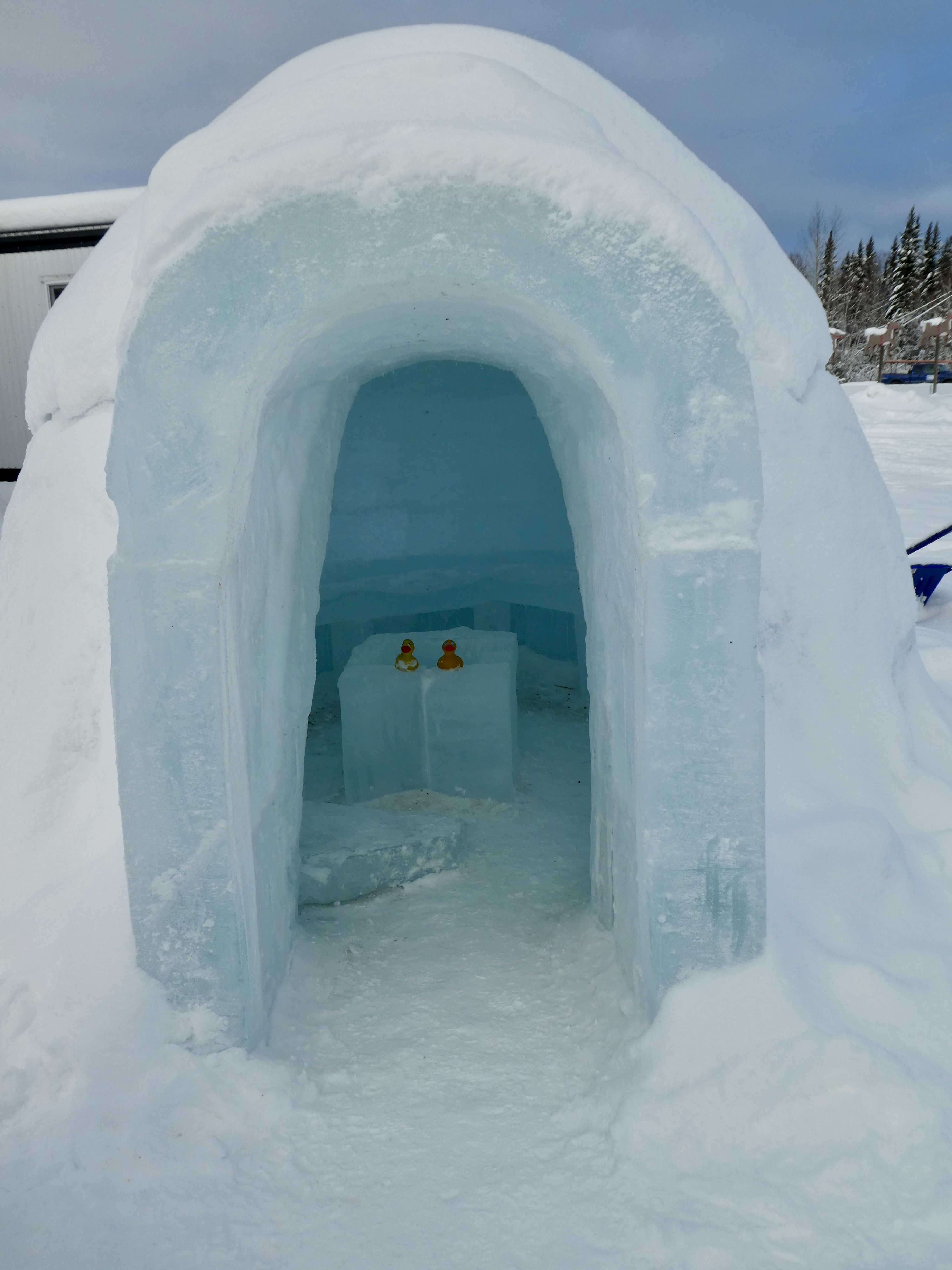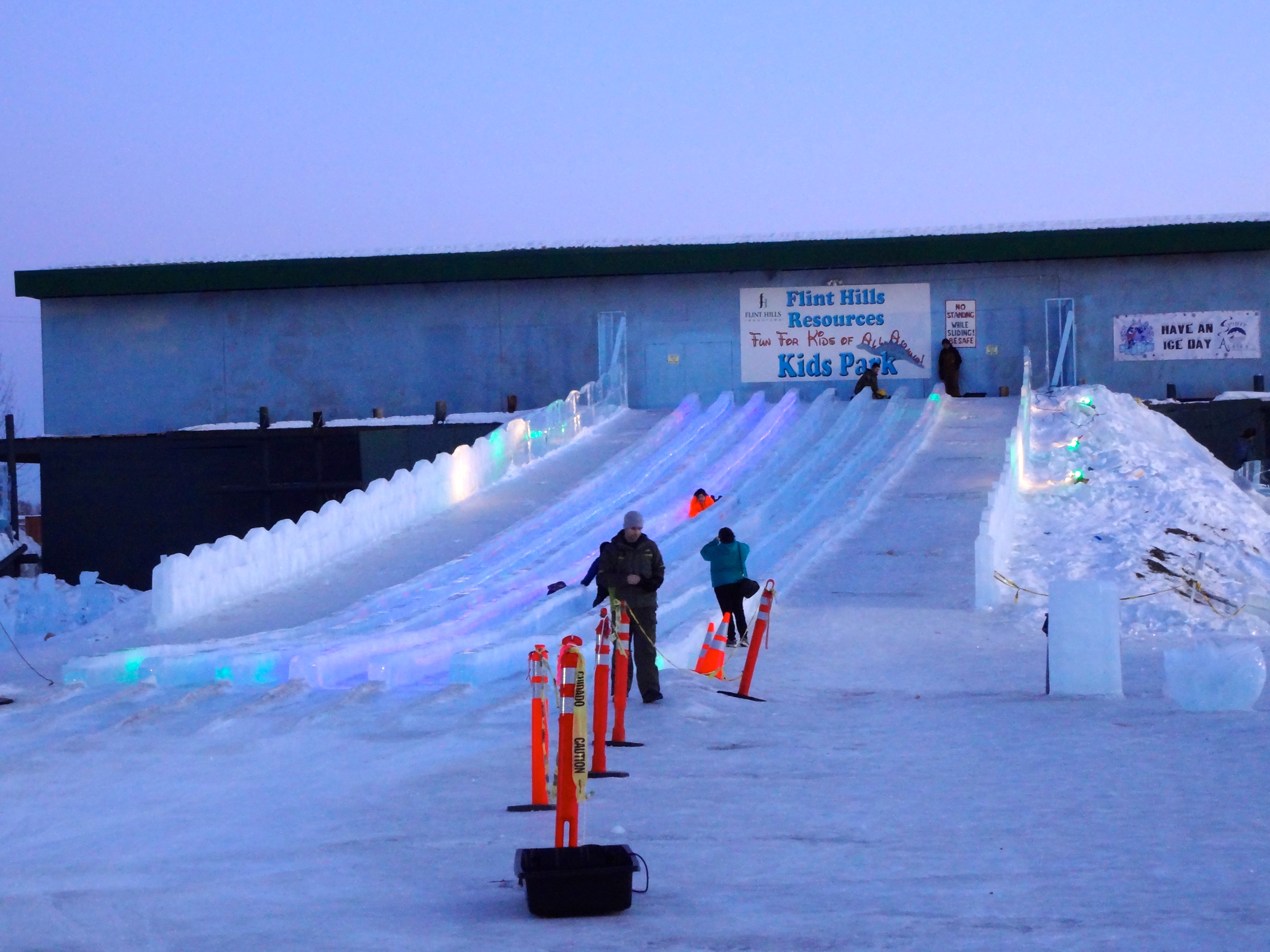 If it were warm outside, mom would be in that ice cream parlor. This ice slide is for young humans.