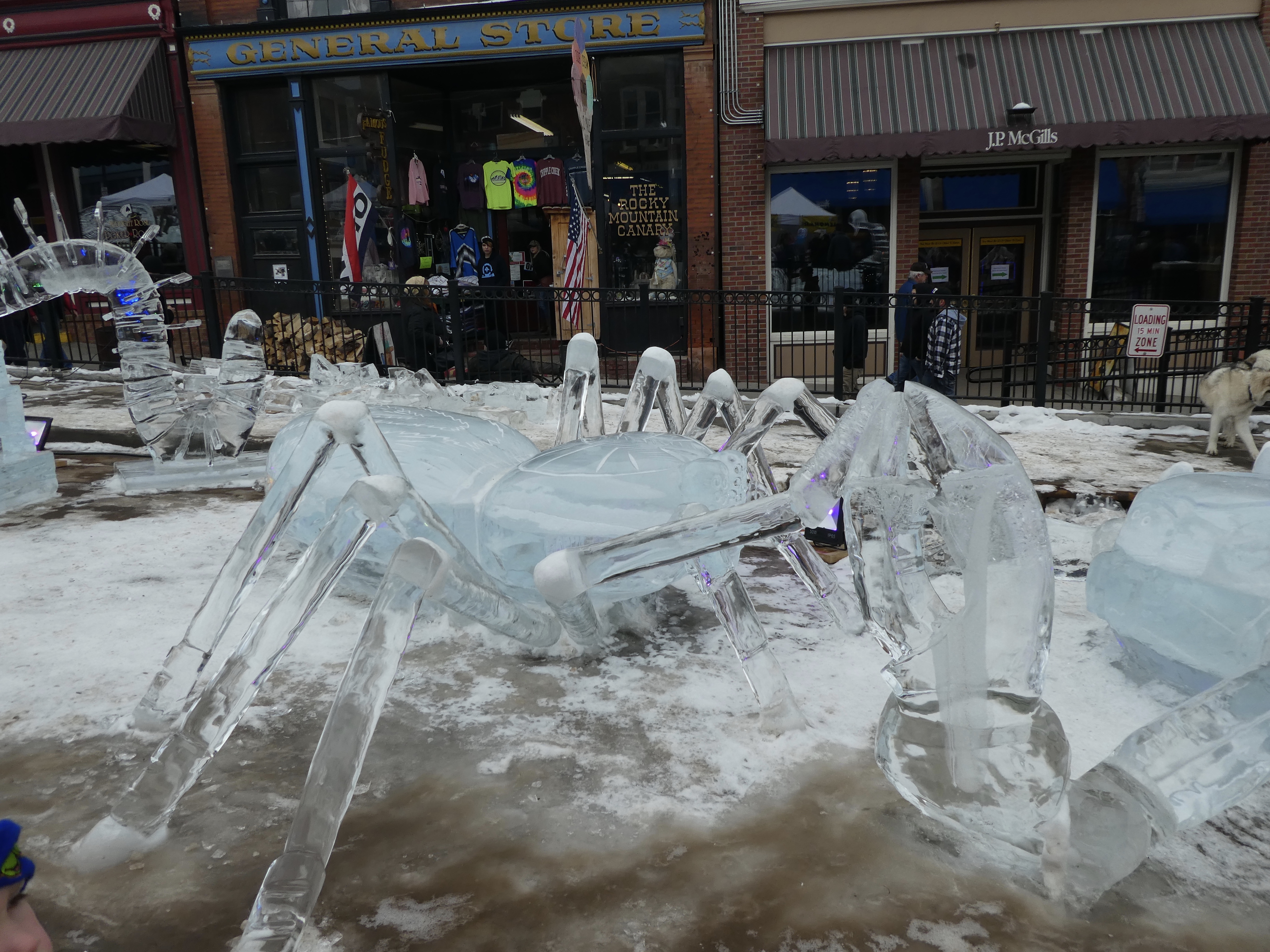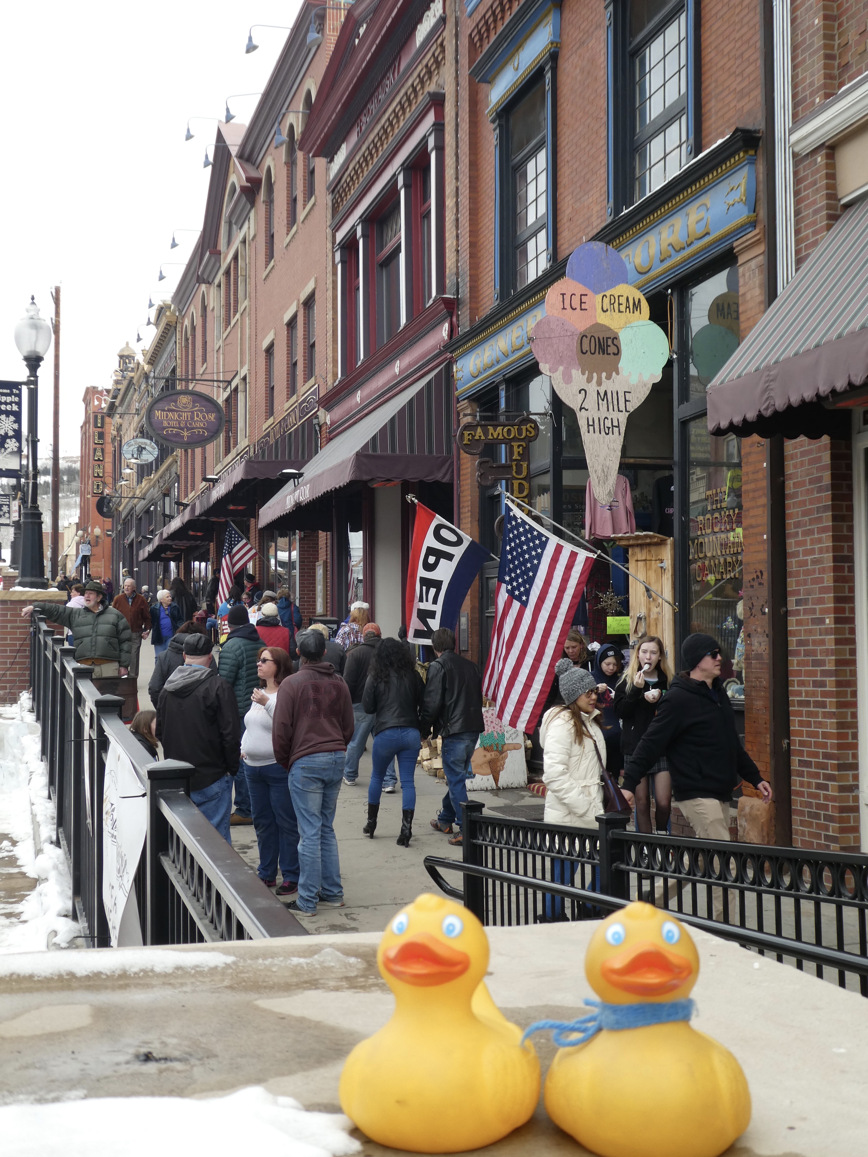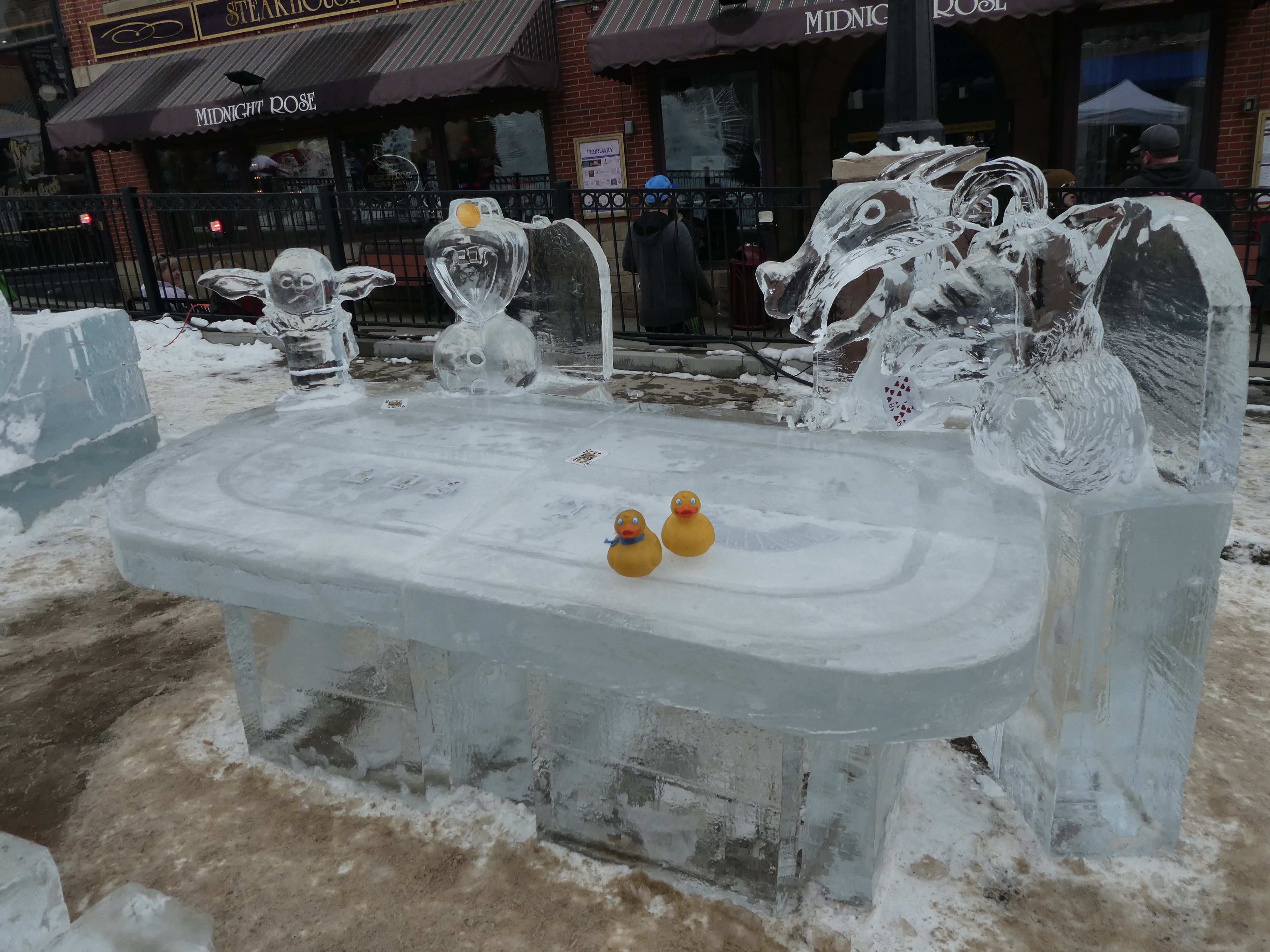 Cripple Creek does have limited stakes gambling. But today we are just looking at ice sculptures and snacking. Perhaps casino hopping next trip. There were so many more ice sculptures that we did not show you. All are beautiful, especially with Colorado sunshine on them. We hope you visit Cripple Creek next February for the 2 week ice festival. It is wonderful.