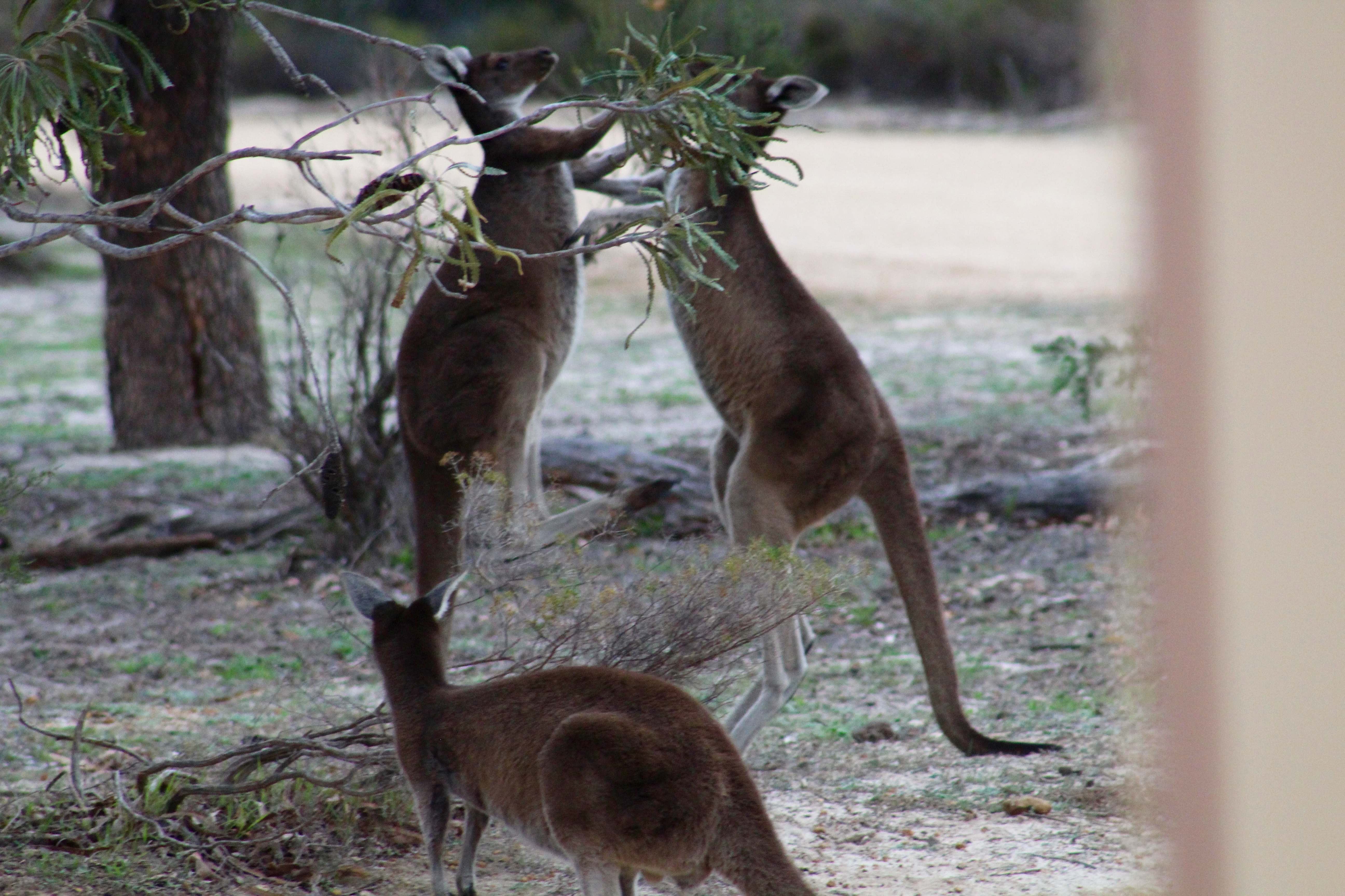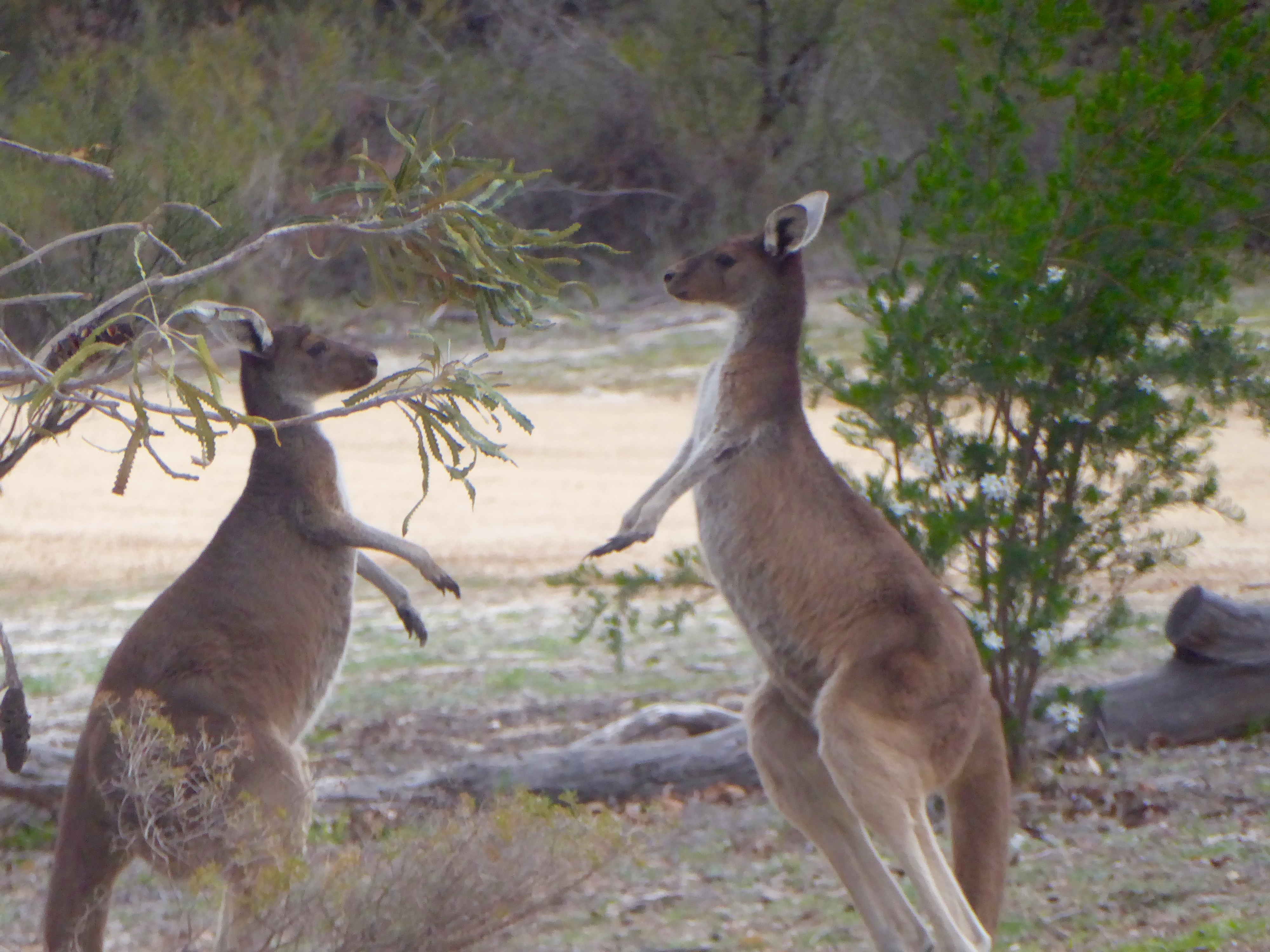 The wild kangaroos ran as soon as we saw them,