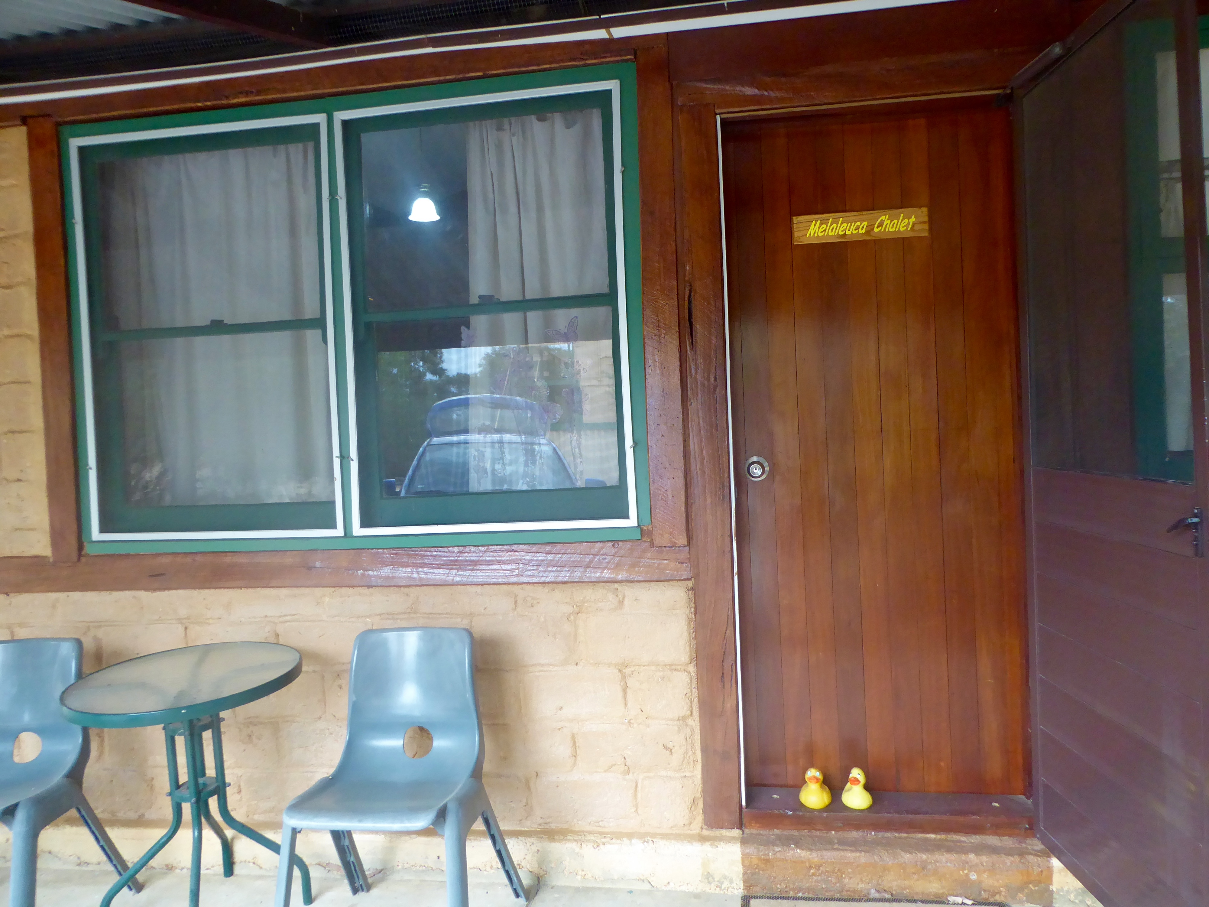 A caravan park is for campers, but they had cabins, or chalets for us. We stayed in Melaleuca Chalet.