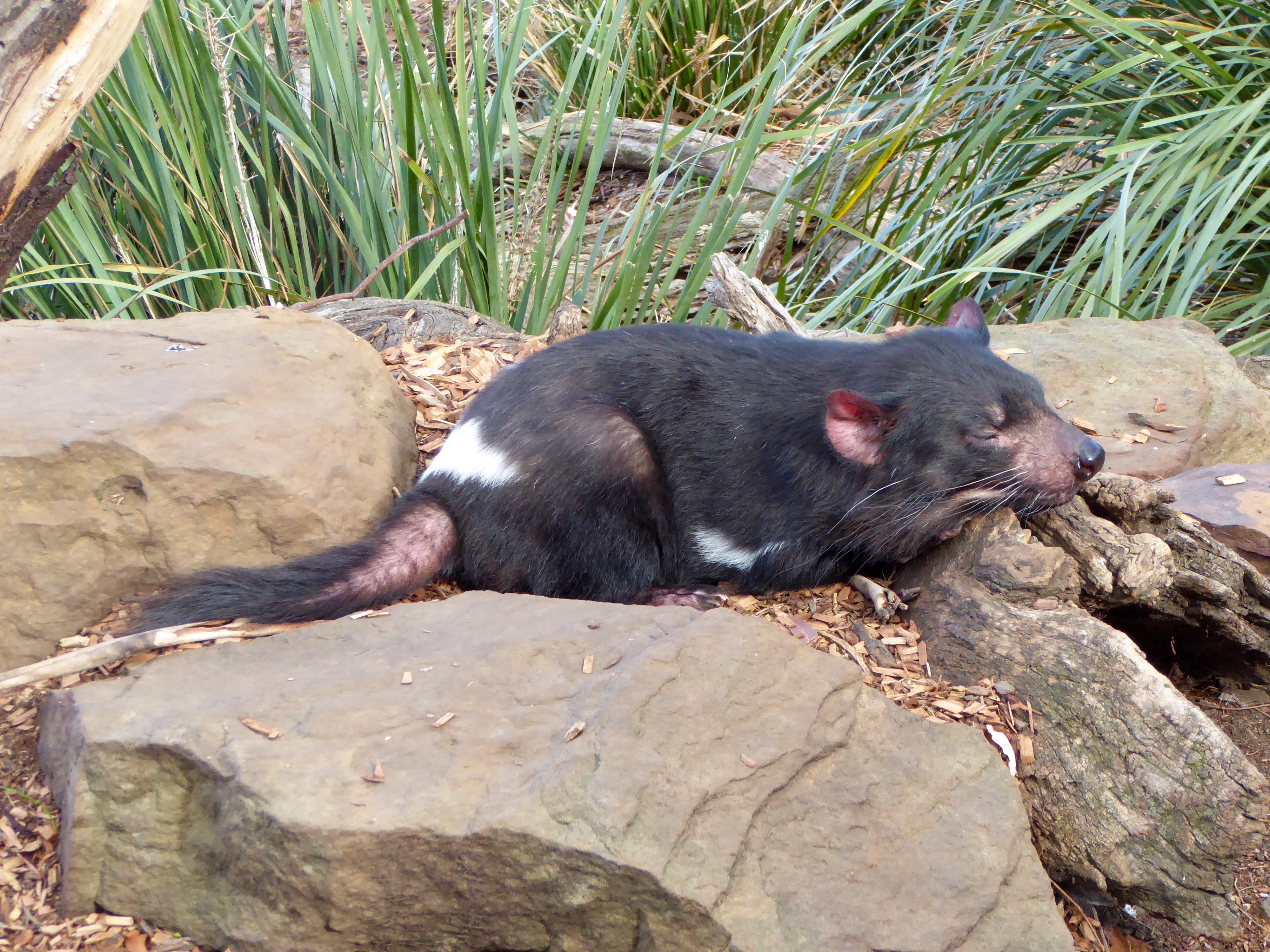 The Tasmanian Devils were the main reason for visiting Bonorong Wildlife Sanctuary. The Tasmanian Devil is threatened because they have a rare form of contagious cancer. They have Devil Facial Tumor Disease (DFTD). So far there is no known cure for this disease. These devils have a bad reputation because of the shrieking noise they make when eating. The devils we saw were kind of cute.