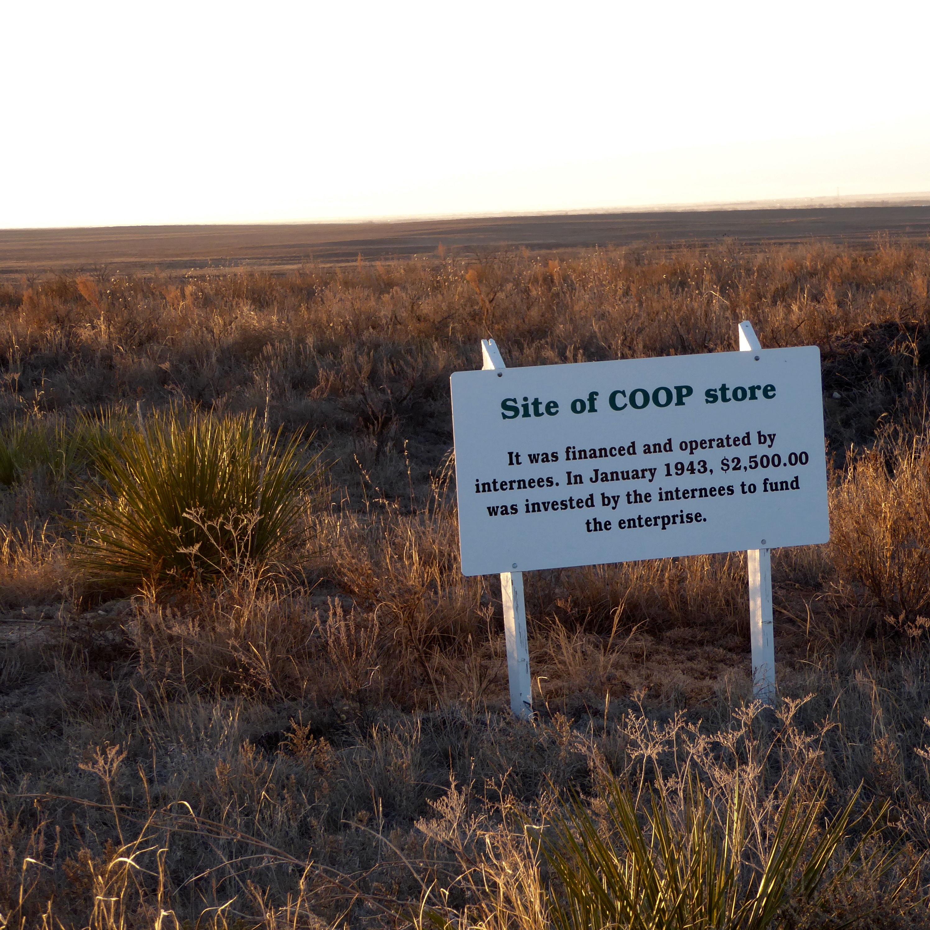 The map was drawn from memory by one of the former high school students at Camp Amache. Most of the buildings are gone, but signs show the former location of many buildings. This was the location of the Coop.