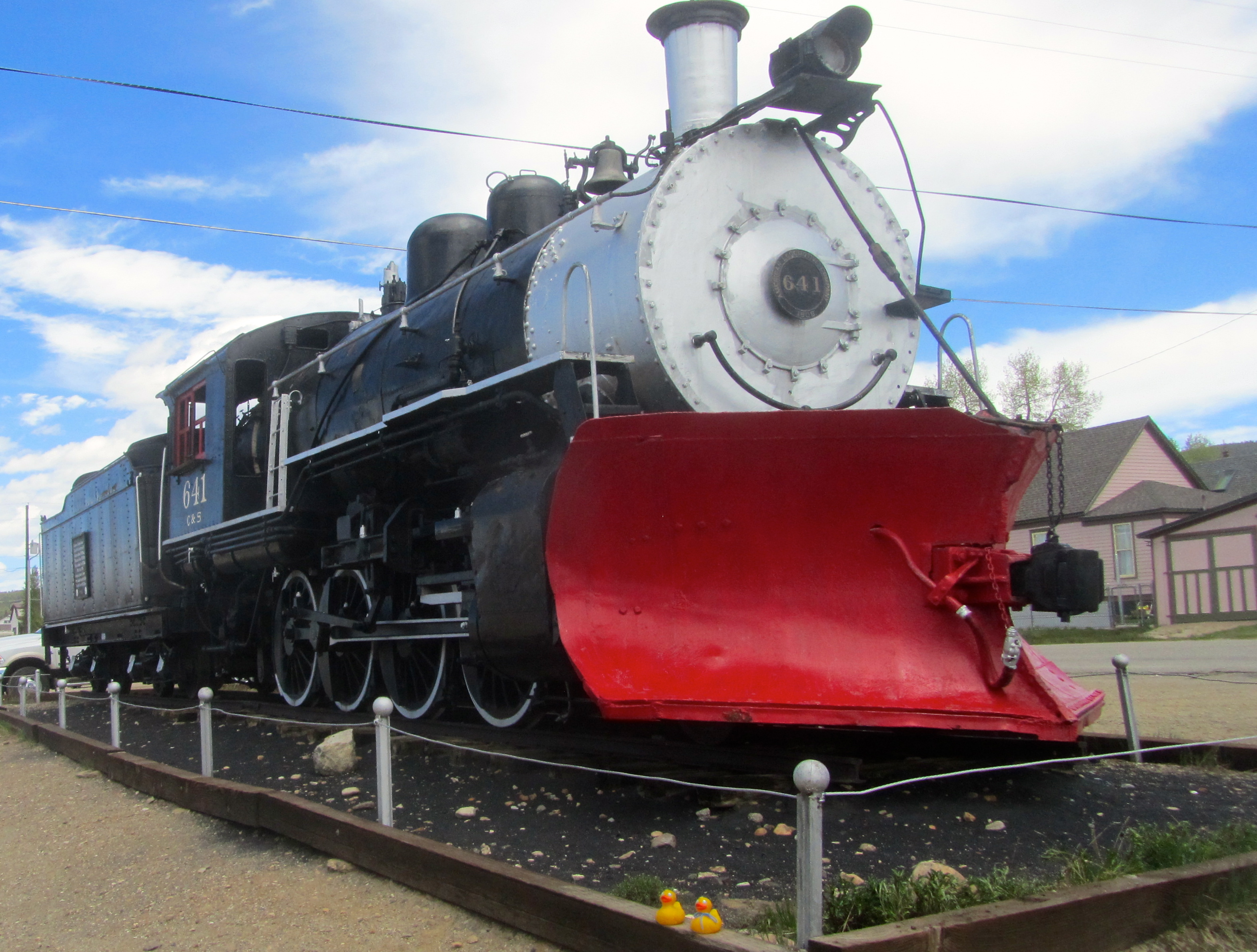 Tourist trains leave here daily during the summer. This engine has the plow that was used to clear the tracks in winter.