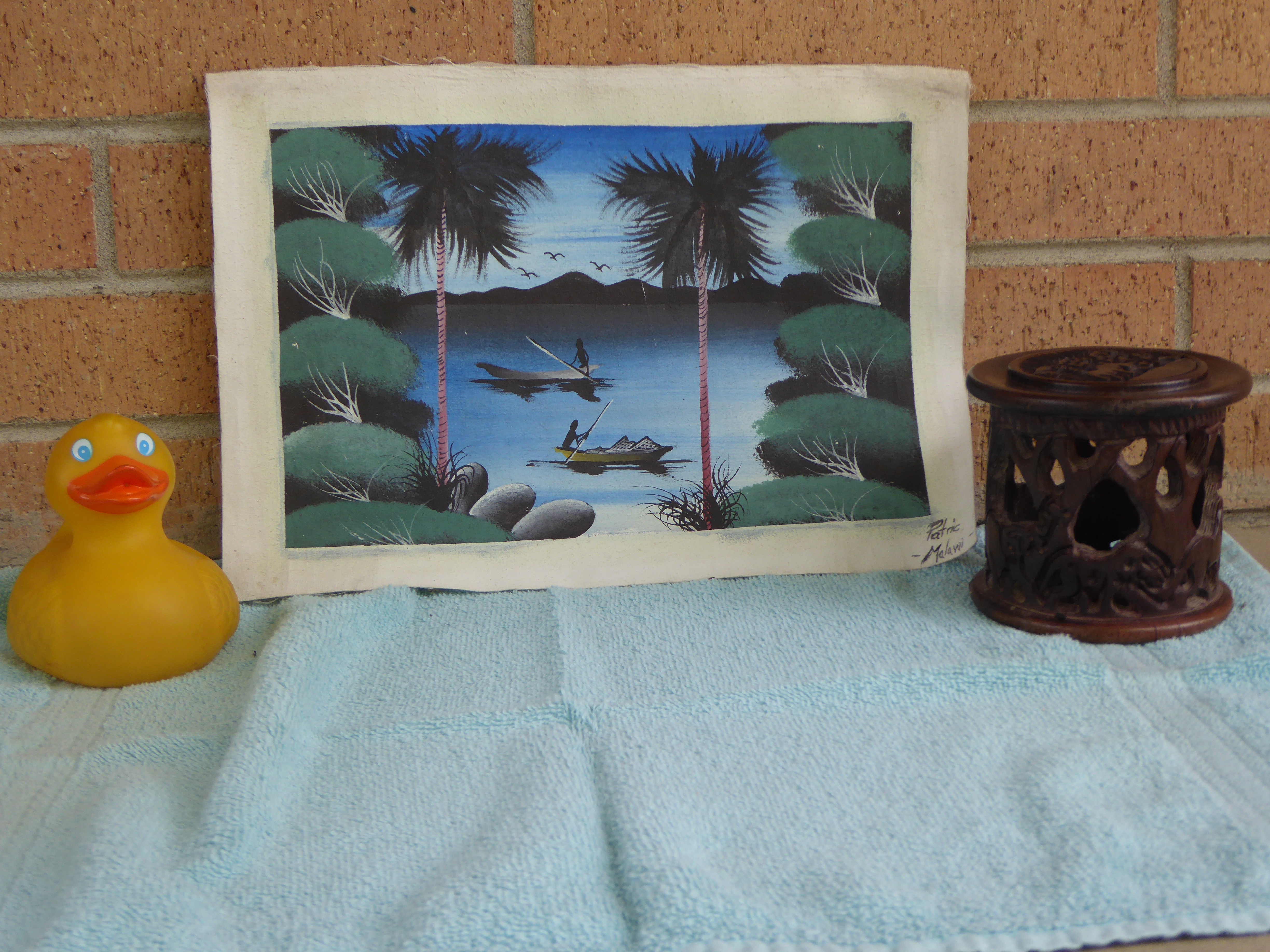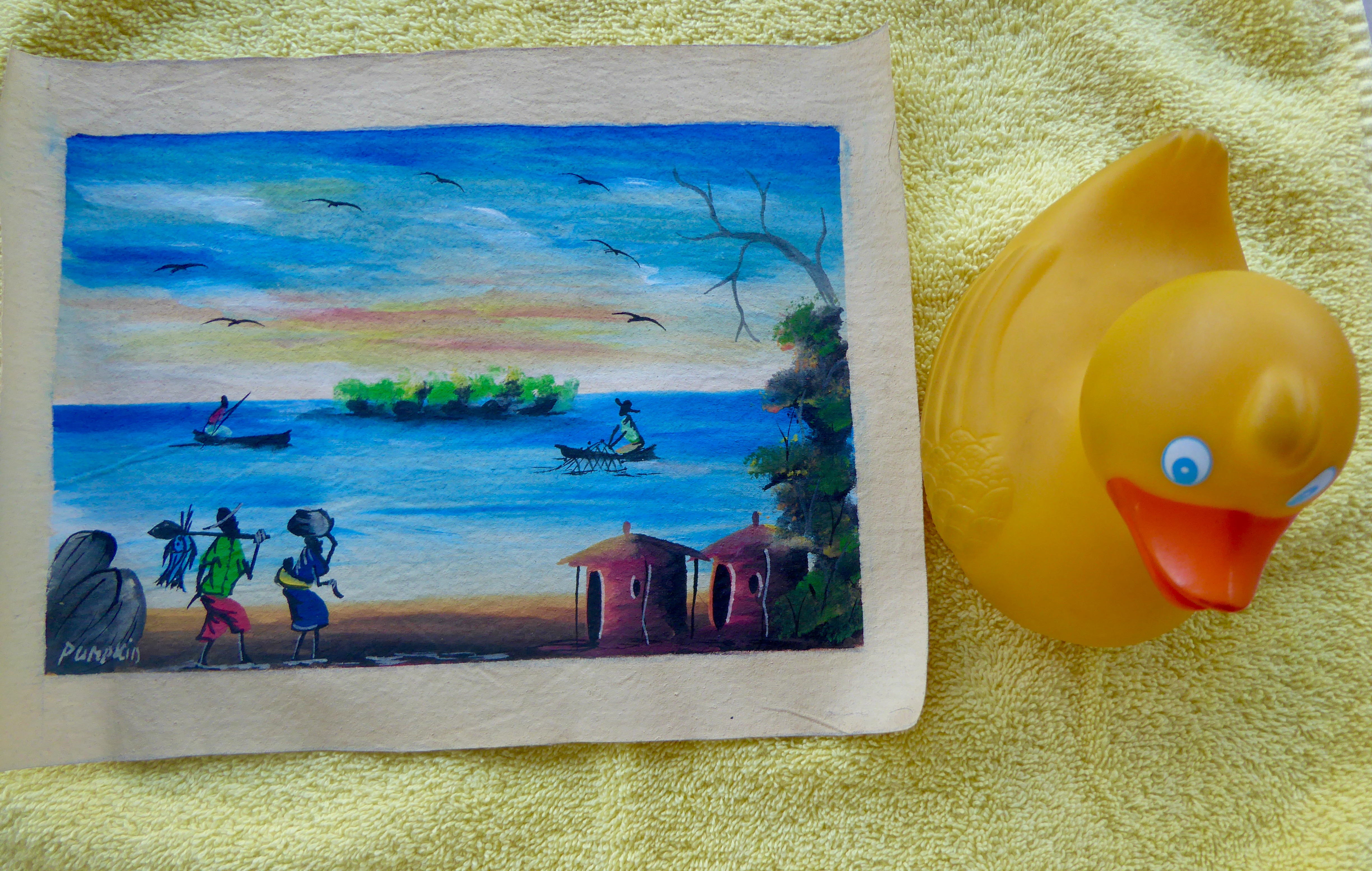 Lake Malawi is so pretty.   We think these paintings are very nice, don’t you?   Today I wanted to show you what we see every day and a little about how the people live in our closest village.   These humans in Malawi have all been very friendly and very nice to all of us.   We like Malawi and the Malawians.