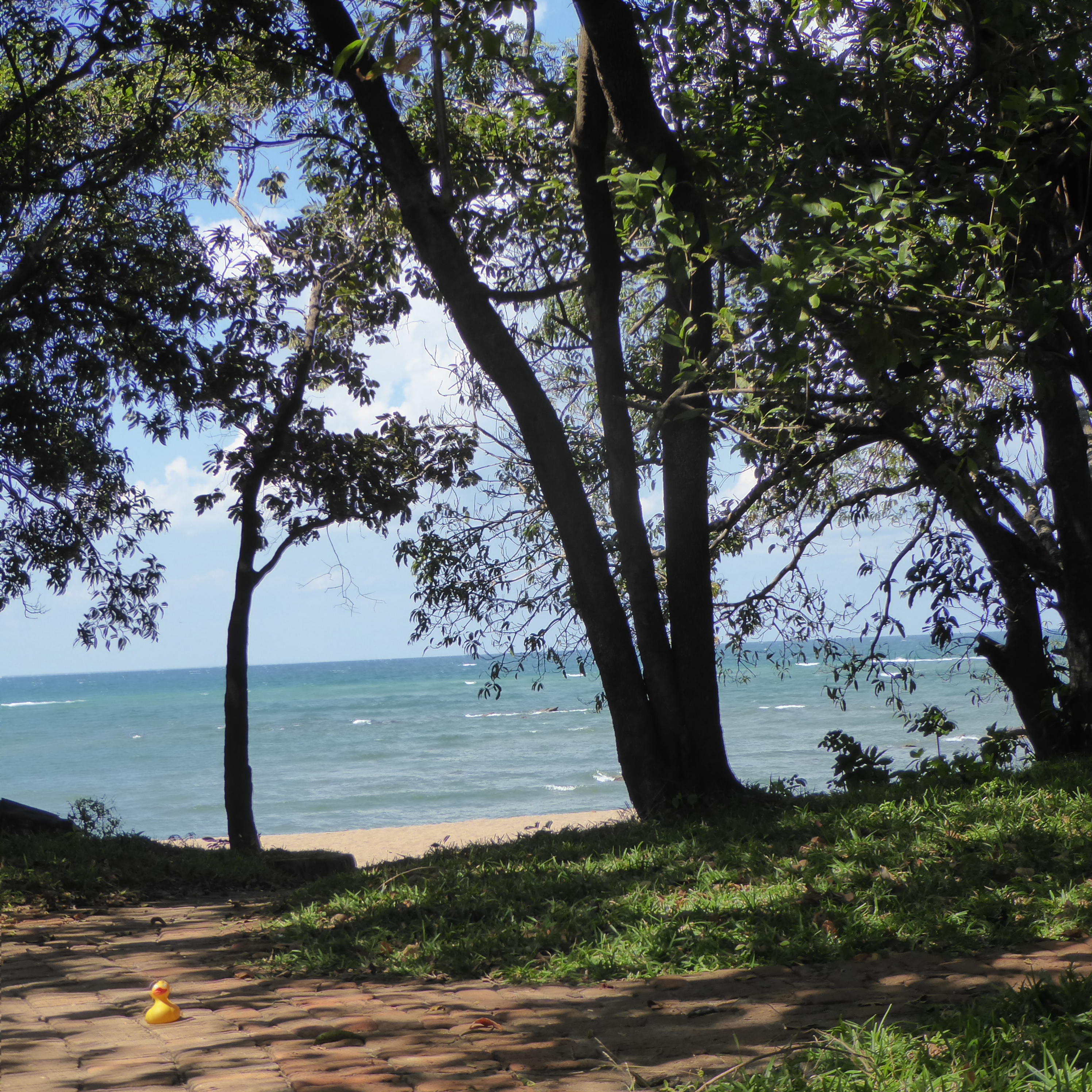 Some girls can live here, eliminating the hours of walking.   I, Zeb the Duck, think this is great.   After our tour of the school and campus, we walked back to Lowani Beach.   Along the way, we saw this cassava soaking.