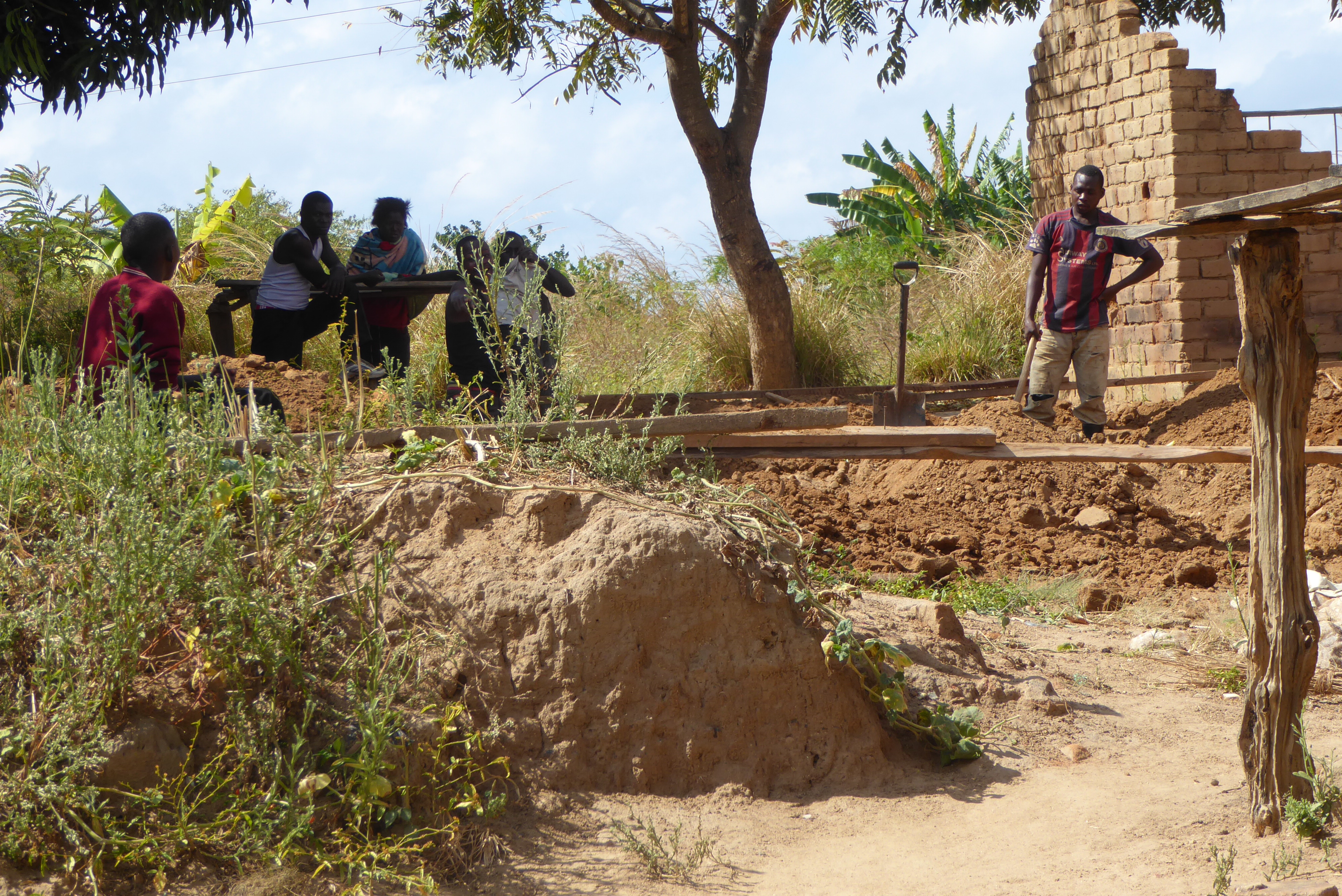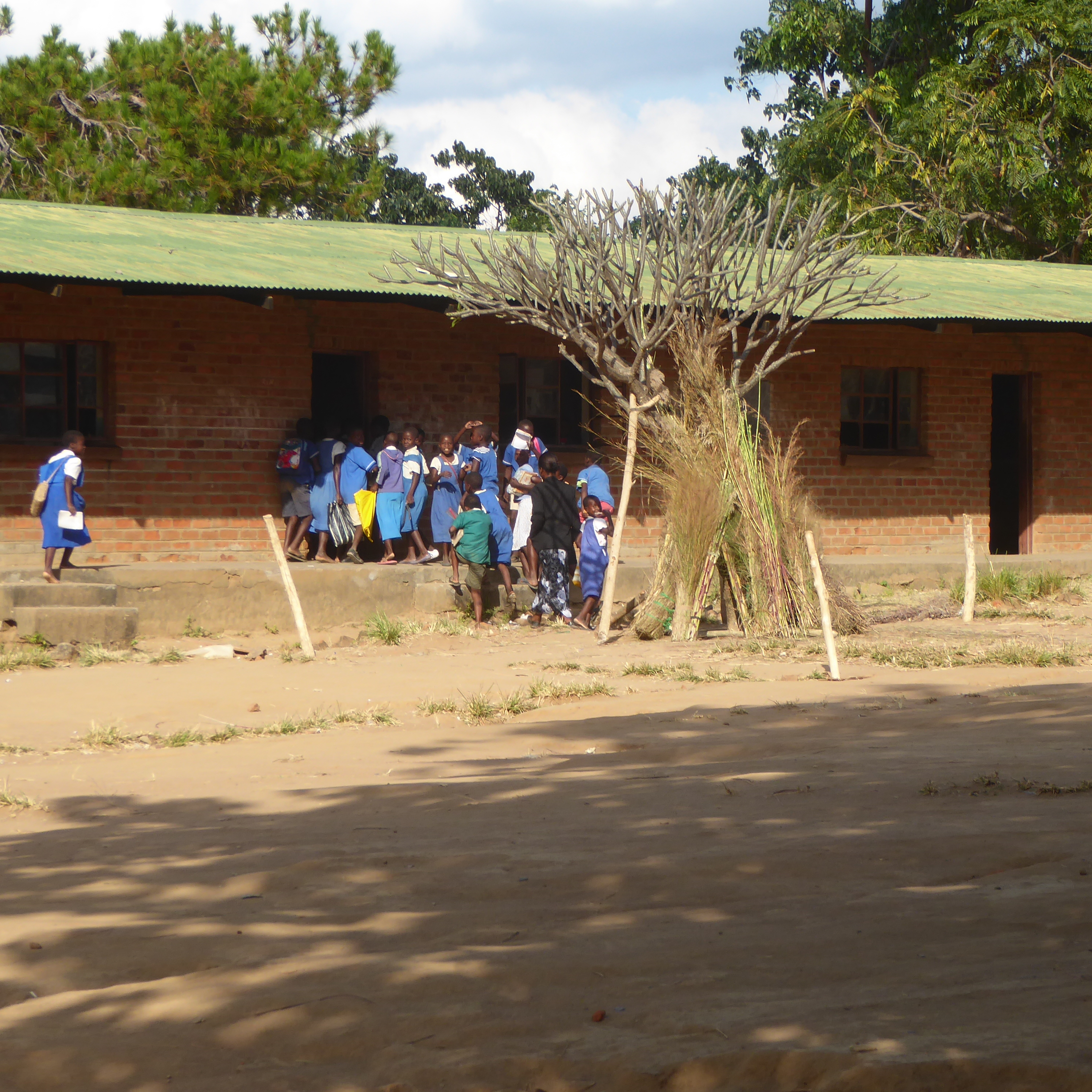 They are my new friends.   Ripple Africa helps support this secondary campus.   Ripple Africa pays some of the salaries for teachers.   The government of Malawi pays some salaries also.   Ripple Africa helps construct the buildings.   Some of the teachers receive housing on campus.   Here, another house for a new teacher is being built.