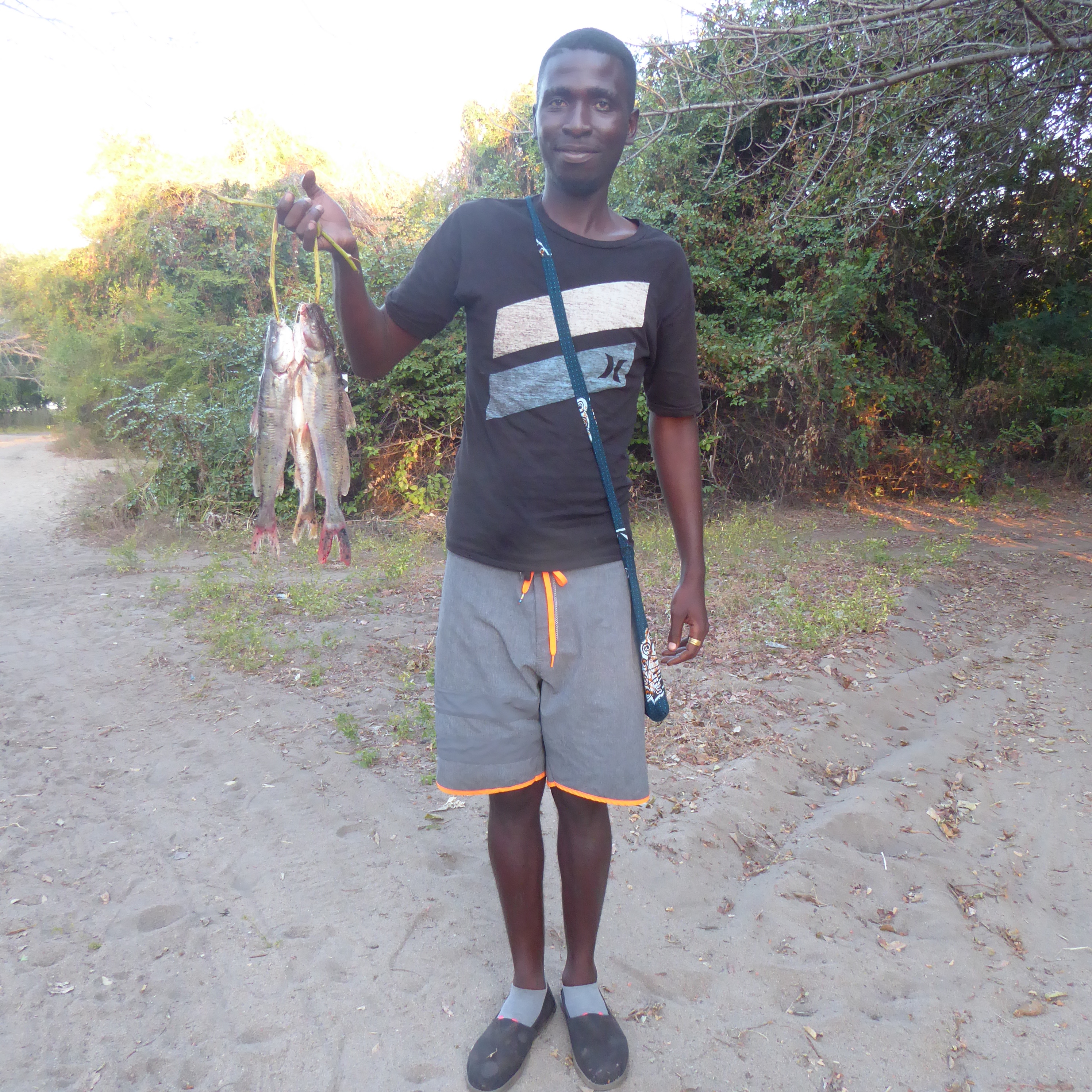 He had been fishing and is showing us his catch.   Very nice fish, Pumpkin.   Pumpkin is also an artist.   We bought a couple paintings from him.