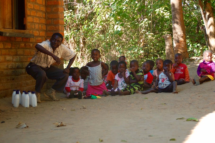 Soon 17 nieces and nephews will be coming to stay with Catherine and Rebecca and their families.   They are in boarding school now, and their parents have died.   So more room is needed and much more work will be required.   Rebecca went back to school after she had her children and she is now a preschool teacher.   She was one of the four teachers pictures in our last post.   She is an amazing lady.   Naturally her day starts very early, as she must carry water, chop wood, cook and wash dishes before she starts teaching, about 7:40 a.m.   In Malawi, life is hard, but we found that the people are willing to share what they have and they always have a smile.  I, Zeb the Duck, stayed in my traveling bag when the children came home.  Children always want to keep me, so I don’t pose for photos when many are around.   I do like children and do not want to disappoint them when I have to go home with mom.   The people we met in Malawi showed us that Malawi really is the warm heart of Africa.