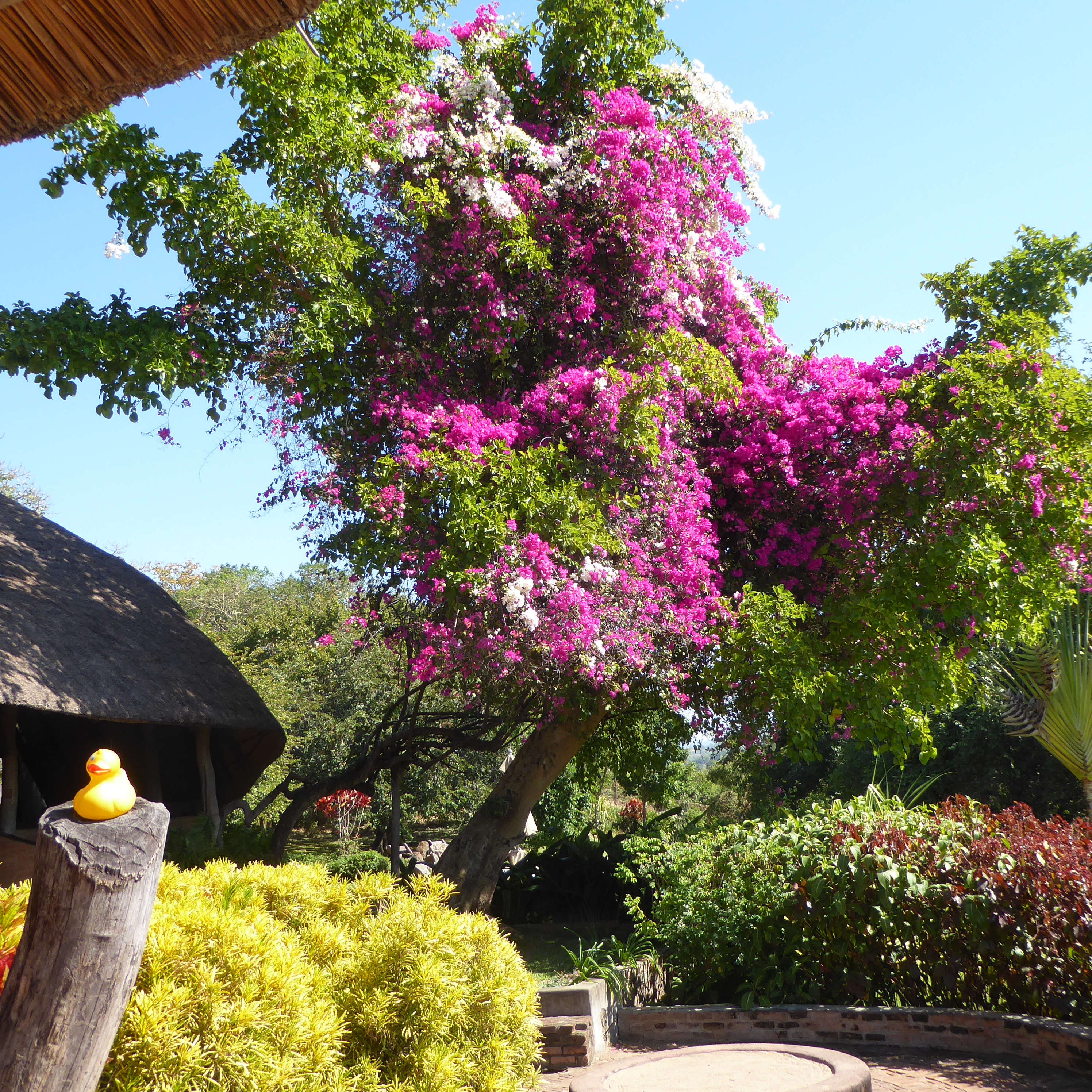 I love this canoe.    As you remember from yesterday’s map, we are in the tropics, between the Equator and the Tropic of Capricorn, so there are many wonderful green tropical plants.