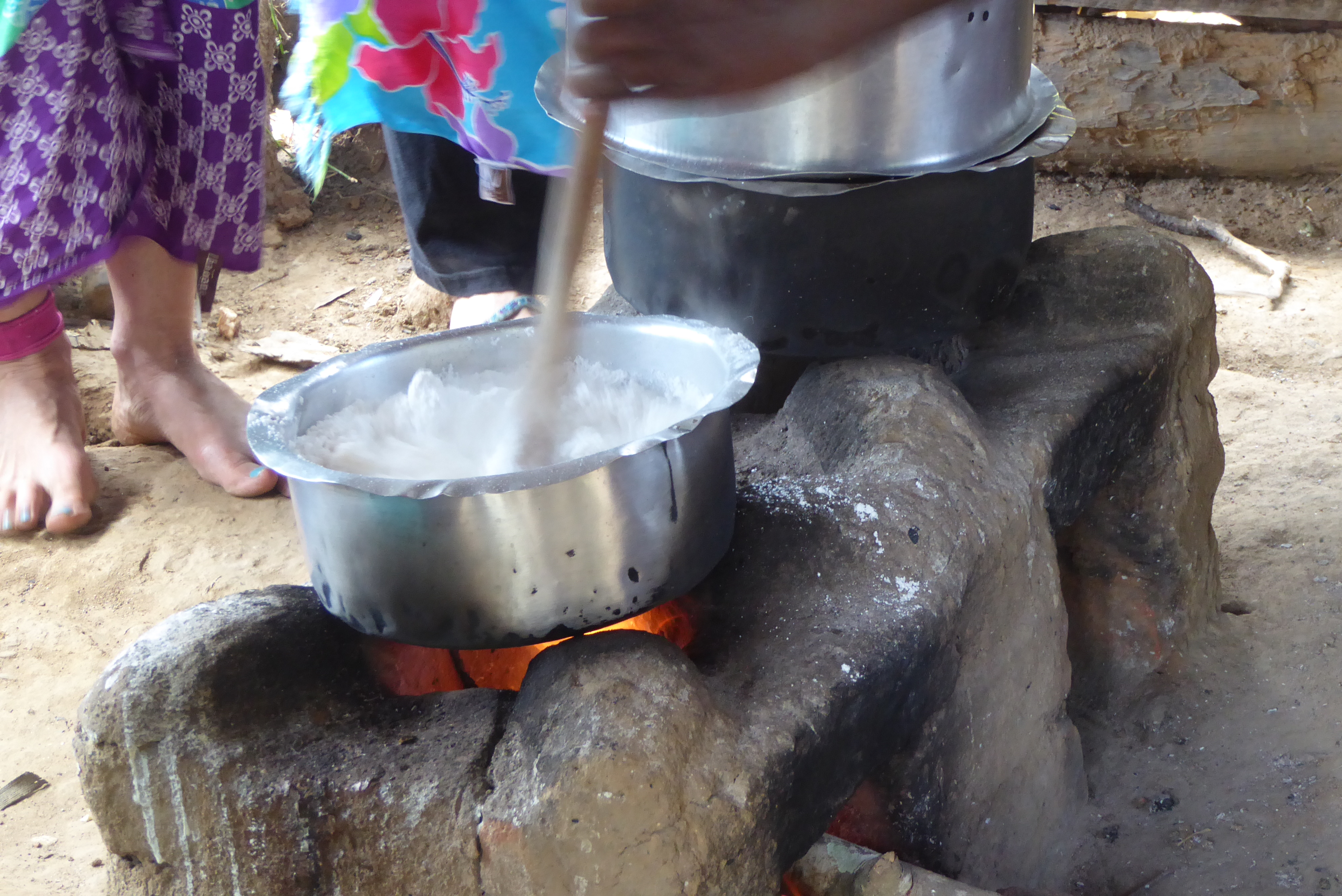 This is fun.   Of course, no party is complete without food.   Esther cooks for us, using this three burner wood burning changu changu moto.
